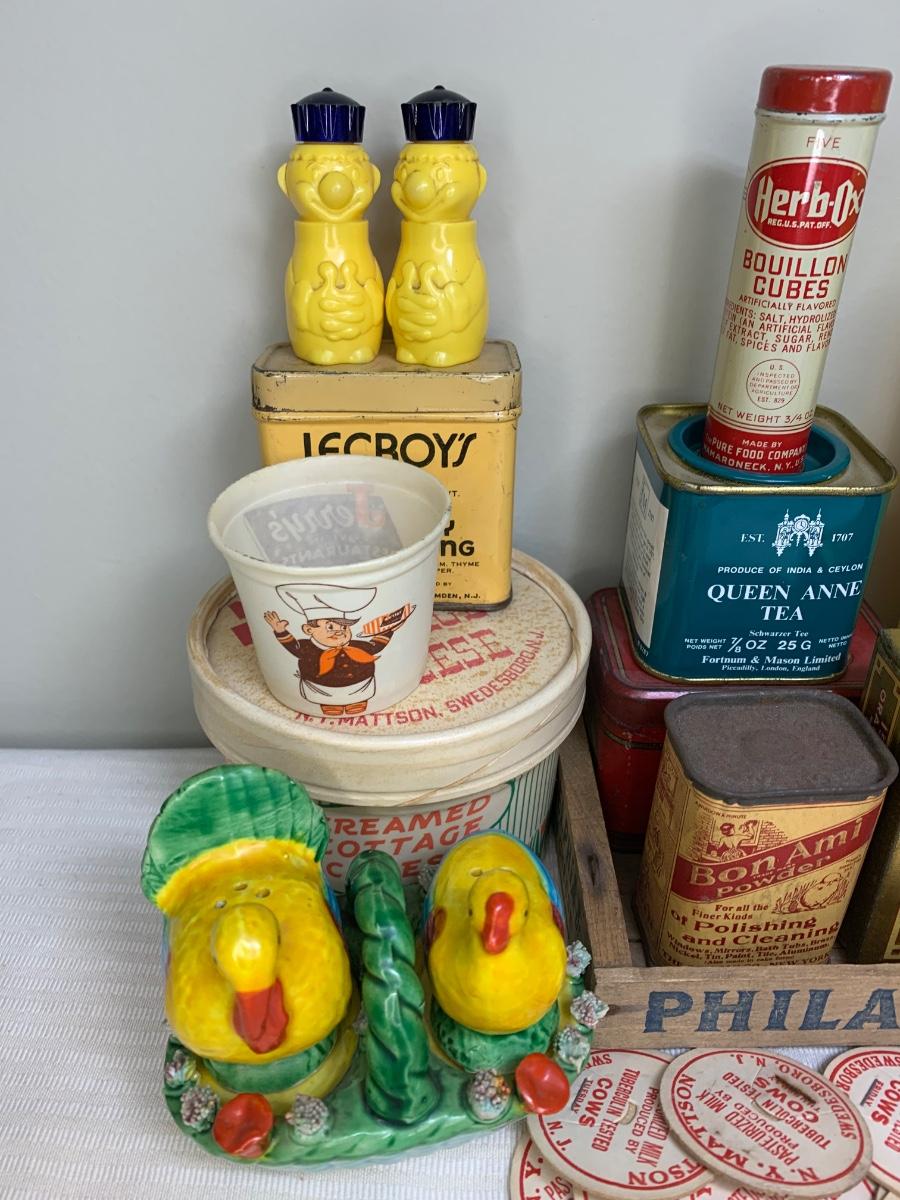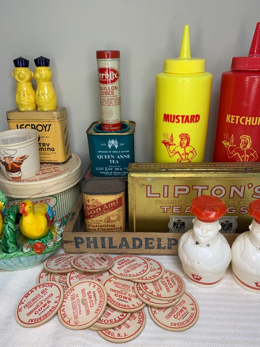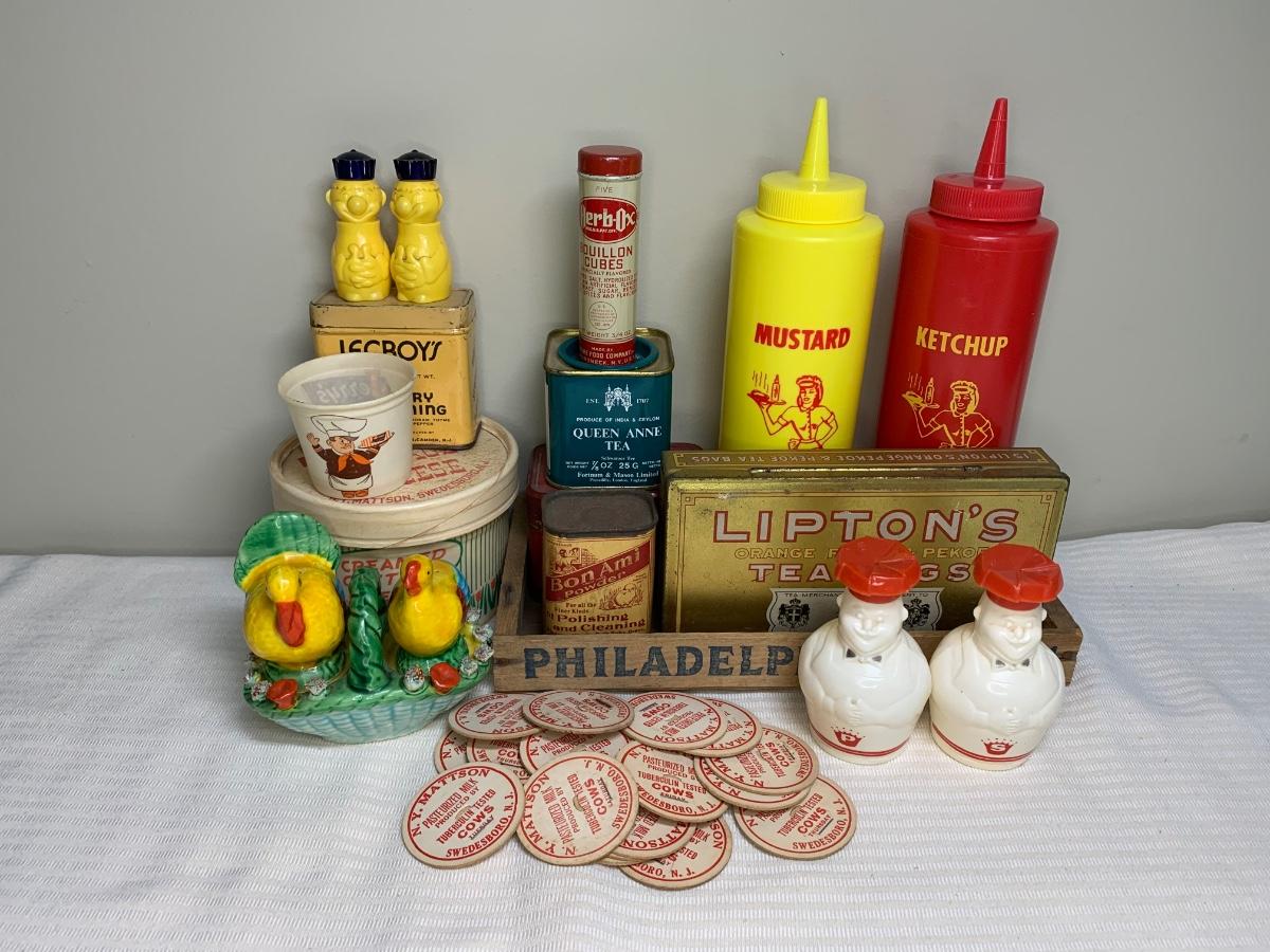 LOT 73R: Vintage Kitchen: Tins, Salt & Peppers, Advertising and More