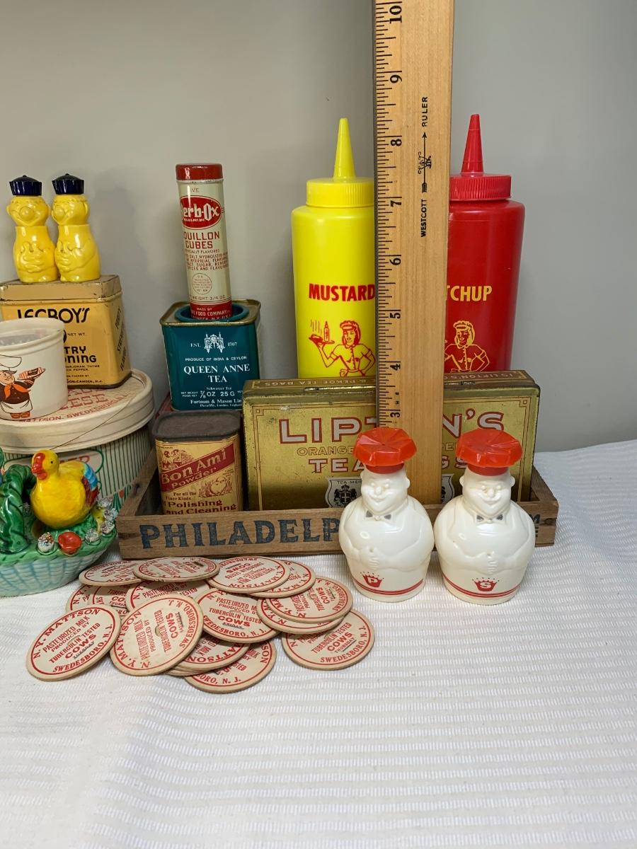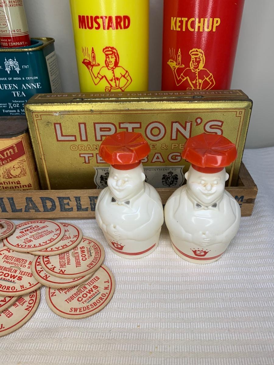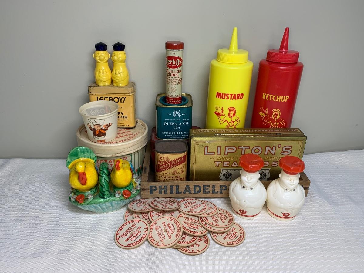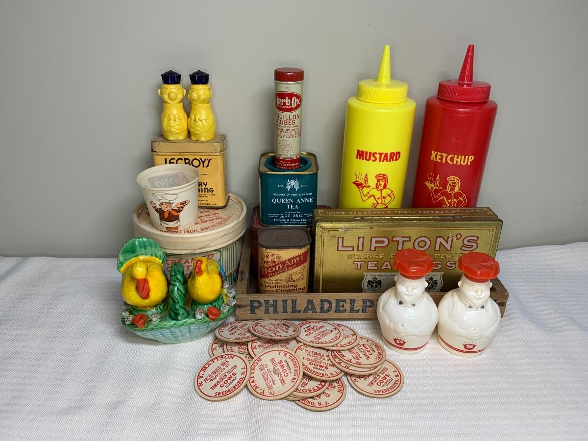 LOT 73R: Vintage Kitchen: Tins, Salt & Peppers, Advertising and More