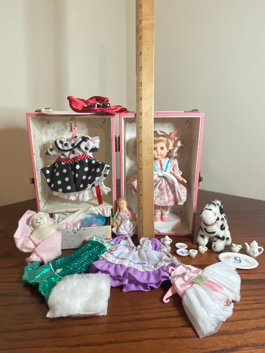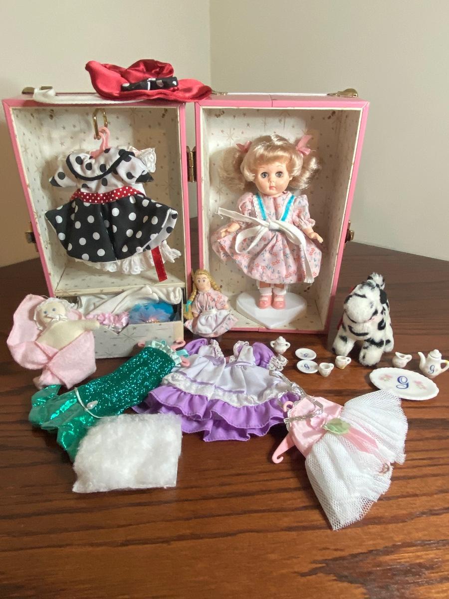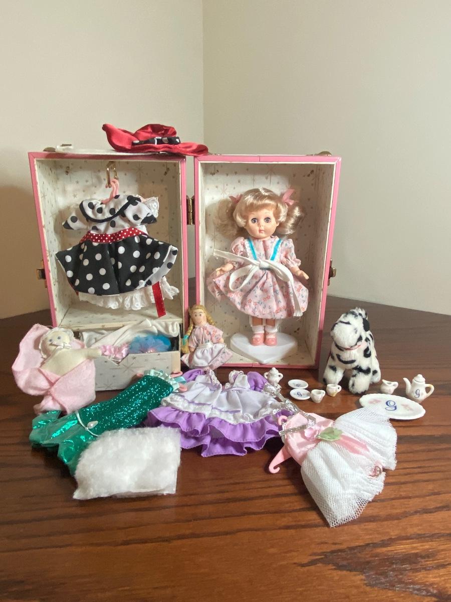 Ginny doll comes with dress up clothes, brushes and accessories. They pack away perfectly in her pink storage trunk. Please see all pictures as they are the best representation of the items. The pictures show condition, measurements if taken, and what is included in the lot. Due to the large amount that we photograph and the time frame, we are not always able to take measurements. All items unless noted, are pre-owned and have been used. If you purchased furniture, you must bring help. We do not allow one person to carry large furniture out on their own. Bring help, tools and a truck for the safety of our client’s homes, and your personal safety. Any damages that result to the property including walls, and floors due to moving of the furniture will be charged to the buyer. Company policy. Thank you.
