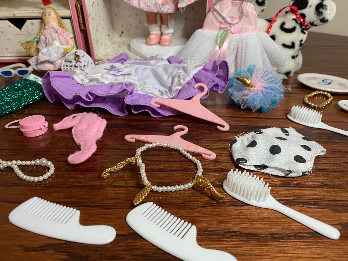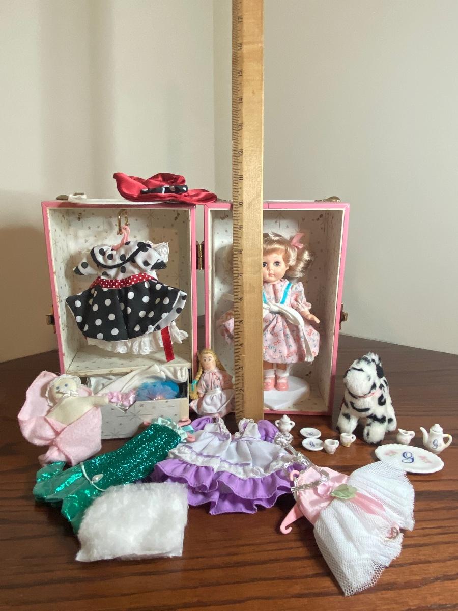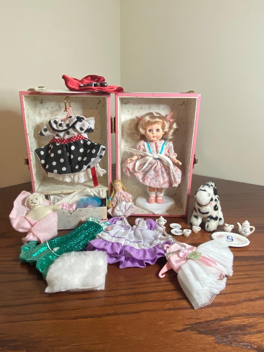 Ginny doll comes with dress up clothes, brushes and accessories. They pack away perfectly in her pink storage trunk. Please see all pictures as they are the best representation of the items. The pictures show condition, measurements if taken, and what is included in the lot. Due to the large amount that we photograph and the time frame, we are not always able to take measurements. All items unless noted, are pre-owned and have been used. If you purchased furniture, you must bring help. We do not allow one person to carry large furniture out on their own. Bring help, tools and a truck for the safety of our client’s homes, and your personal safety. Any damages that result to the property including walls, and floors due to moving of the furniture will be charged to the buyer. Company policy. Thank you.