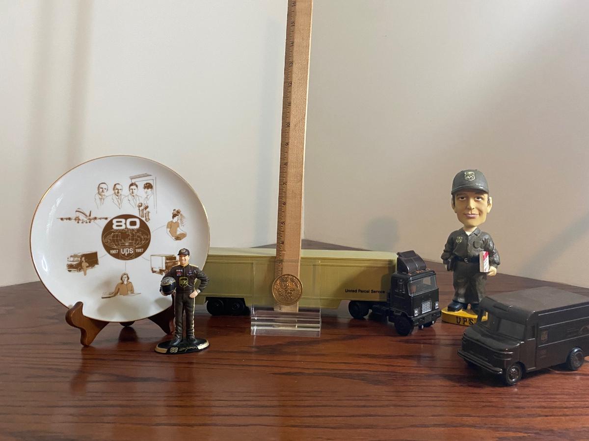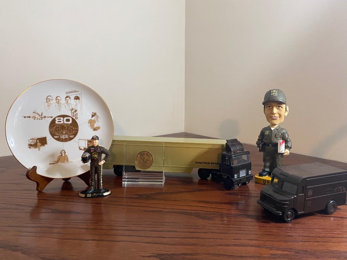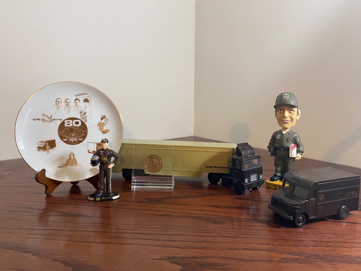 LOT 104: UPS Collectibles: Bobble Head, Trucks, Commemorative Plate & More