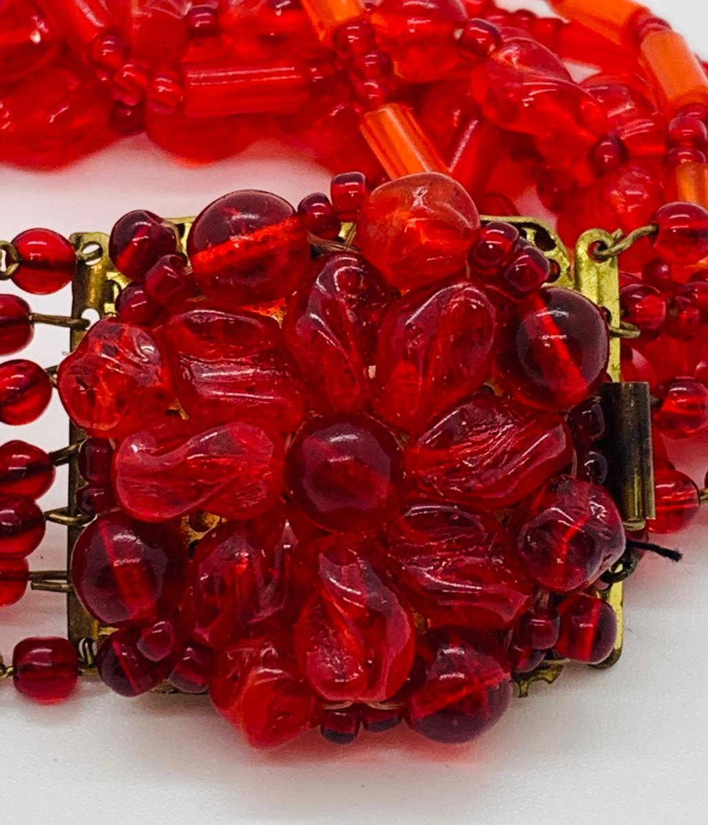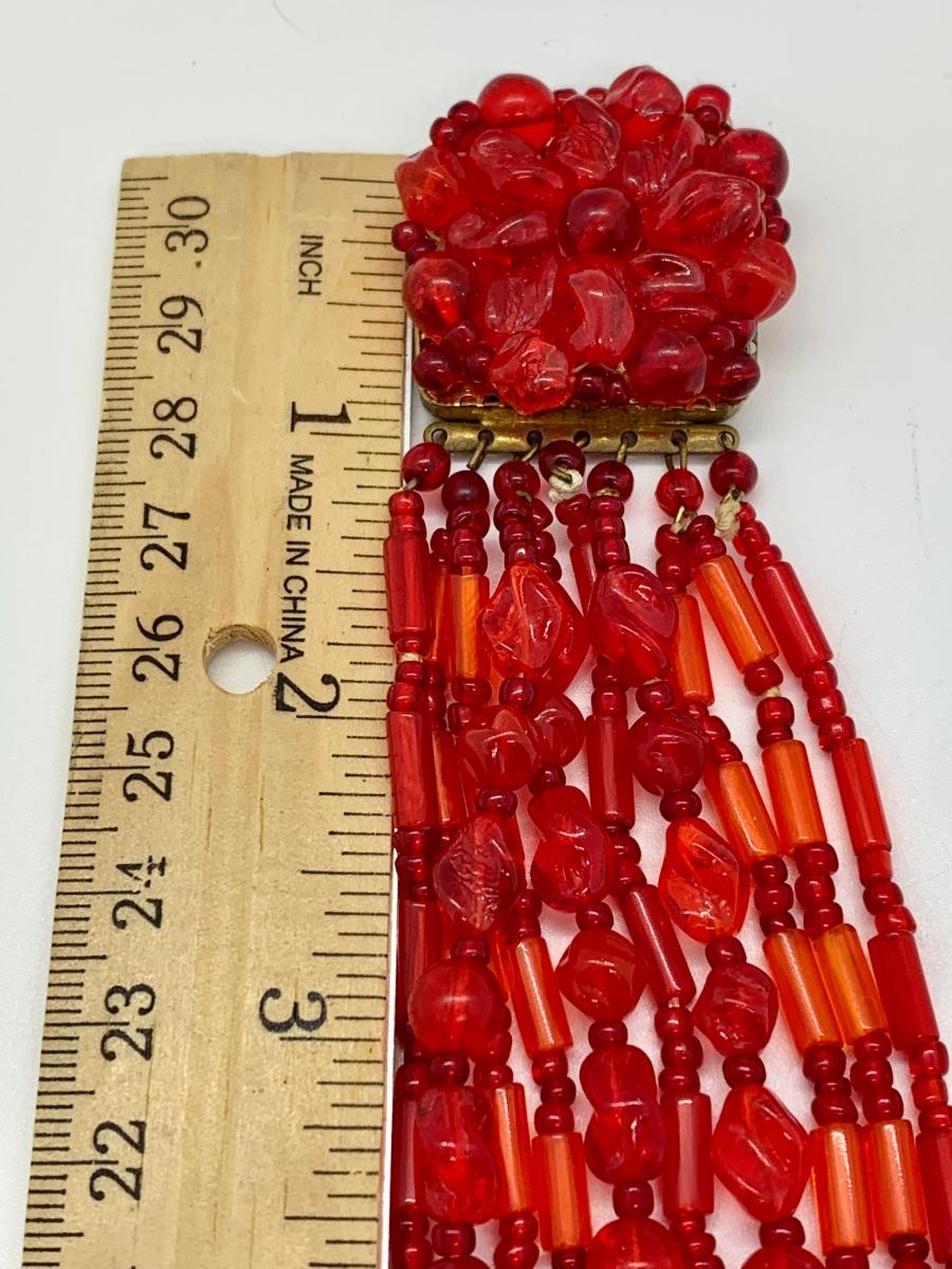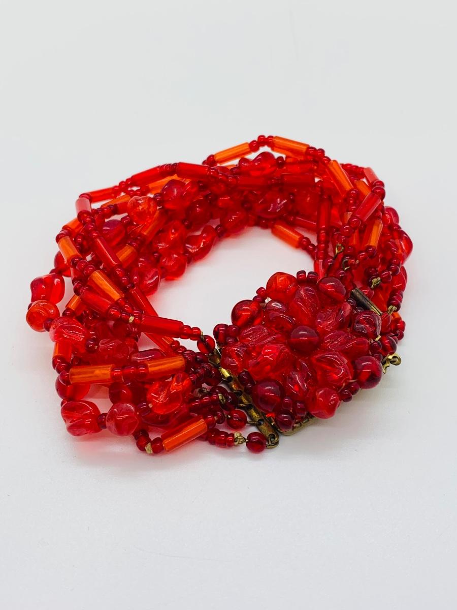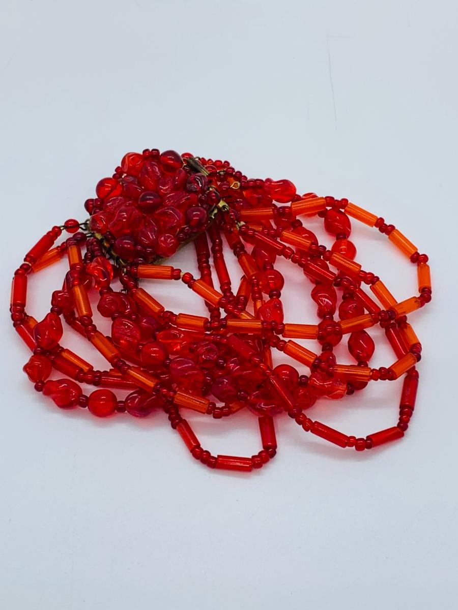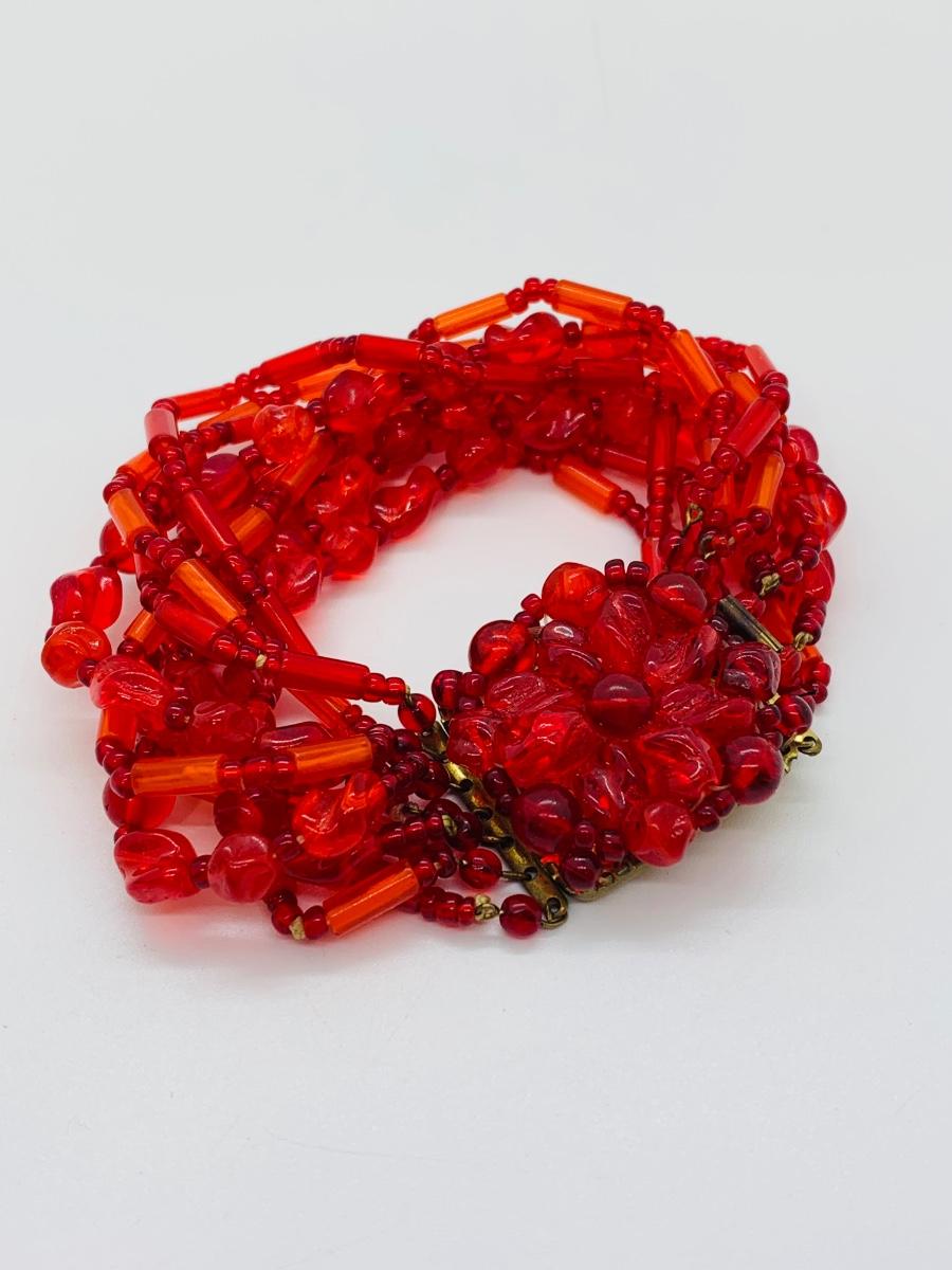 LOT 105J: Vintage Reddish Floral Made in Germany Beaded Bracelet