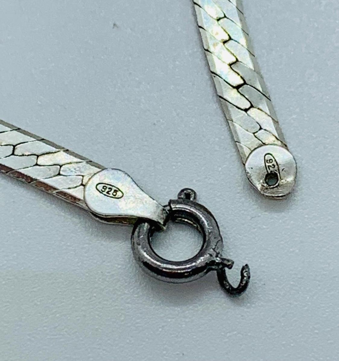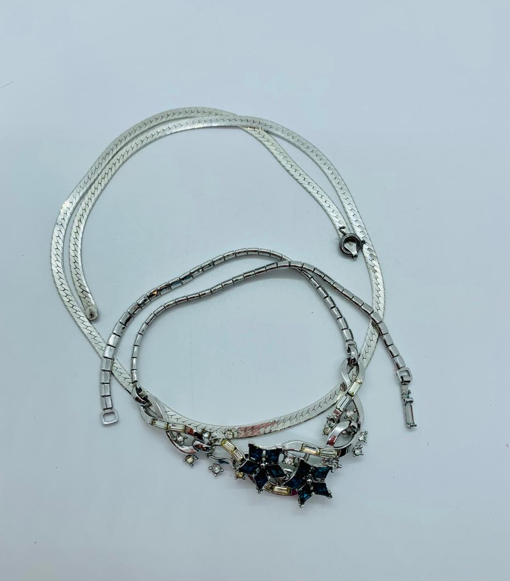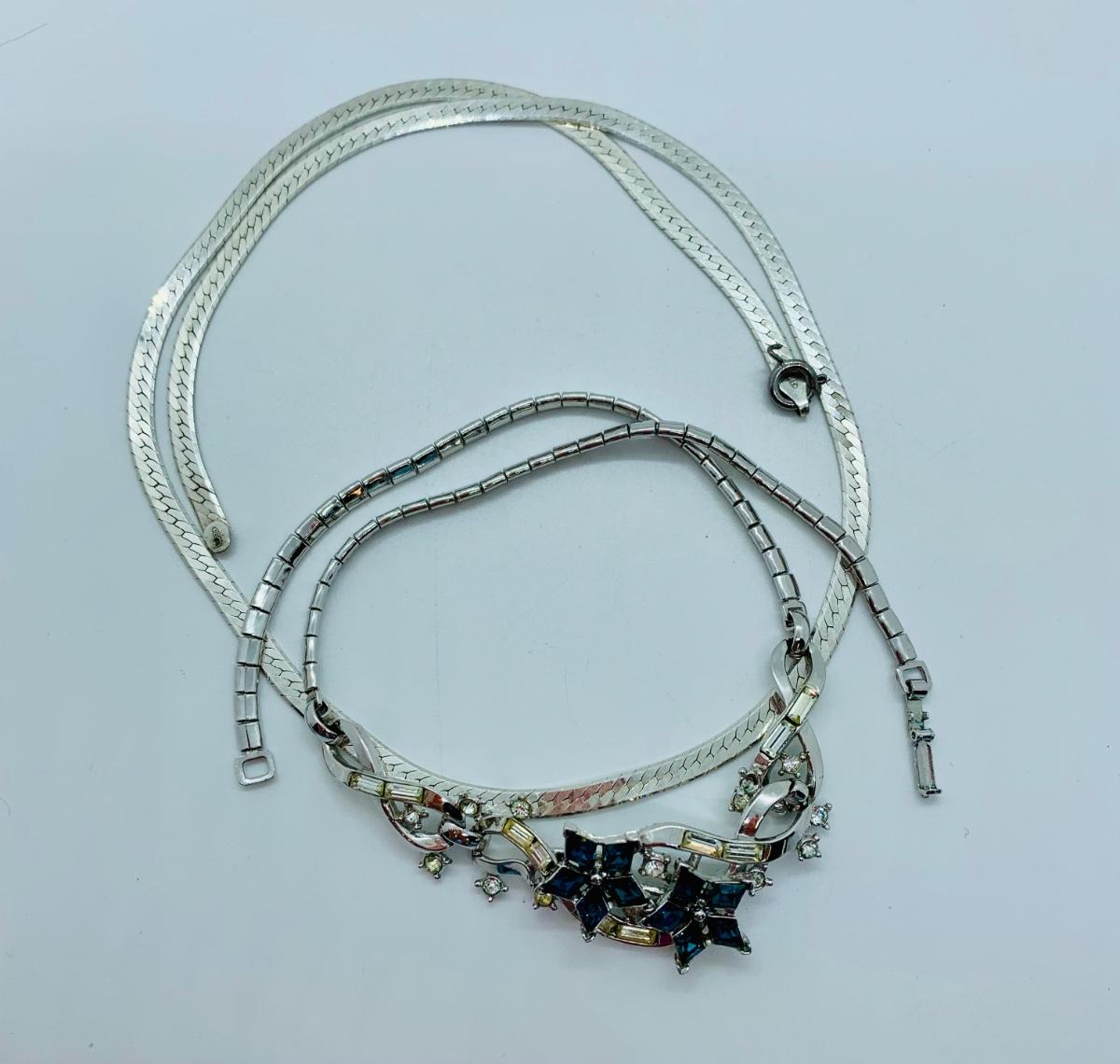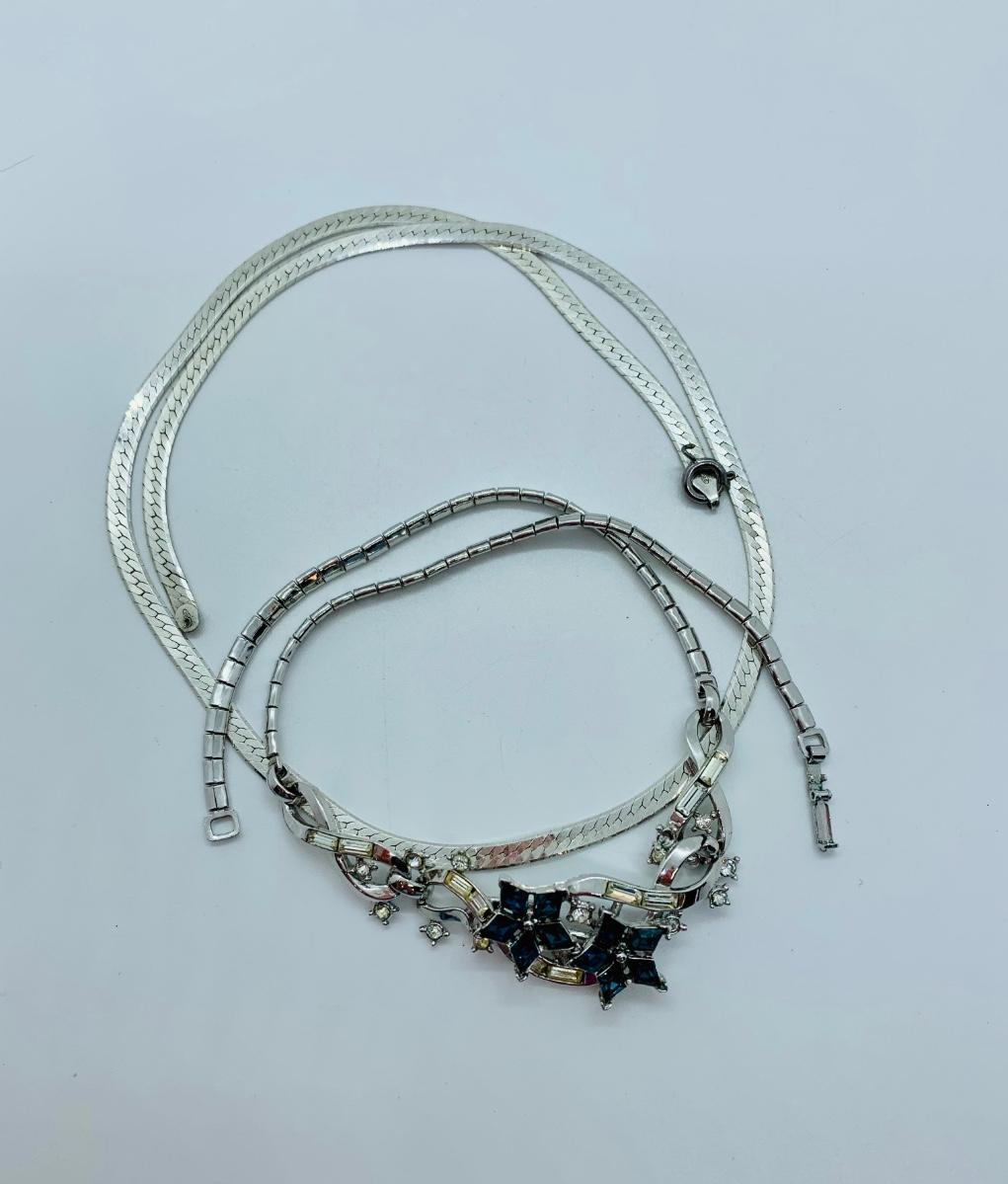 925 Sterling Chain needs clasp repaired and the faux sapphire necklace is missing a stone.