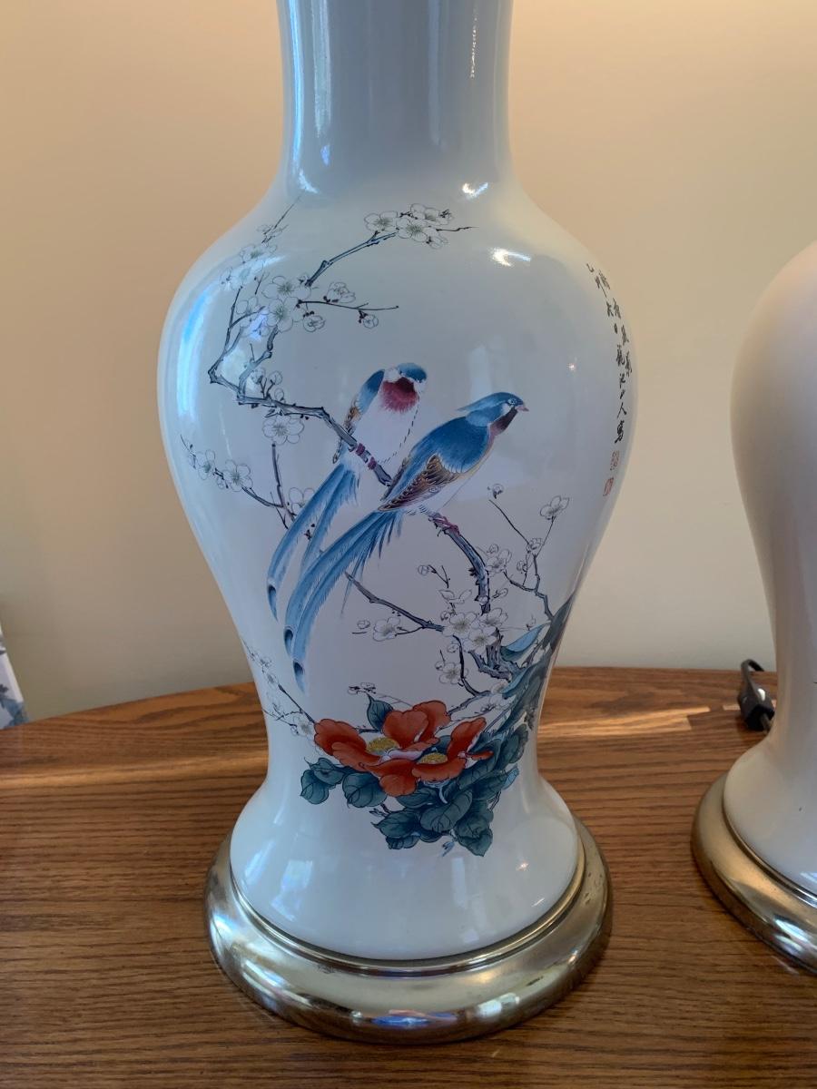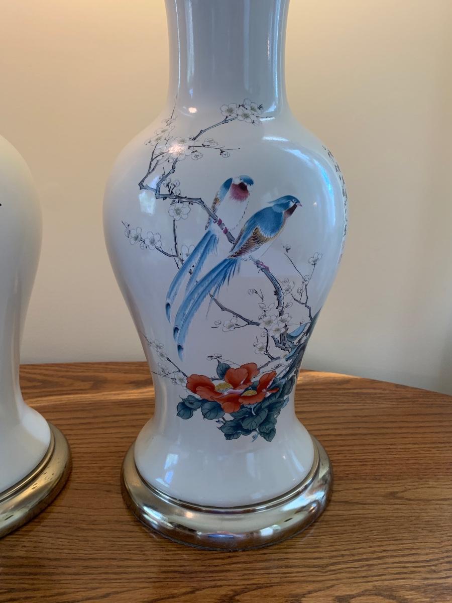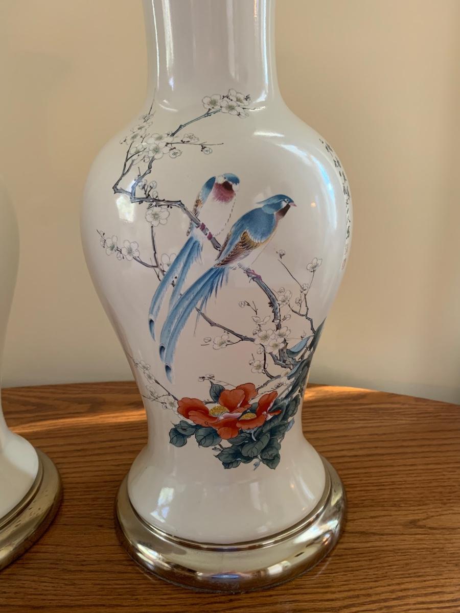 LOT 110R: Vintage Pair of Japanese Designed Lamps with Birds