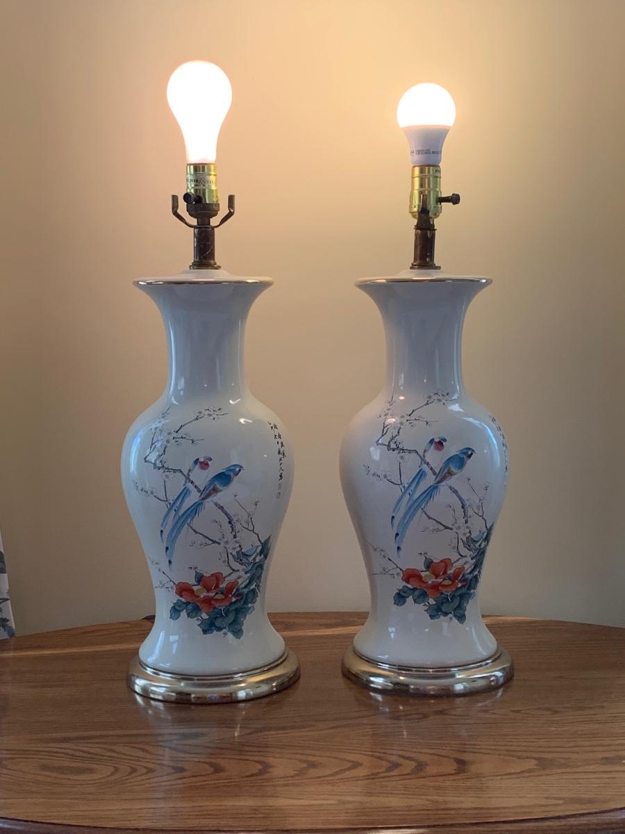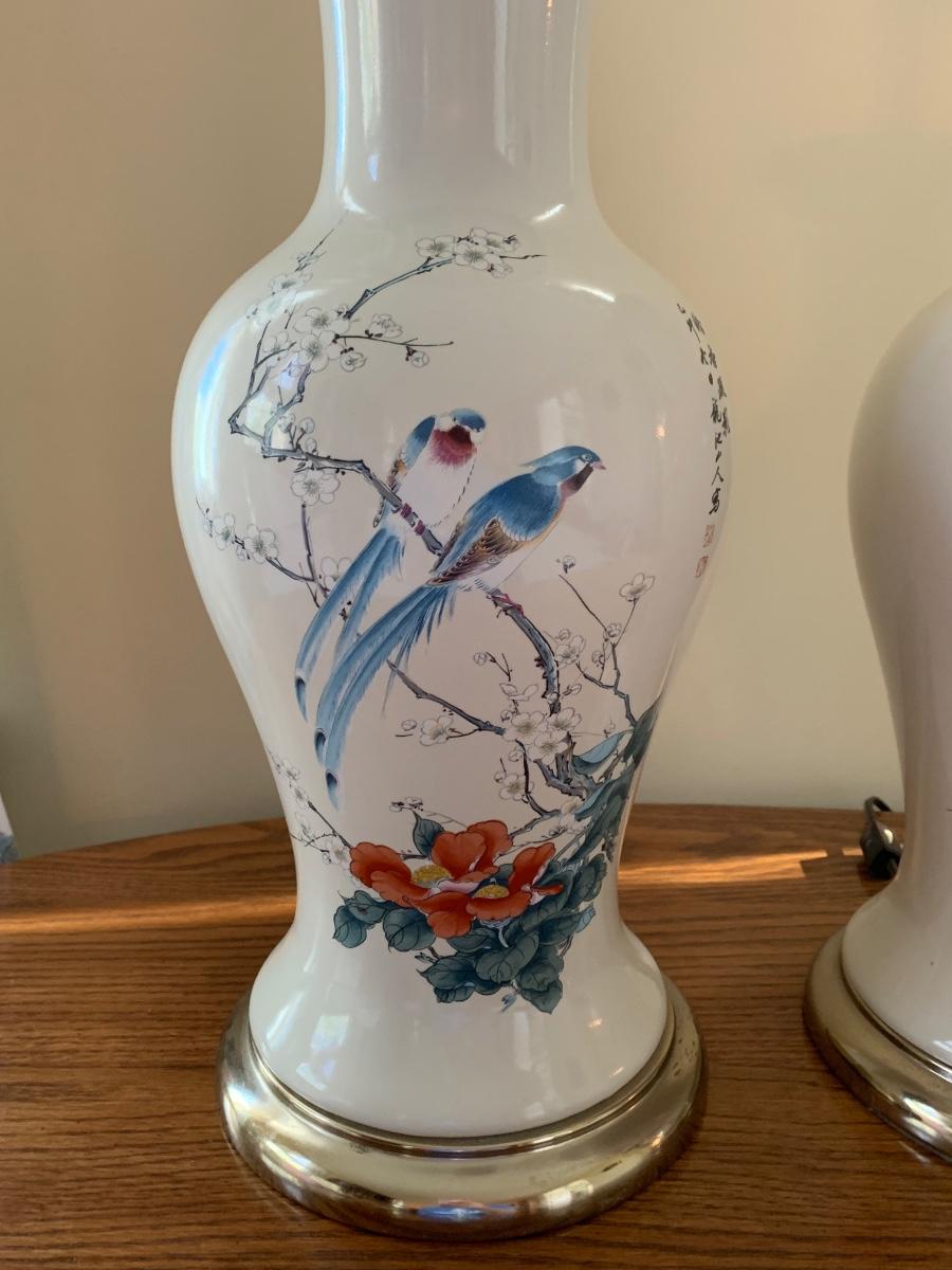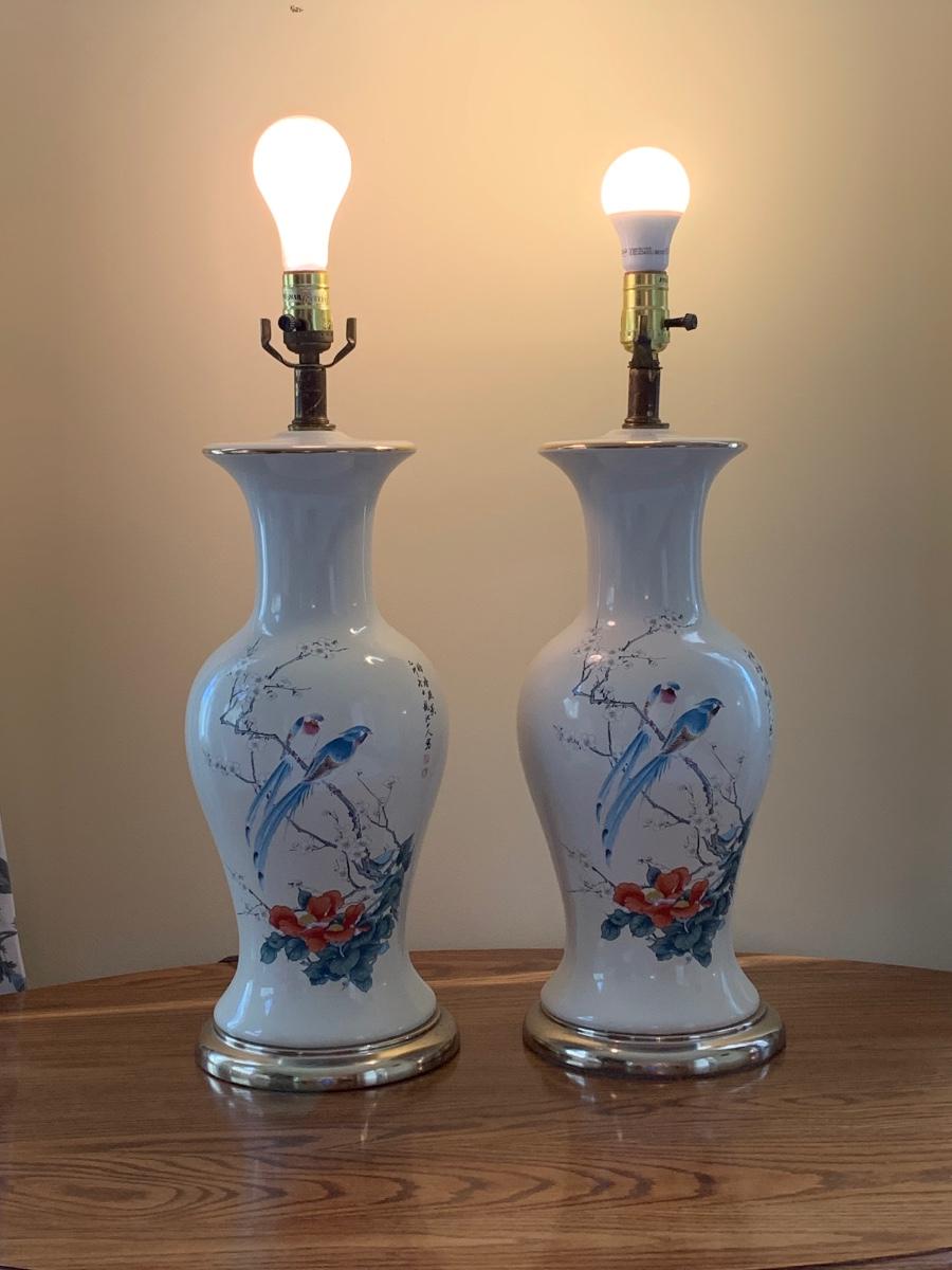 LOT 110R: Vintage Pair of Japanese Designed Lamps with Birds