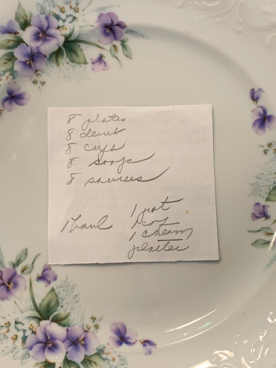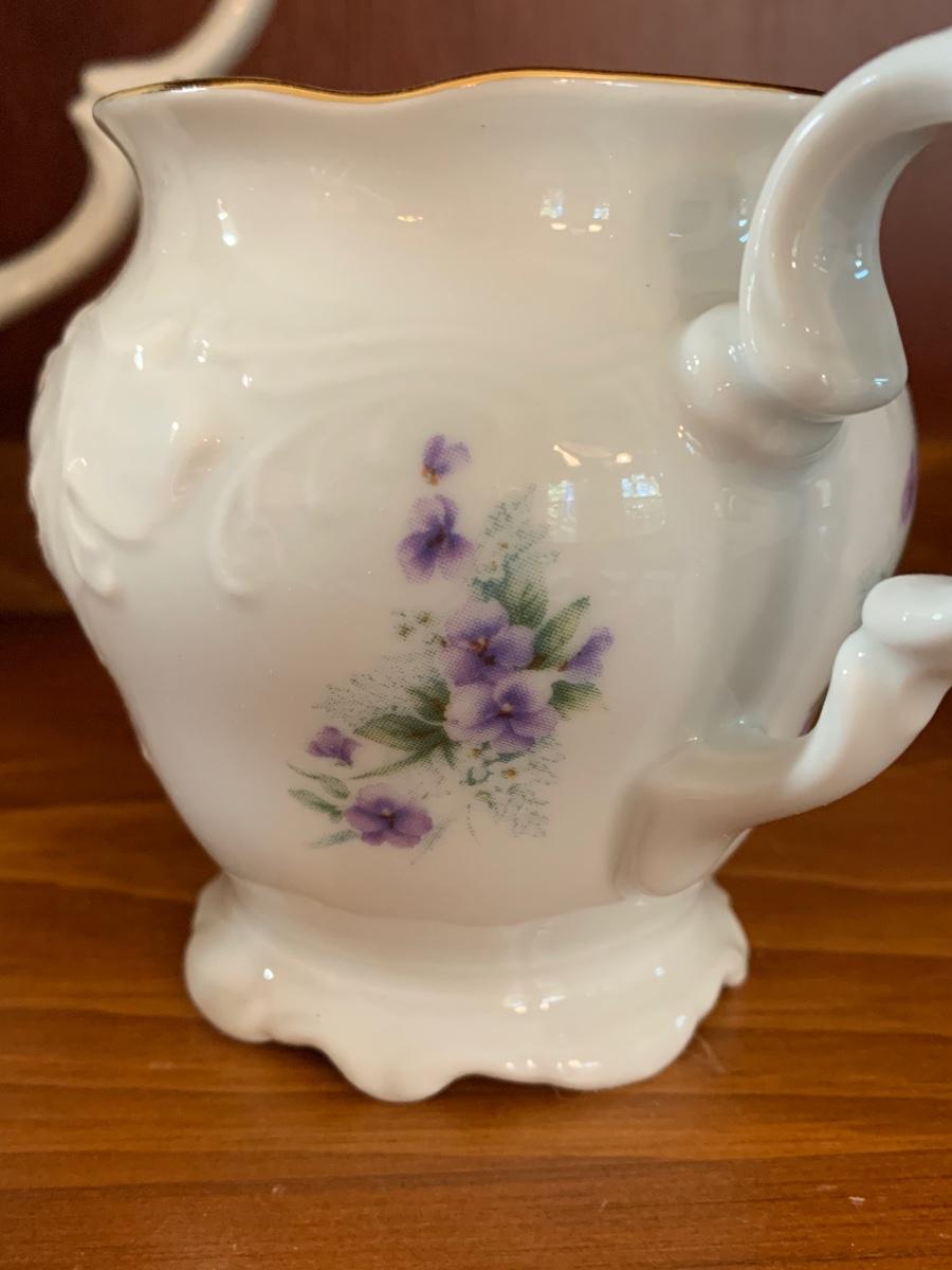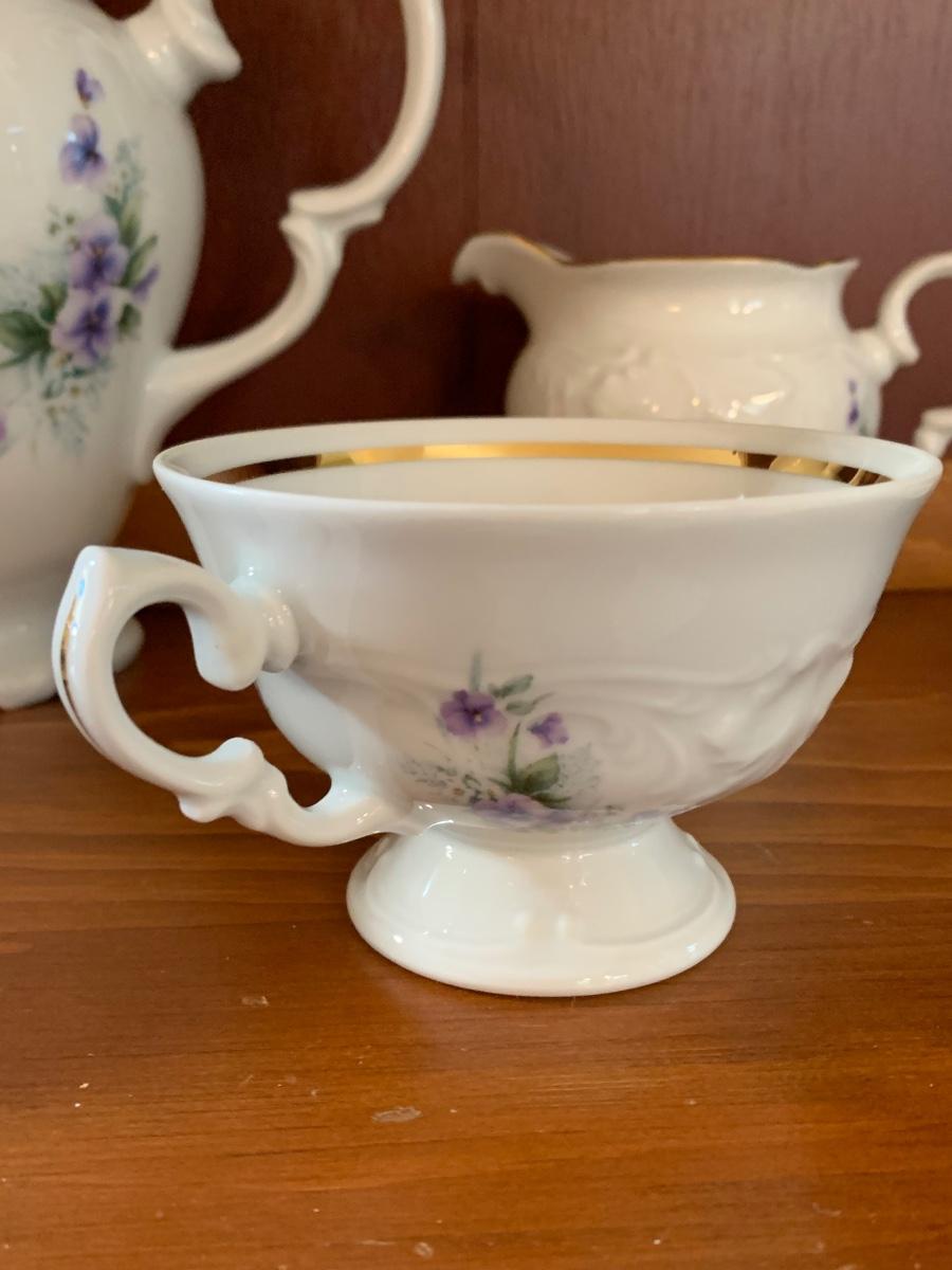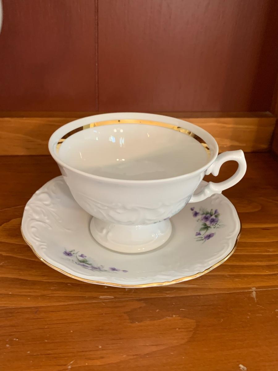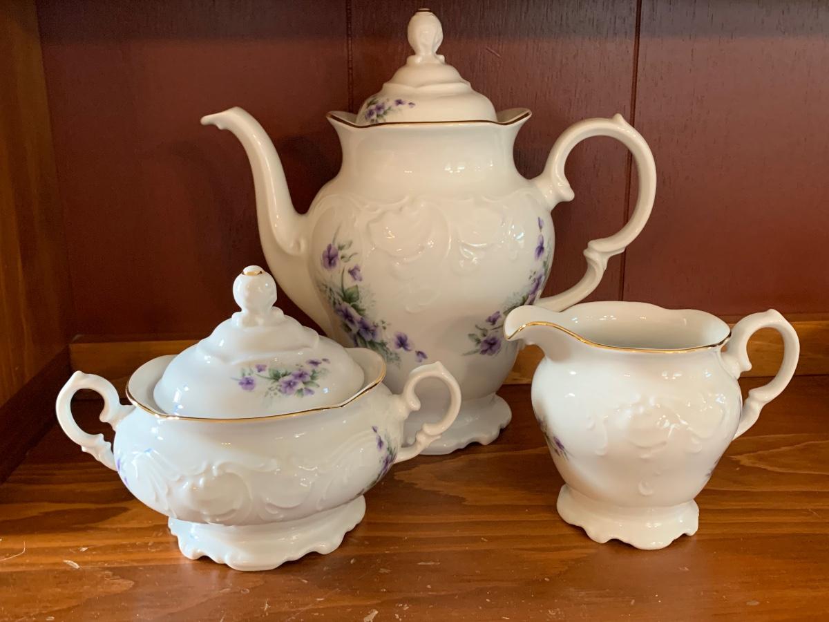 LOT 111R: Royal Kent (Poland) Purple Violet China, 8 each of Plates,Cups & Saucers, Soup Bowls,Dessert Plates along w/.Serving Pieces