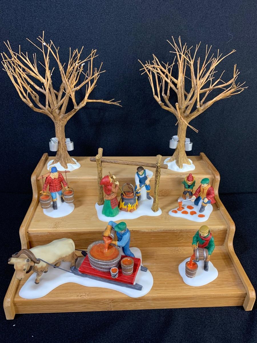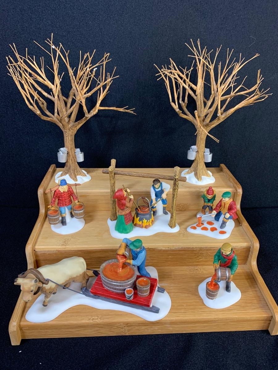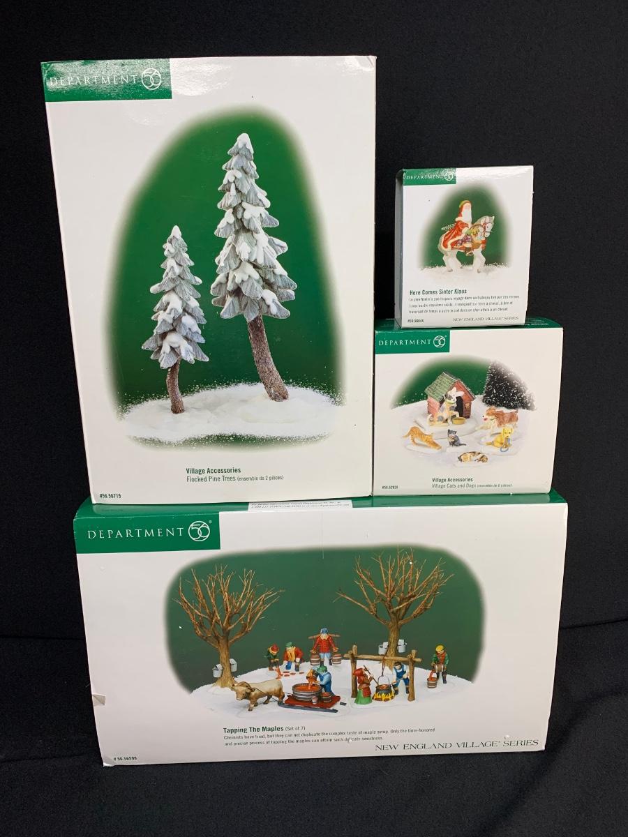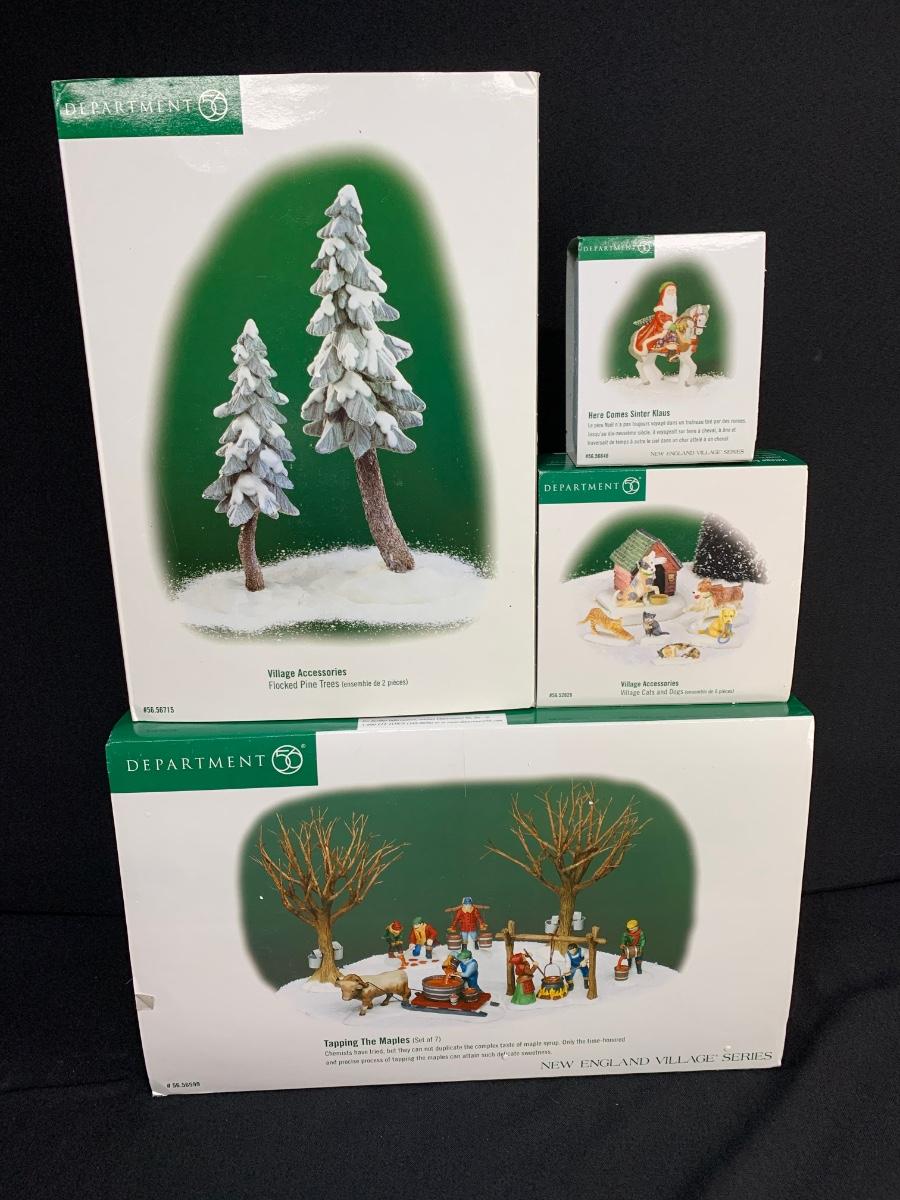 LOT 112R: Dept 56 Boxed Accessory Sets: Tapping the Maples, Flocked Pines, Cats & Dogs, Here Comes Sinter Klaus