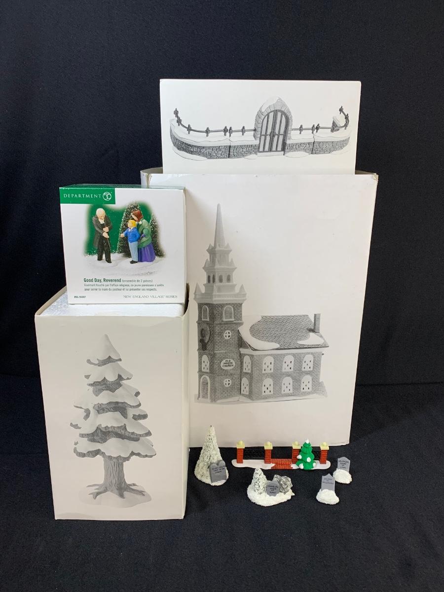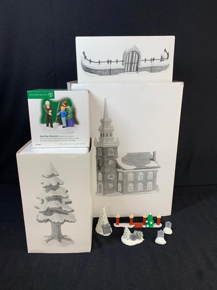 LOT 114R: Dept 56 Paul Revere Steeple Church, Good Day Reverend & More