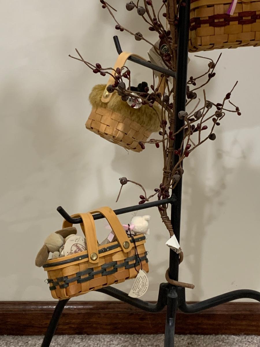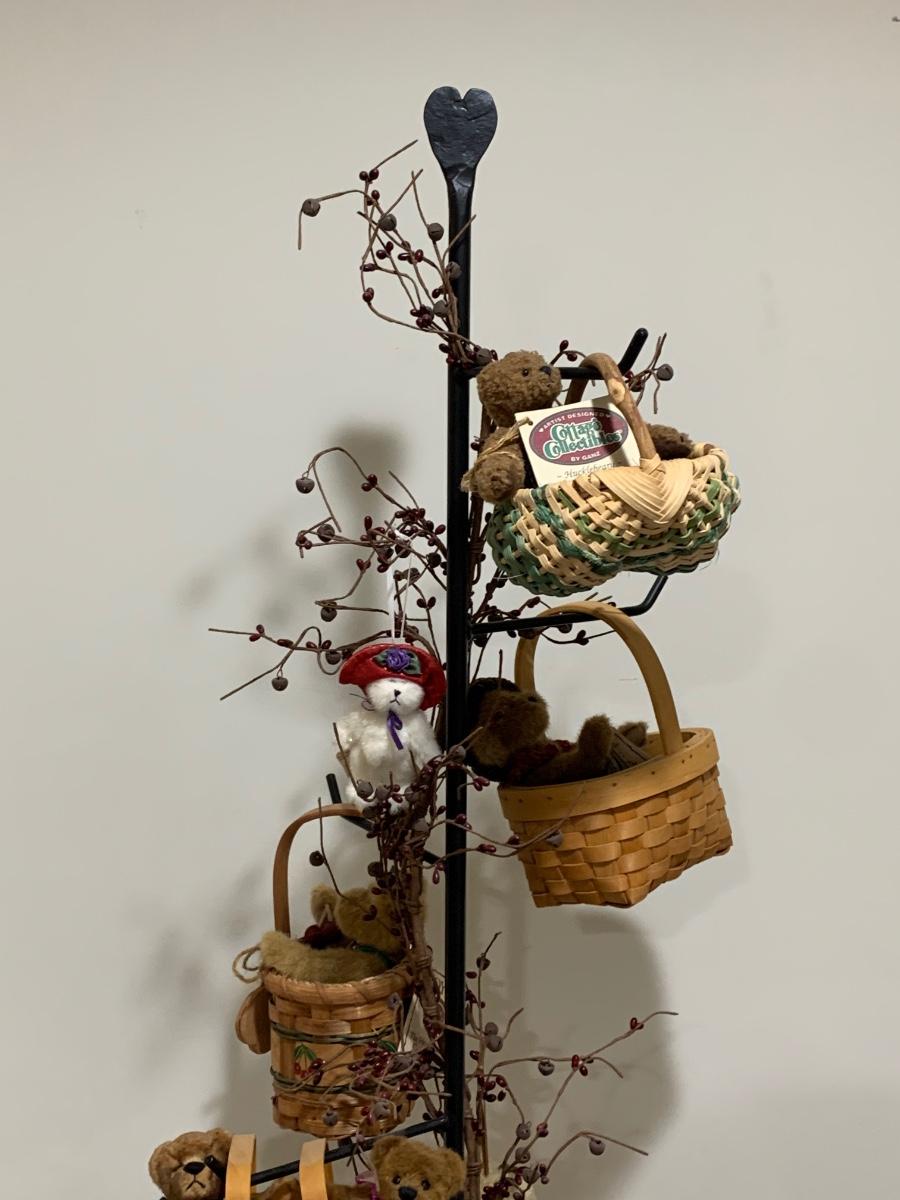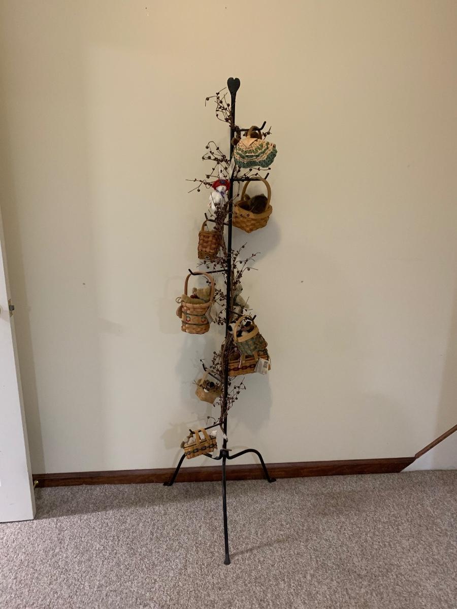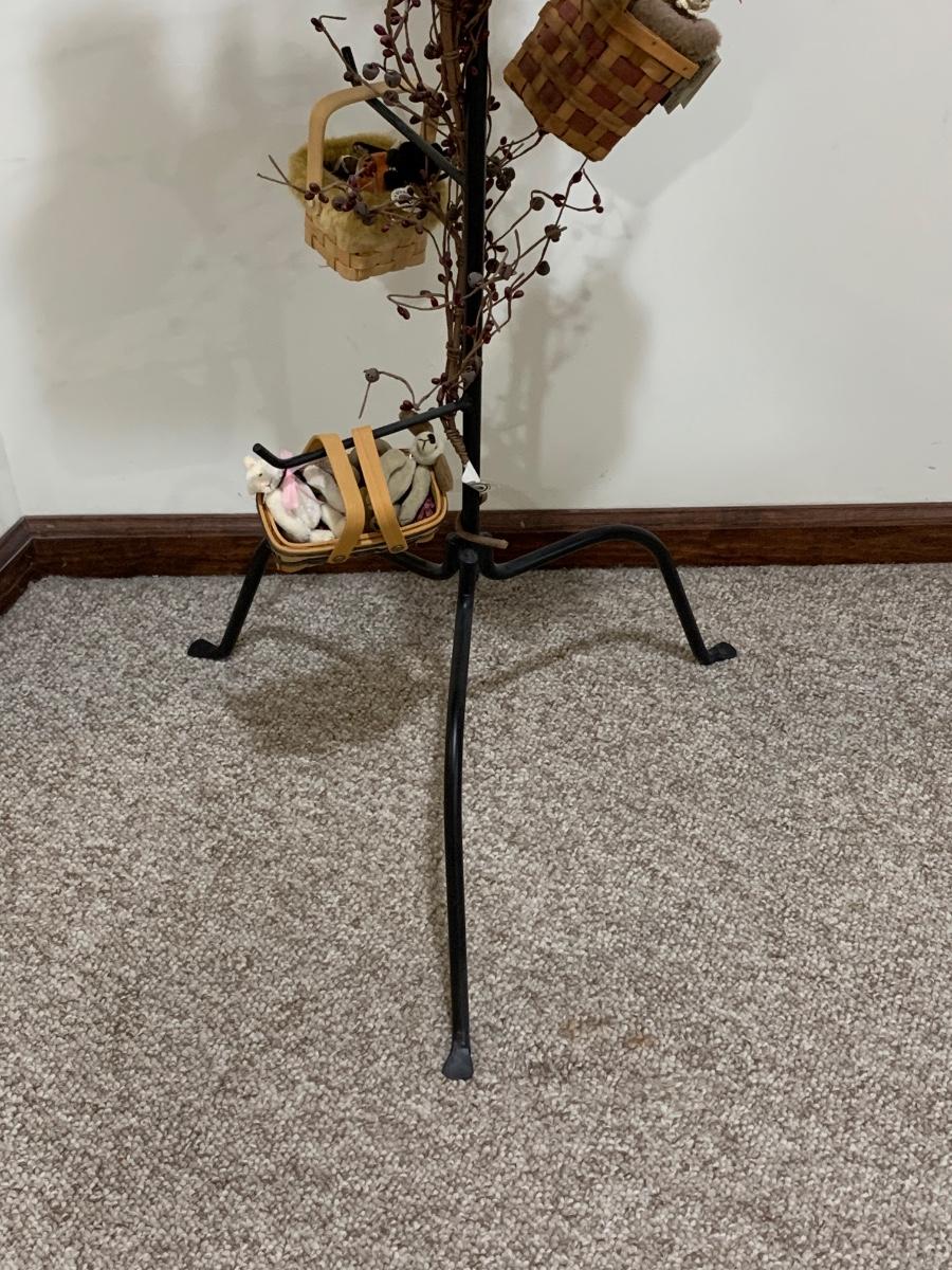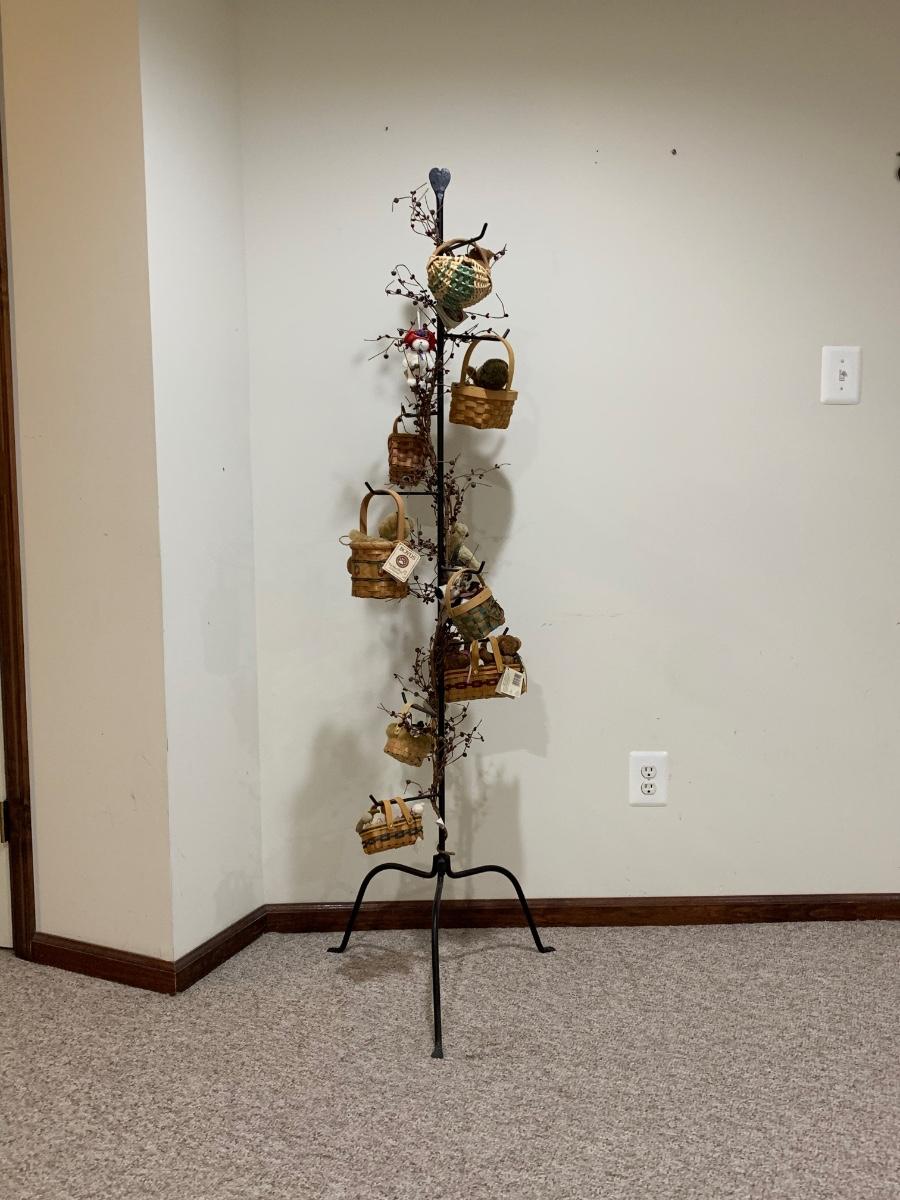 LOT 132R Wrought Iron Basket Stand/Holder/Hooks Tree, 64"
