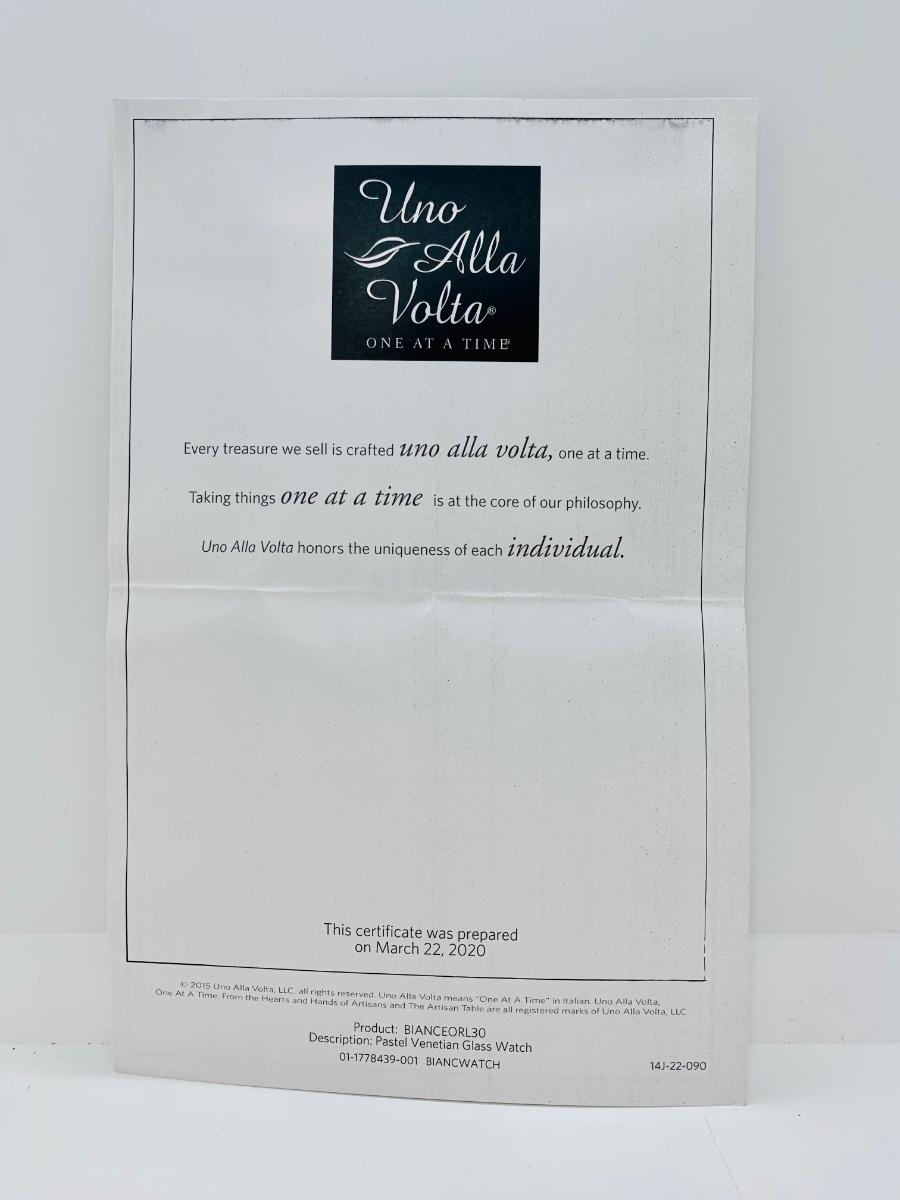 LOT 144J: Uno Alla Volta, LLC  Hand Crafted Watch w./COA