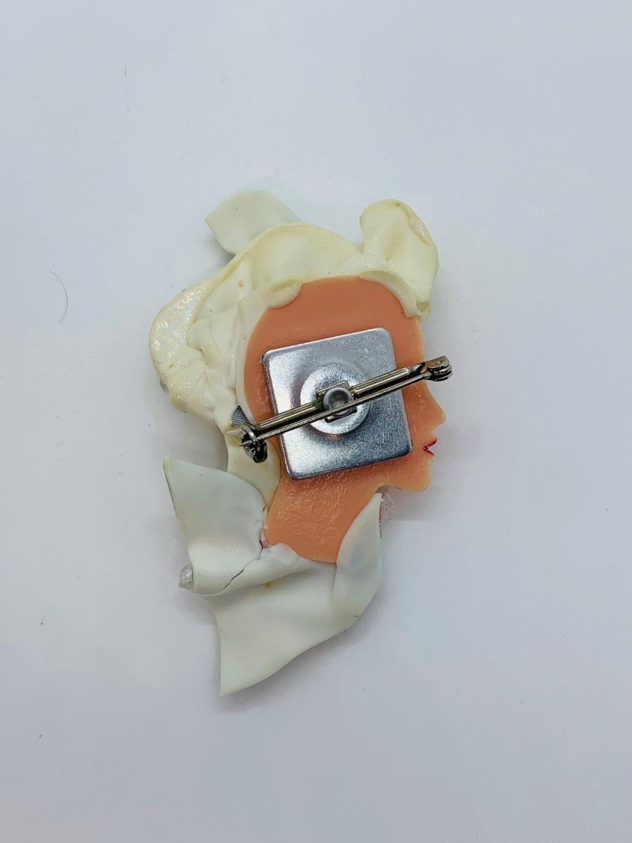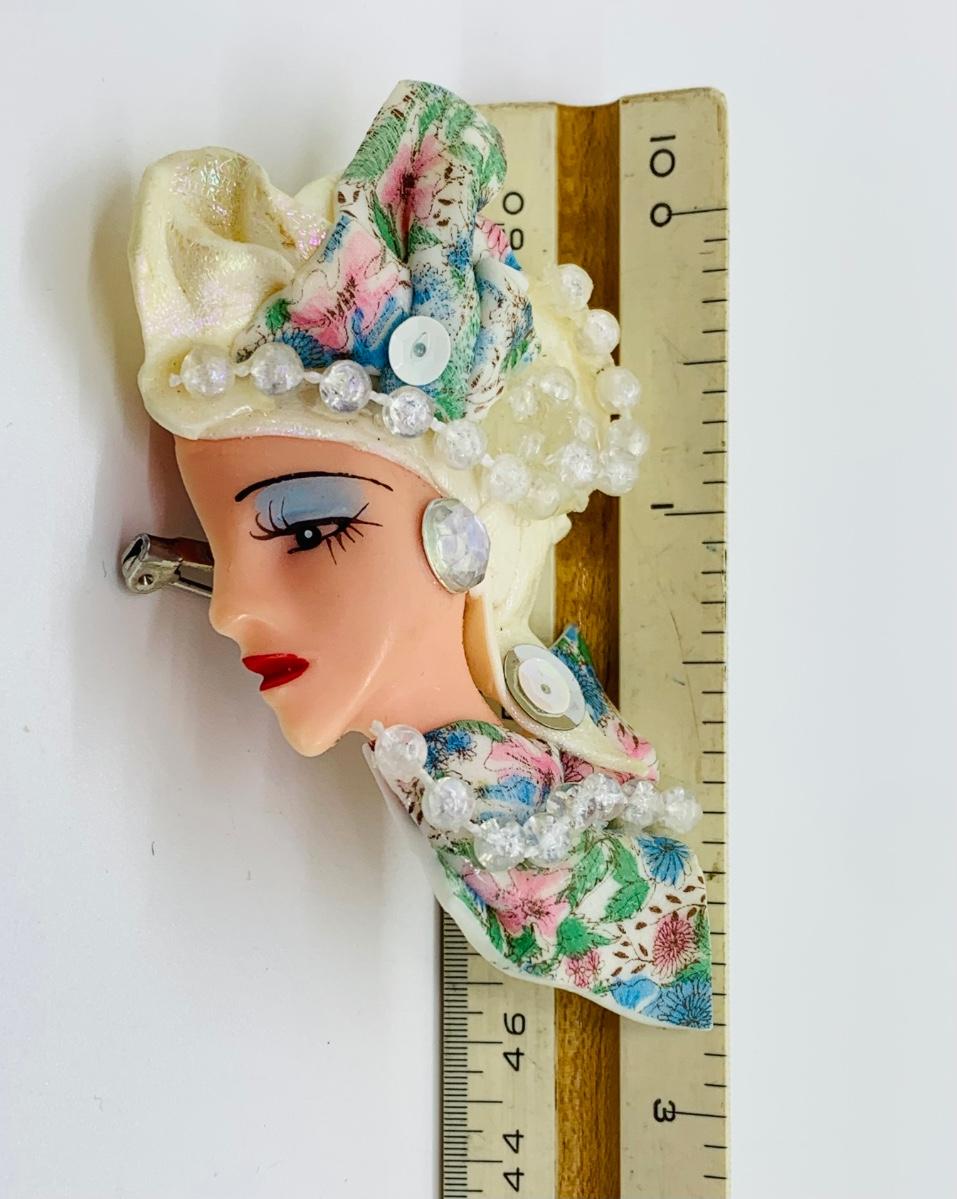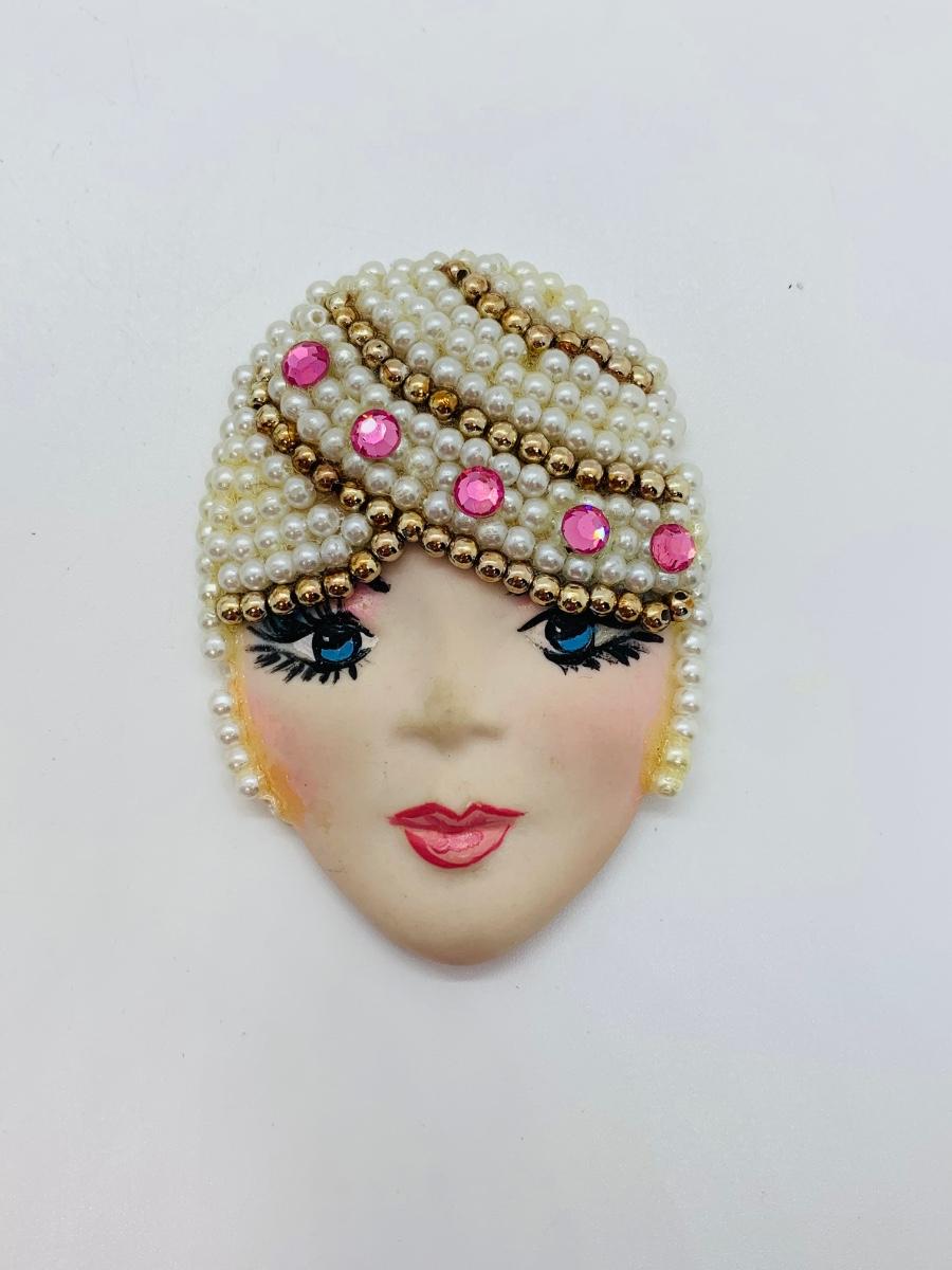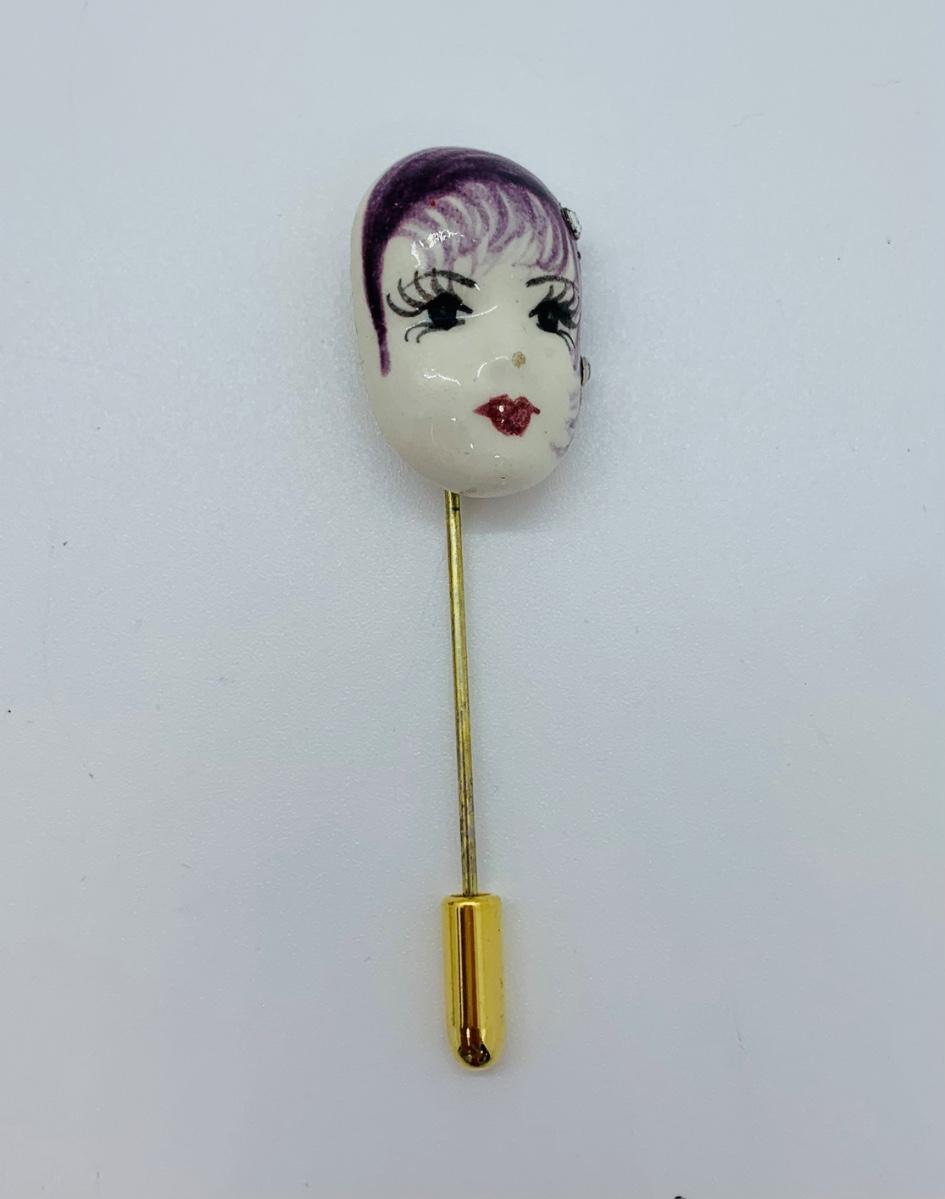 LOT 146J: Face Brooches: Pearl Flappers Dated & Signed, Stick Pin, Signed , JJ Art  Deco & More