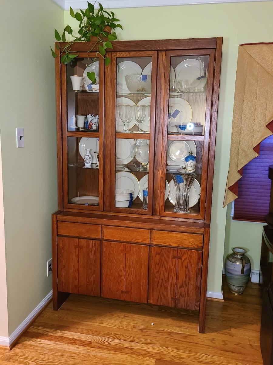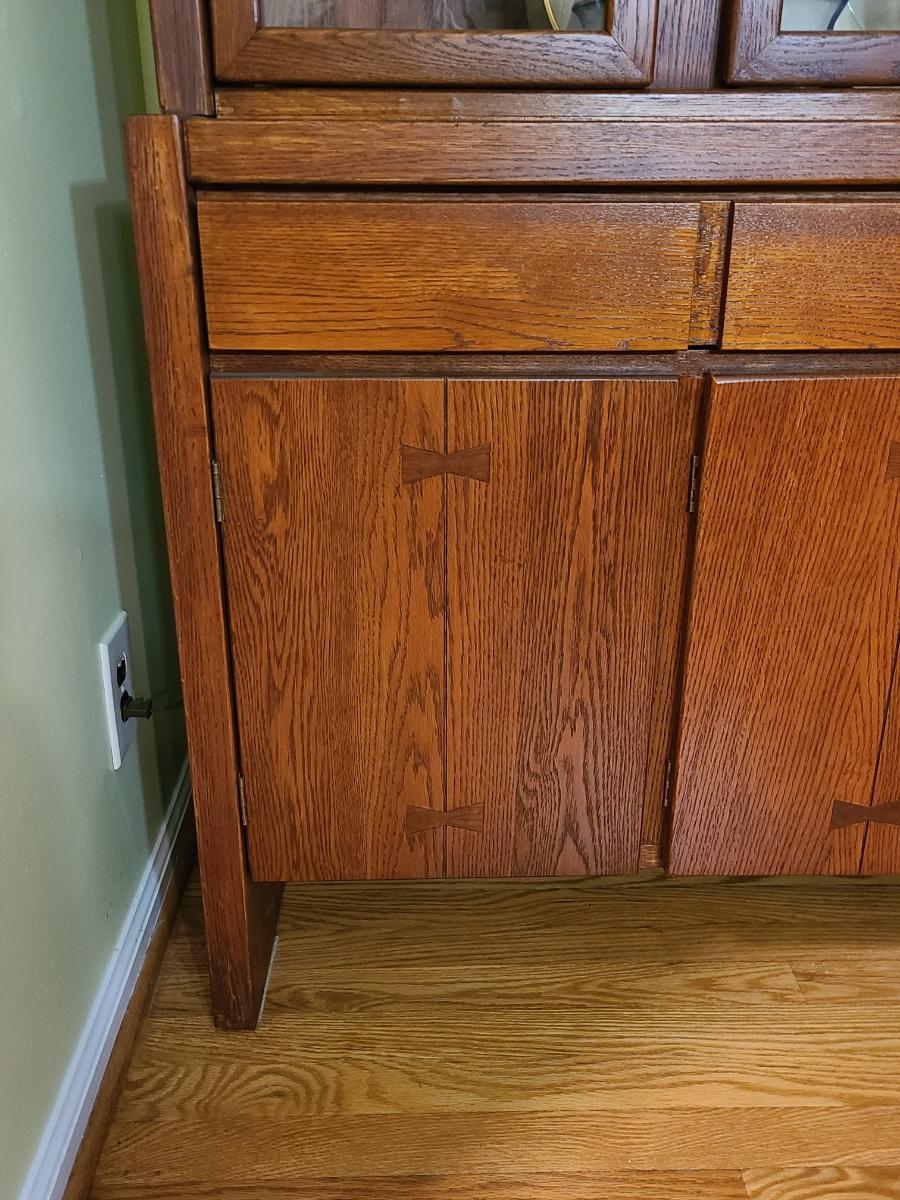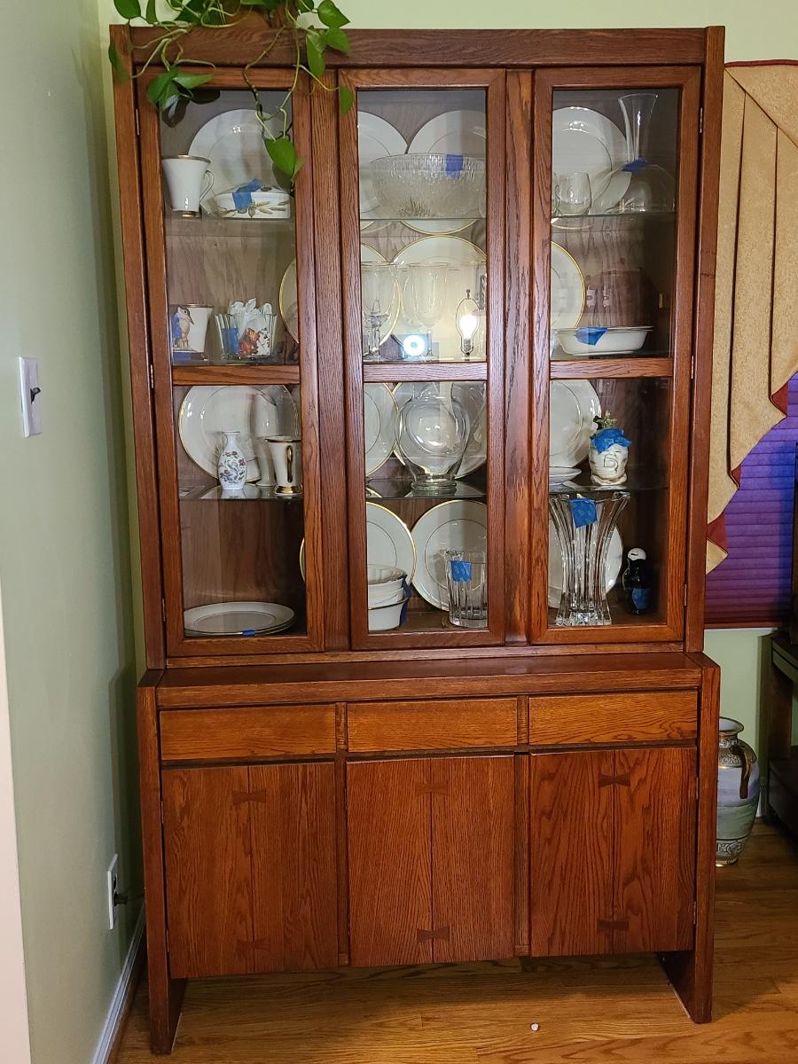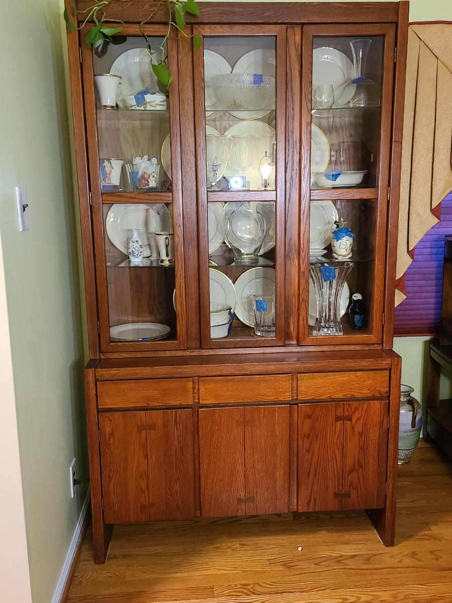 46 inches long, 33 inches at break, 78 inches tall. 18.5 inches deep. This is gorgeous in person in the mission style, by Conant Ball Furniture Makers. Solid! Items inside are not included. Please see all pictures as they are the best representation of the items. The pictures show condition, measurements if taken, and what is included in the lot. Due to the large amount that we photograph and the time frame, we are not always able to take measurements. All items unless noted, are pre-owned and have been used. If you purchased furniture, you must bring help. We do not allow one person to carry large furniture out on their own. Bring help, tools and a truck for the safety of our client’s homes, and your personal safety. Any damages that result to the property including walls, and floors due to moving of the furniture will be charged to the buyer. Company policy. Thank you.
