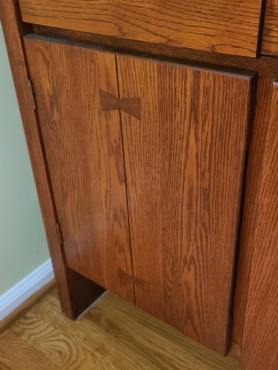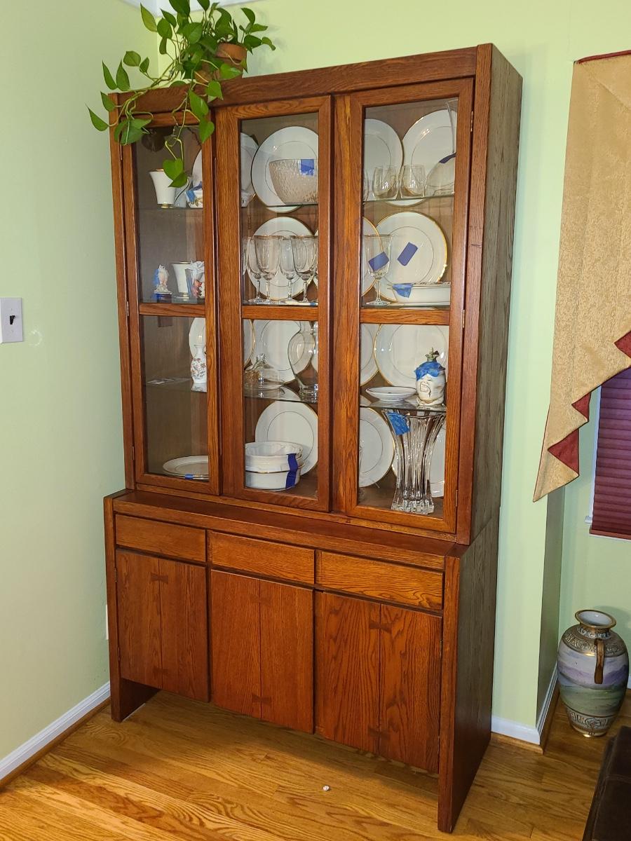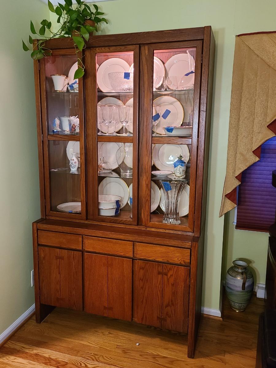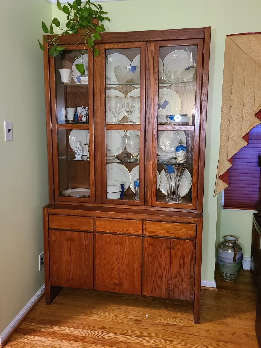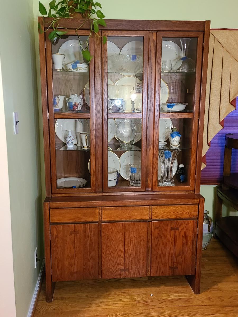 46 inches long, 33 inches at break, 78 inches tall. 18.5 inches deep. This is gorgeous in person in the mission style, by Conant Ball Furniture Makers. Solid! Items inside are not included. Please see all pictures as they are the best representation of the items. The pictures show condition, measurements if taken, and what is included in the lot. Due to the large amount that we photograph and the time frame, we are not always able to take measurements. All items unless noted, are pre-owned and have been used. If you purchased furniture, you must bring help. We do not allow one person to carry large furniture out on their own. Bring help, tools and a truck for the safety of our client’s homes, and your personal safety. Any damages that result to the property including walls, and floors due to moving of the furniture will be charged to the buyer. Company policy. Thank you.