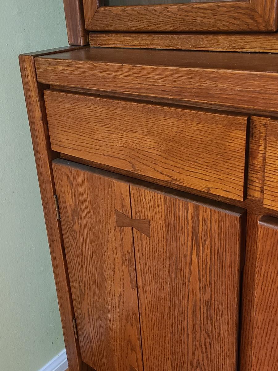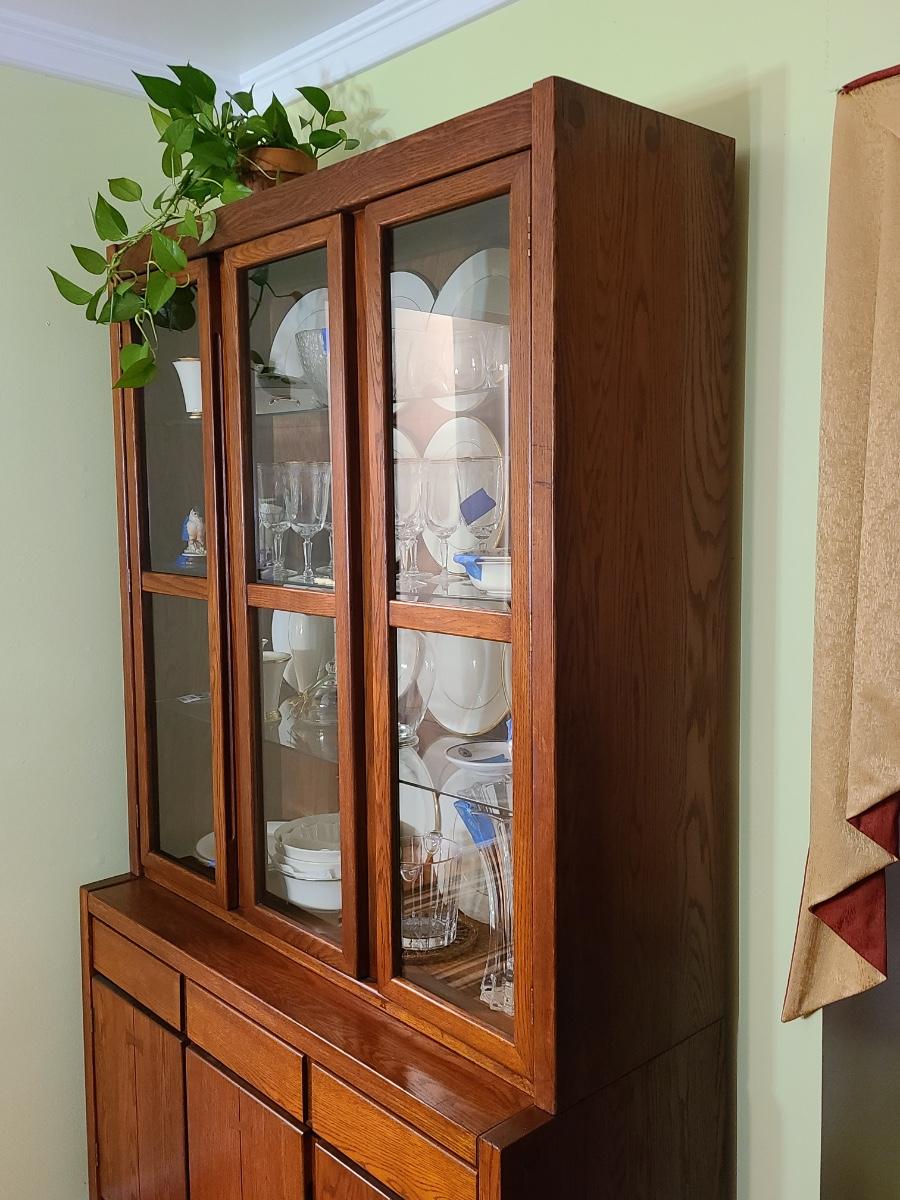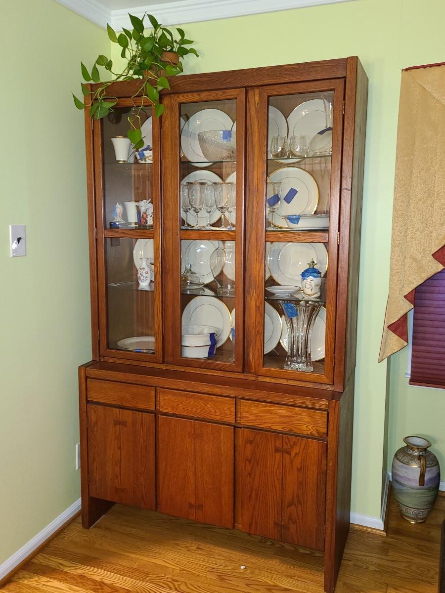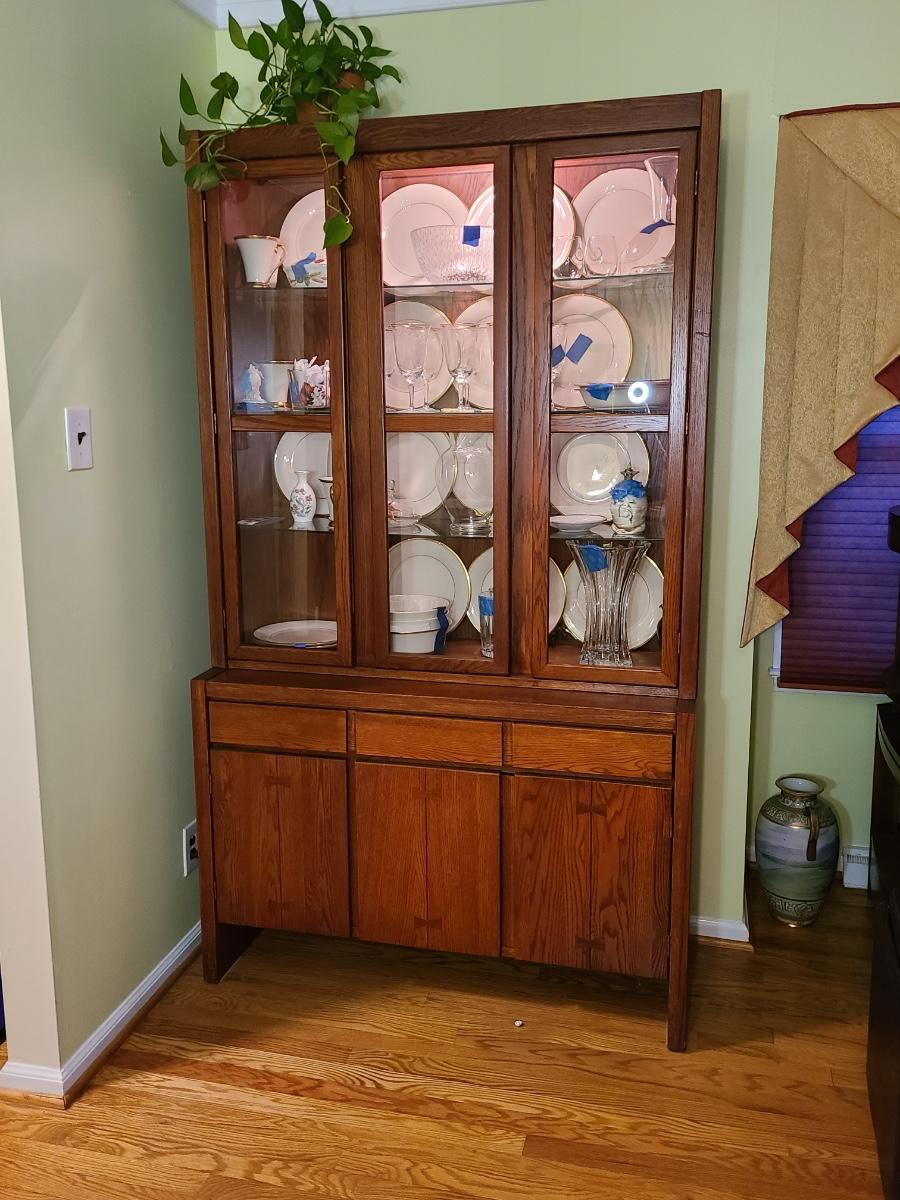 46 inches long, 33 inches at break, 78 inches tall. 18.5 inches deep. This is gorgeous in person in the mission style, by Conant Ball Furniture Makers. Solid! Items inside are not included. Please see all pictures as they are the best representation of the items. The pictures show condition, measurements if taken, and what is included in the lot. Due to the large amount that we photograph and the time frame, we are not always able to take measurements. All items unless noted, are pre-owned and have been used. If you purchased furniture, you must bring help. We do not allow one person to carry large furniture out on their own. Bring help, tools and a truck for the safety of our client’s homes, and your personal safety. Any damages that result to the property including walls, and floors due to moving of the furniture will be charged to the buyer. Company policy. Thank you.