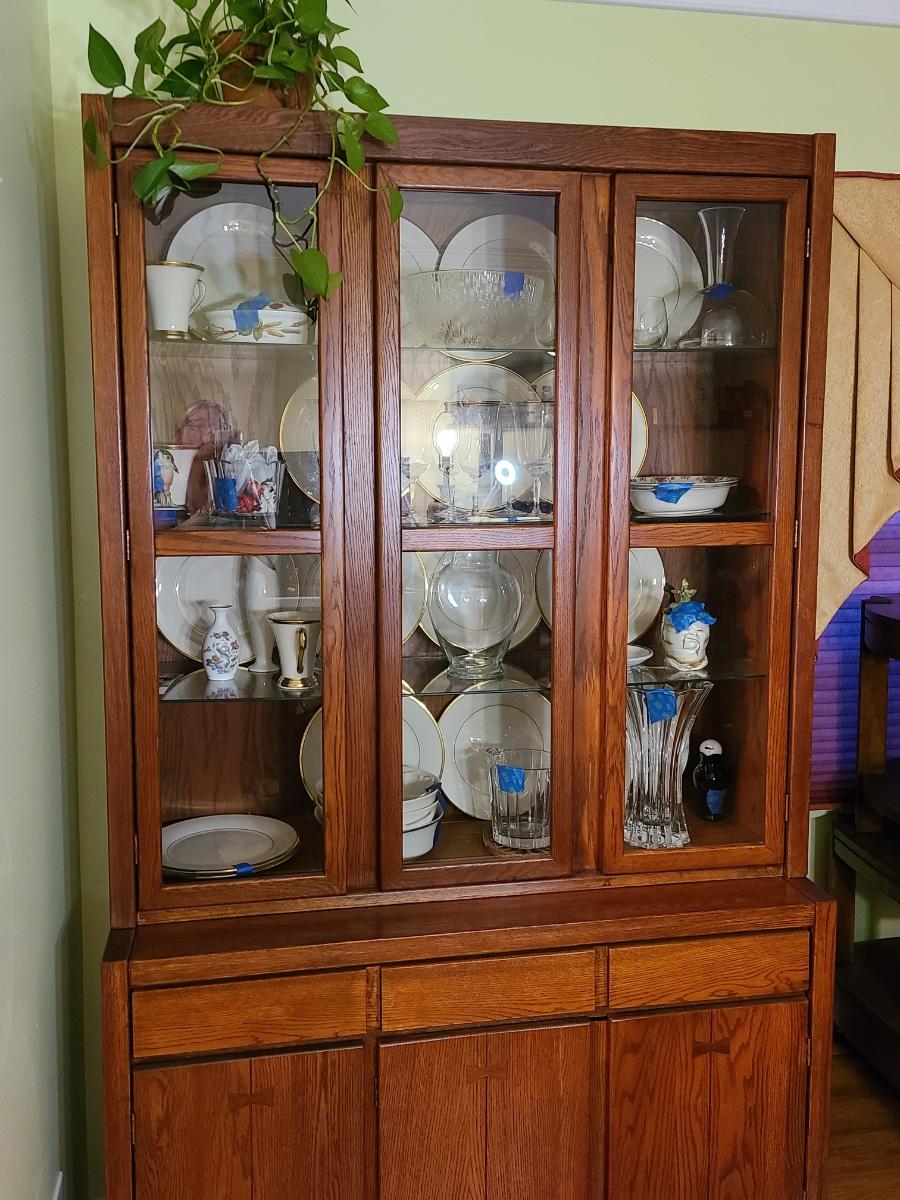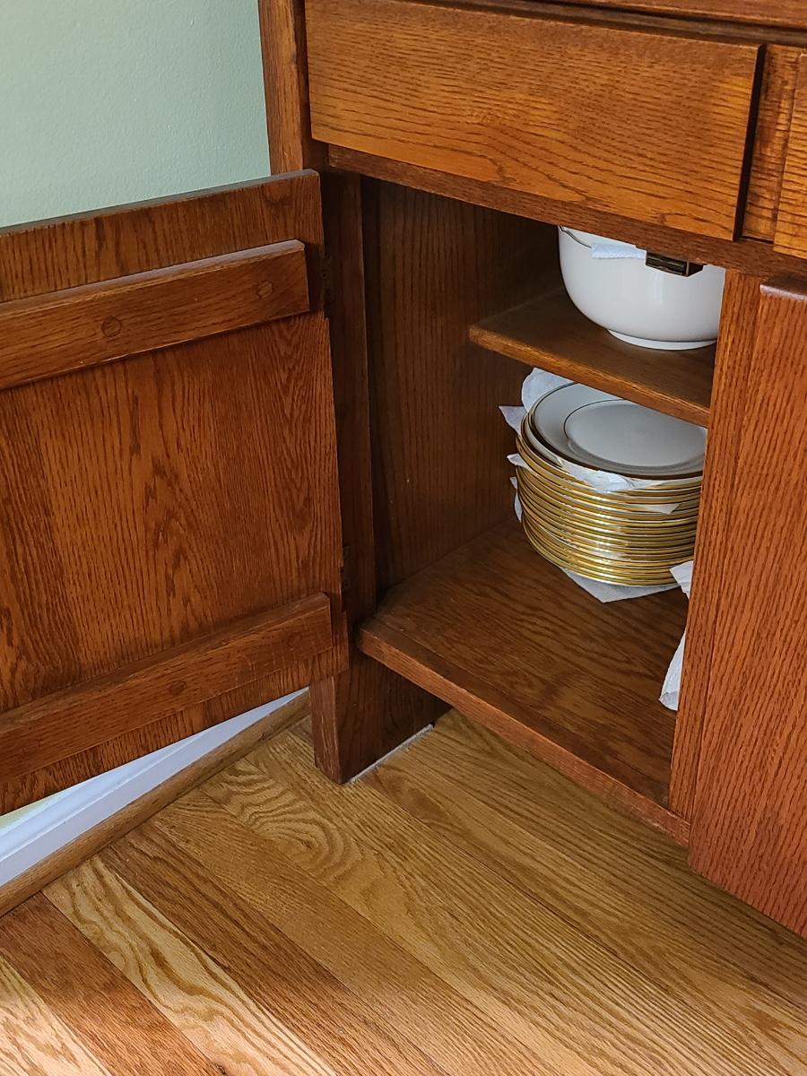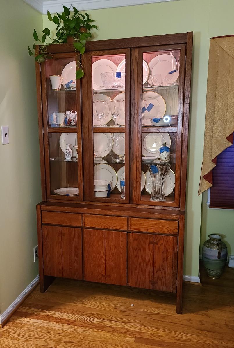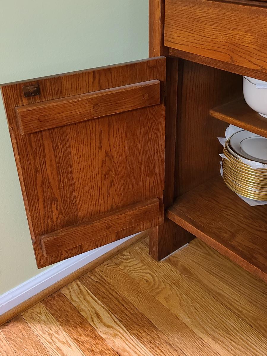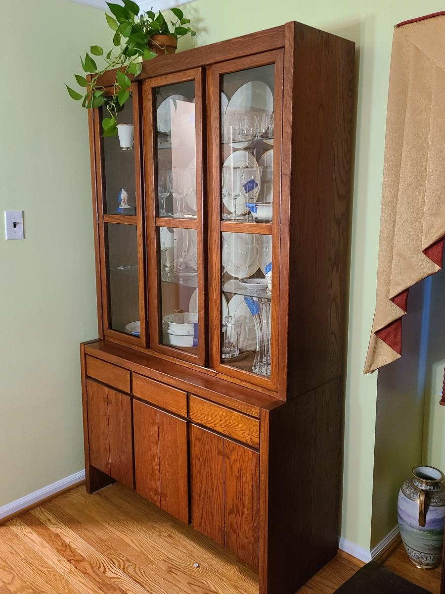 46 inches long, 33 inches at break, 78 inches tall. 18.5 inches deep. This is gorgeous in person in the mission style, by Conant Ball Furniture Makers. Solid! Items inside are not included. Please see all pictures as they are the best representation of the items. The pictures show condition, measurements if taken, and what is included in the lot. Due to the large amount that we photograph and the time frame, we are not always able to take measurements. All items unless noted, are pre-owned and have been used. If you purchased furniture, you must bring help. We do not allow one person to carry large furniture out on their own. Bring help, tools and a truck for the safety of our client’s homes, and your personal safety. Any damages that result to the property including walls, and floors due to moving of the furniture will be charged to the buyer. Company policy. Thank you.