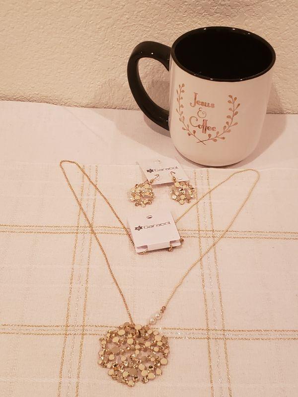 Lot 801: New Necklace & Earrings and Coffee Cup
