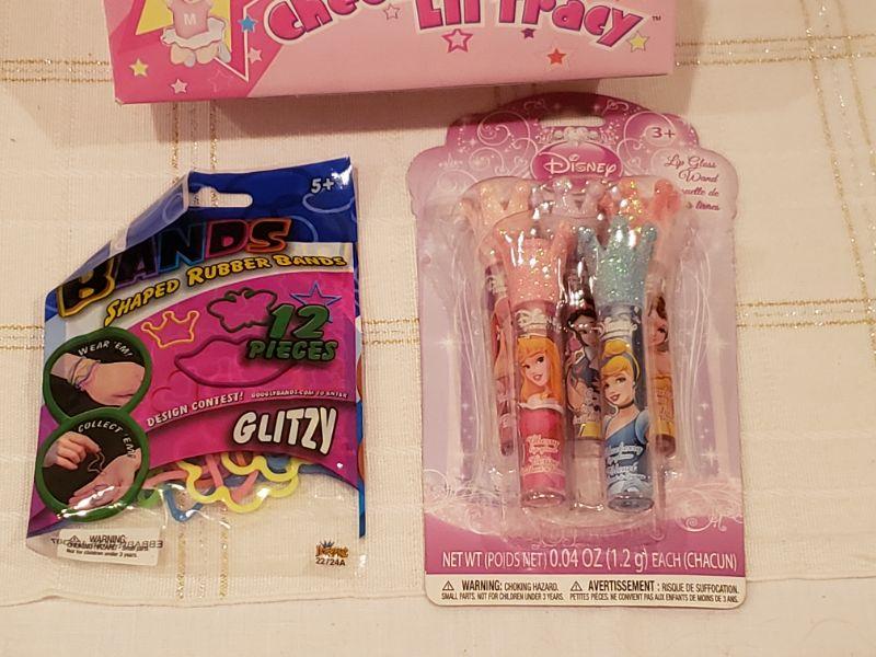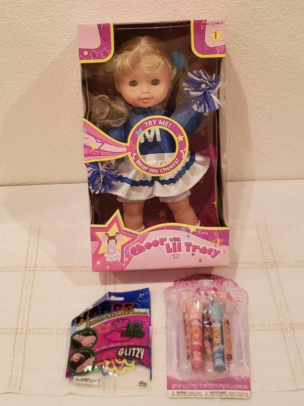 Lot 802: New Cheer Doll, Disney Princess Lip Gloss and bracelets