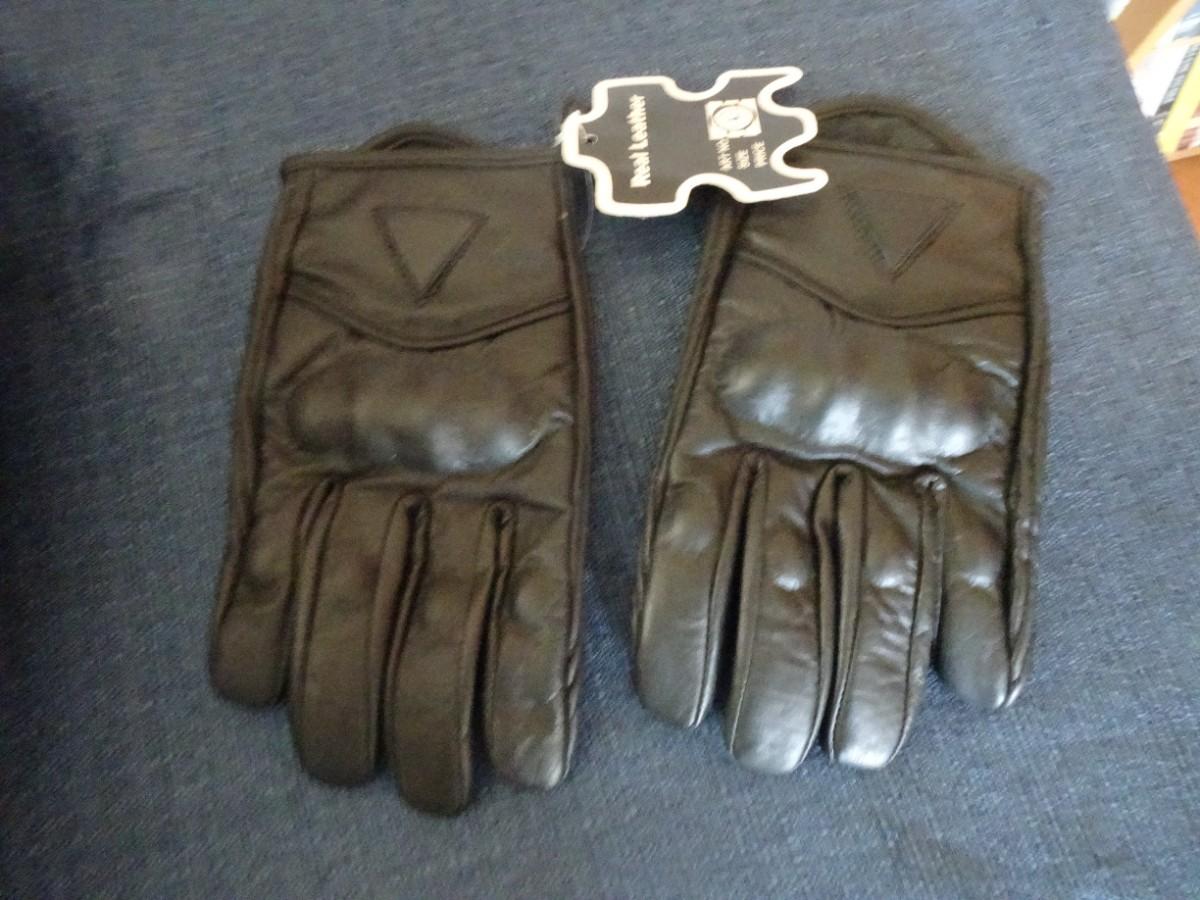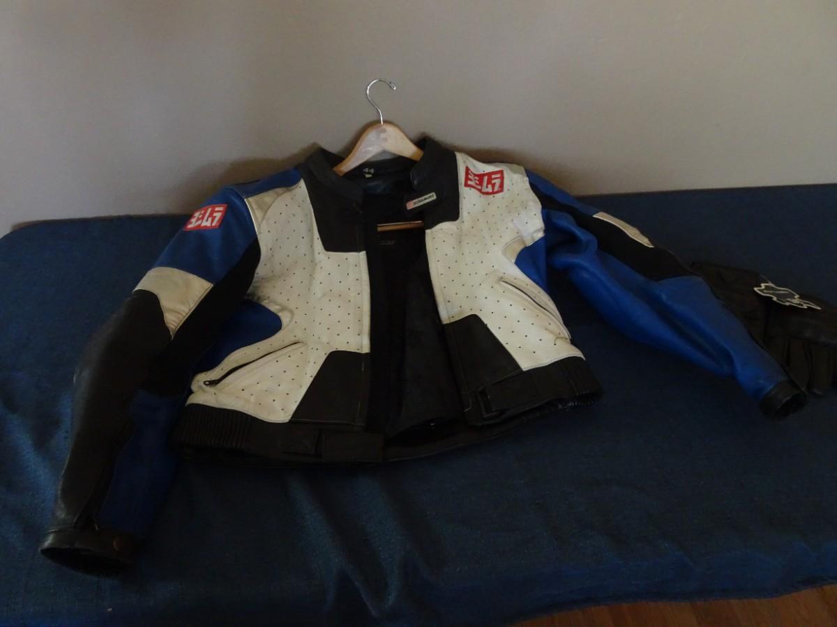 LOT 803. LEATHER MOTORCYCLE JACKET AND GLOVES