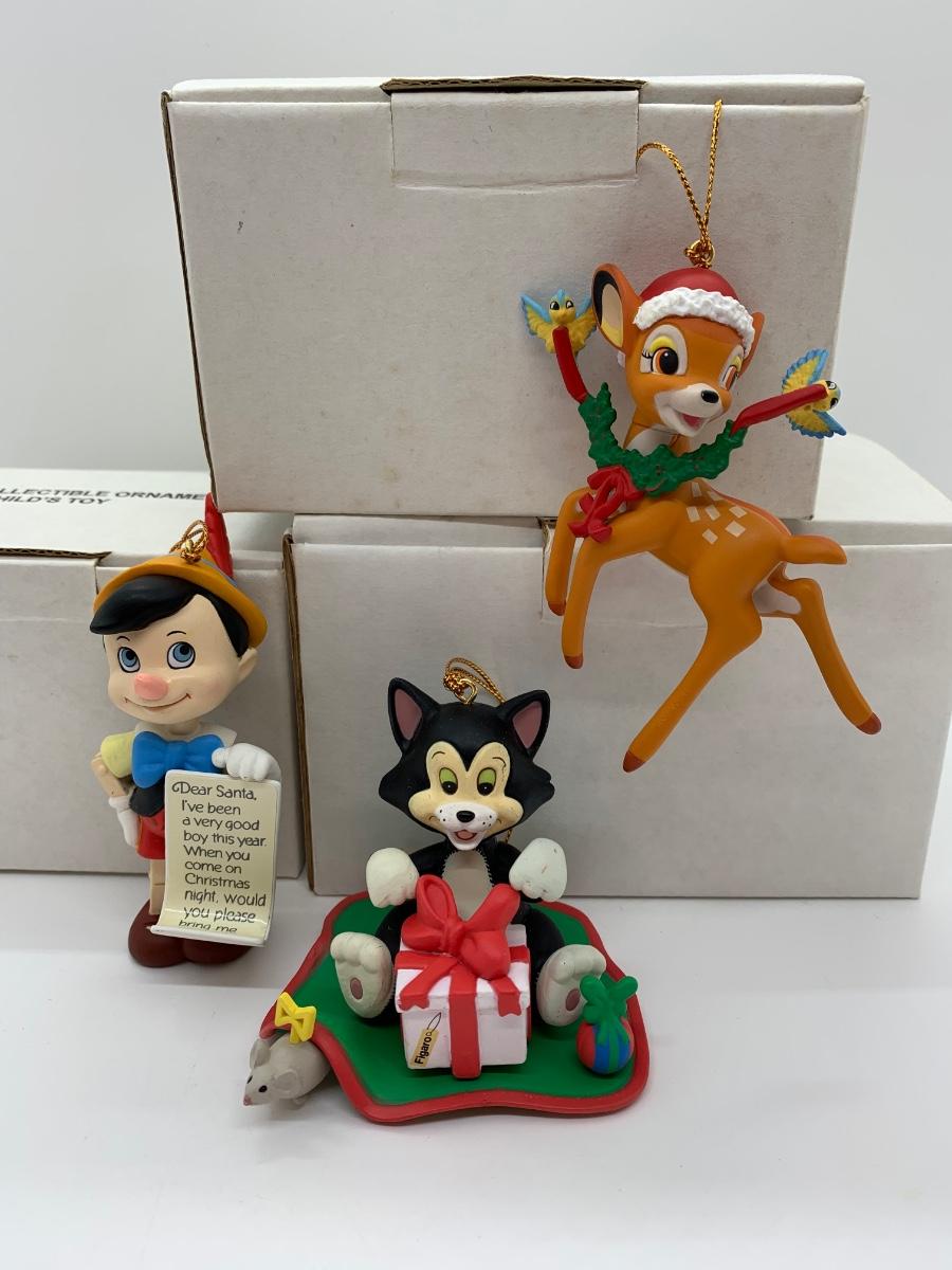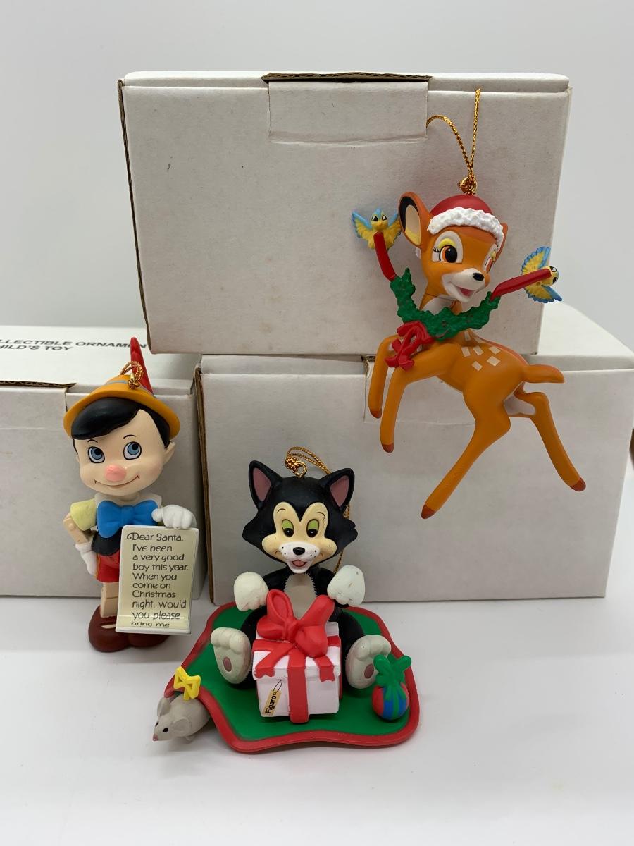 LOT 7: Christmas Magic Disney Ornaments: Bambi, Pinocchio & Figaro