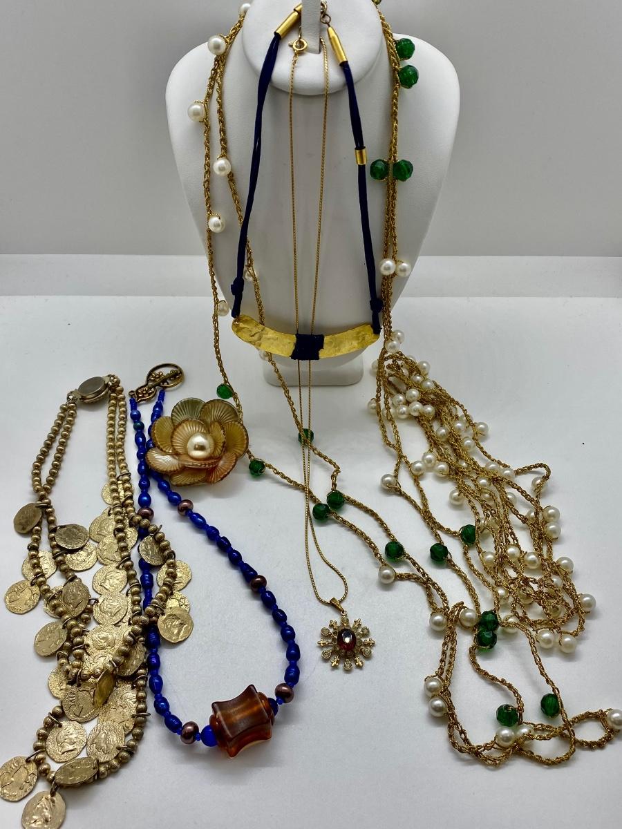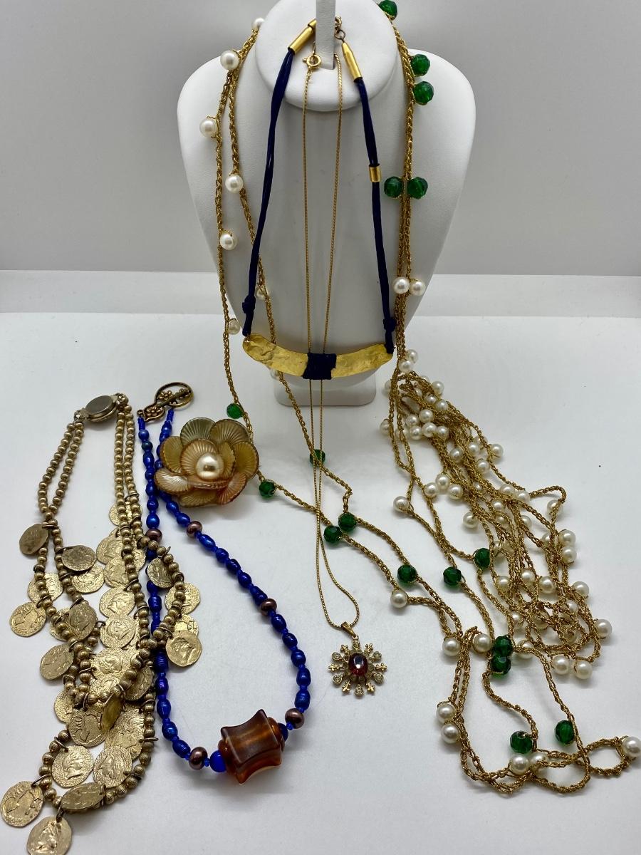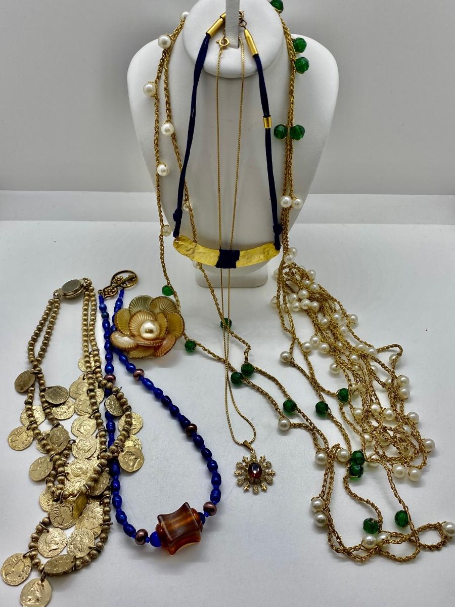 LOT 46 Large Collection of Vintage Goldtone Necklaces, Pendant, Earrings, Etc