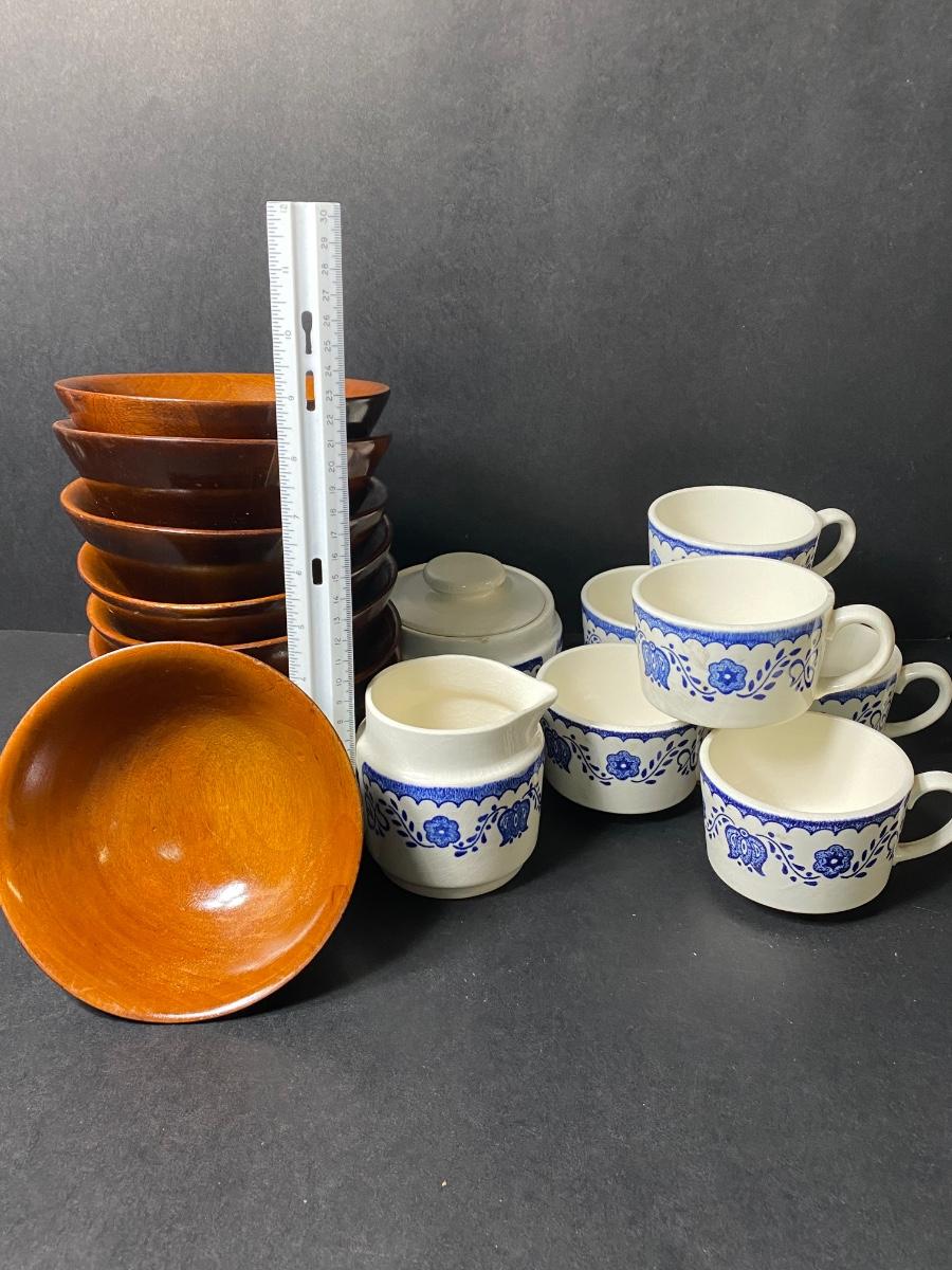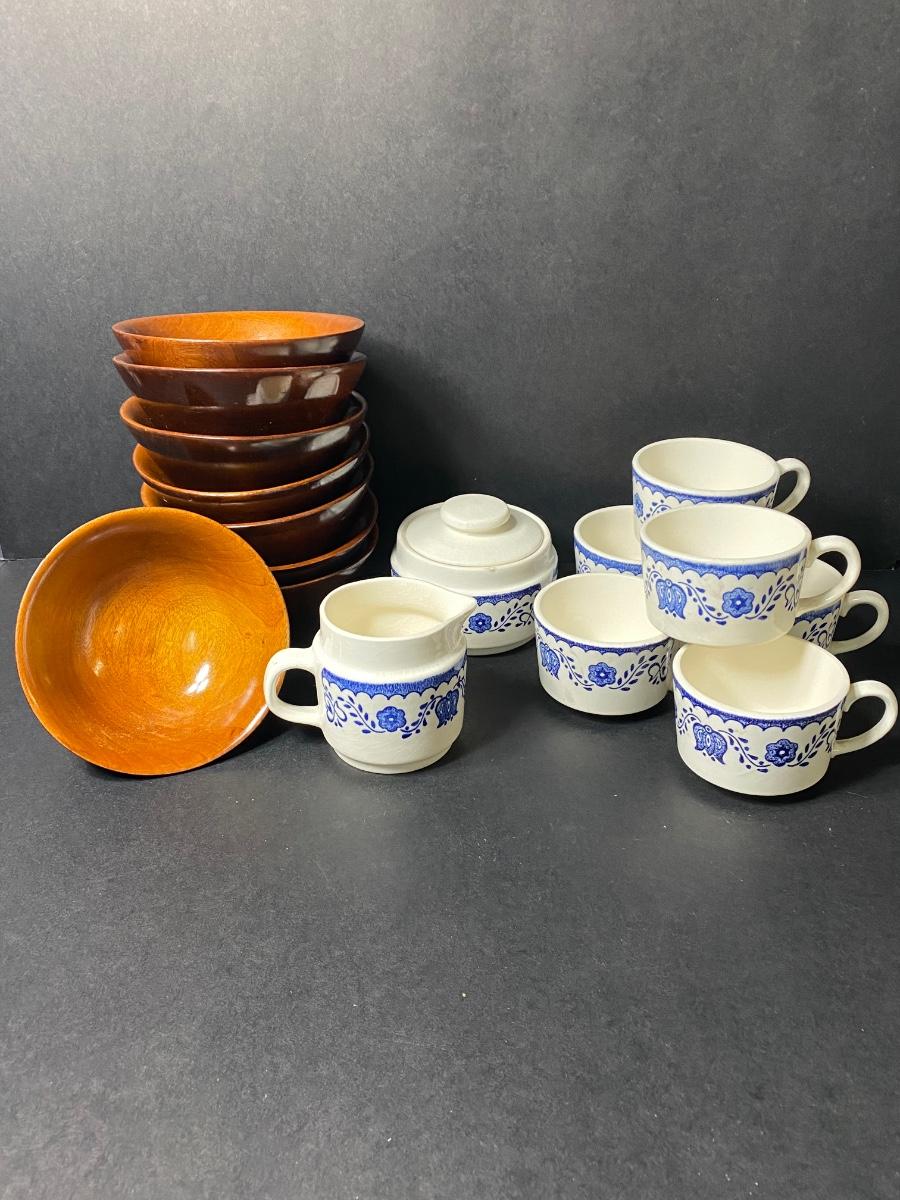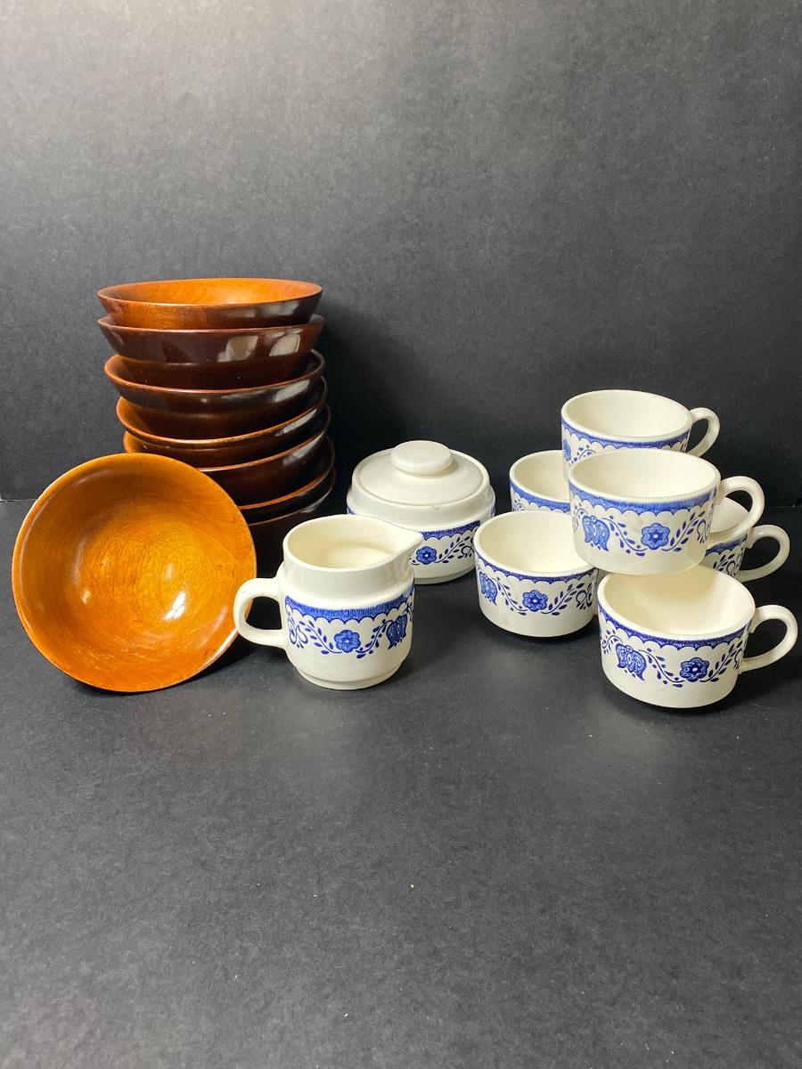 LOT 60: Vintage USA Made Cups & 8 New Wooden Salad Bowls