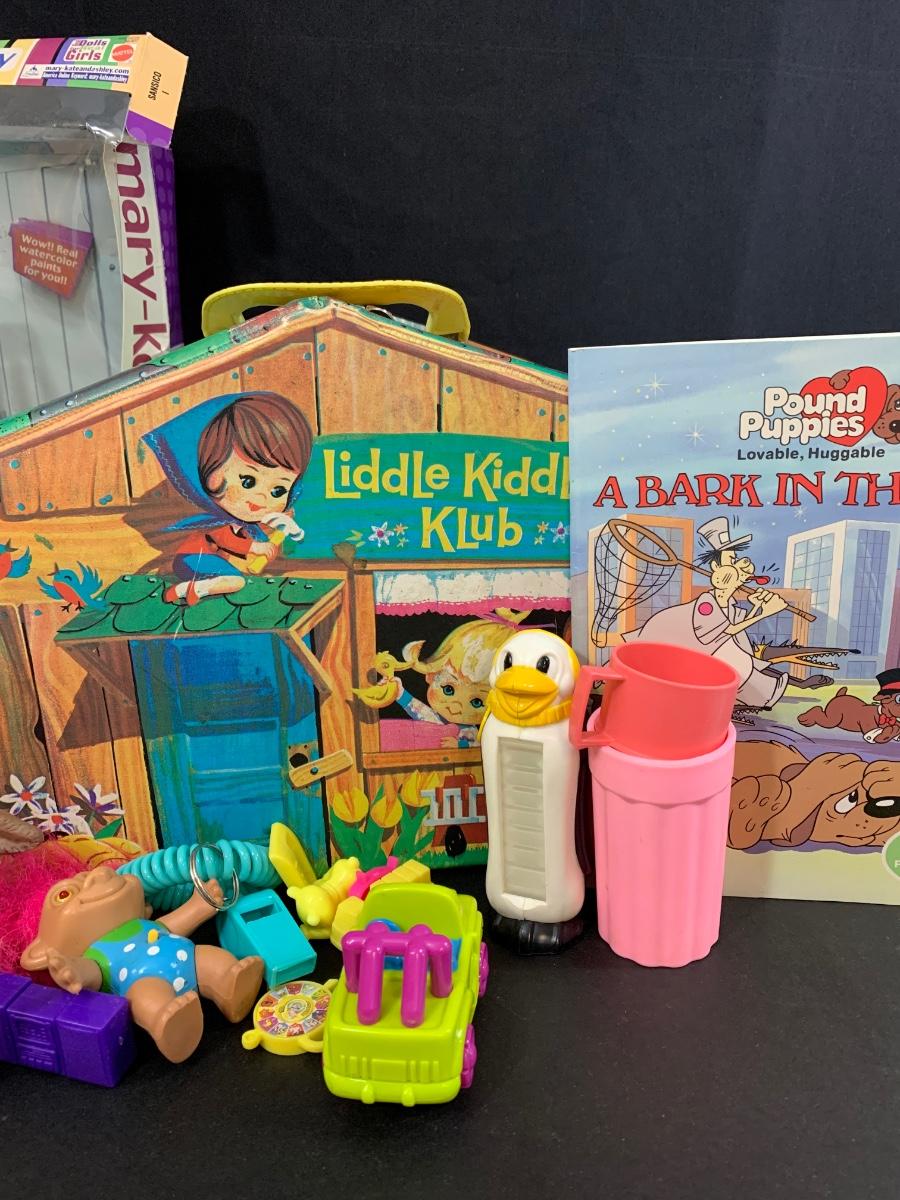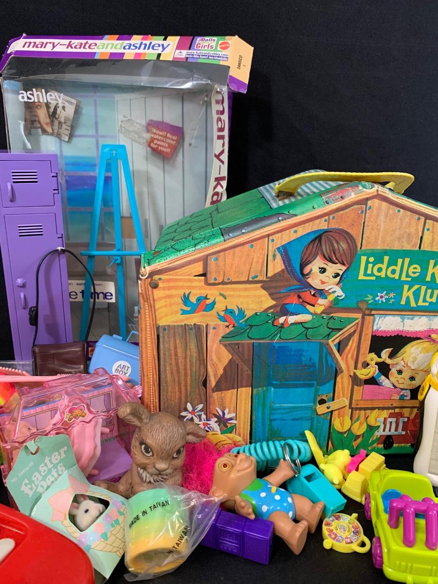LOT71R: Little Kiddles Klub Playcase, Mary Kate/Ashley Doll Accessories, Pound Puppy Book & More