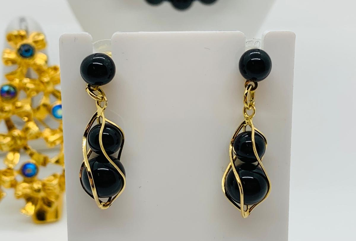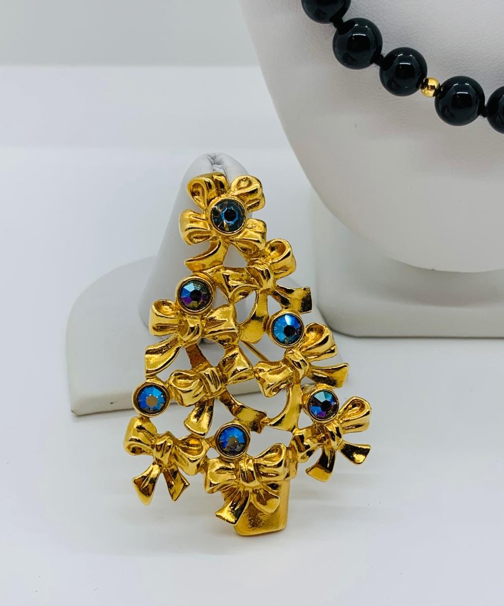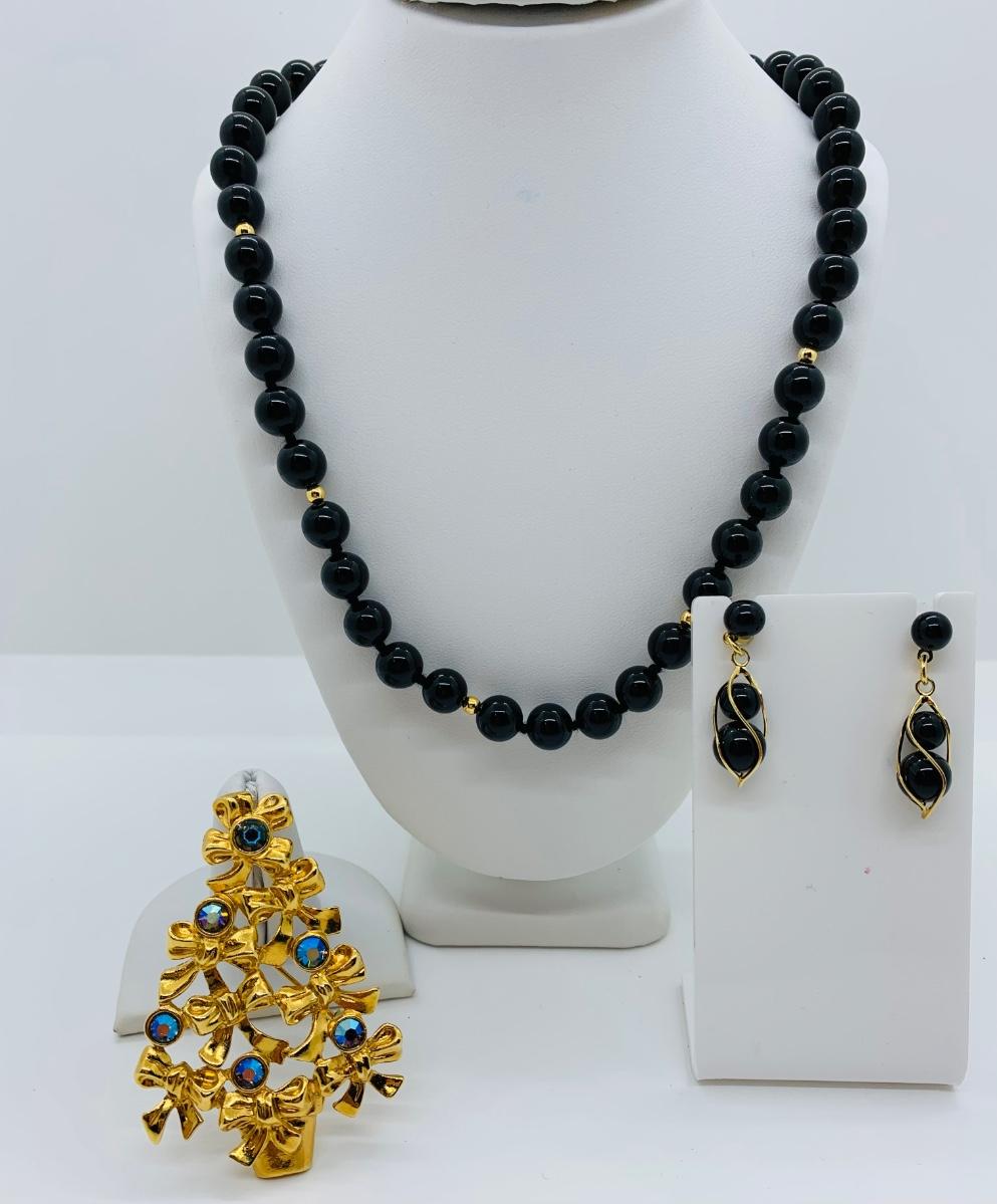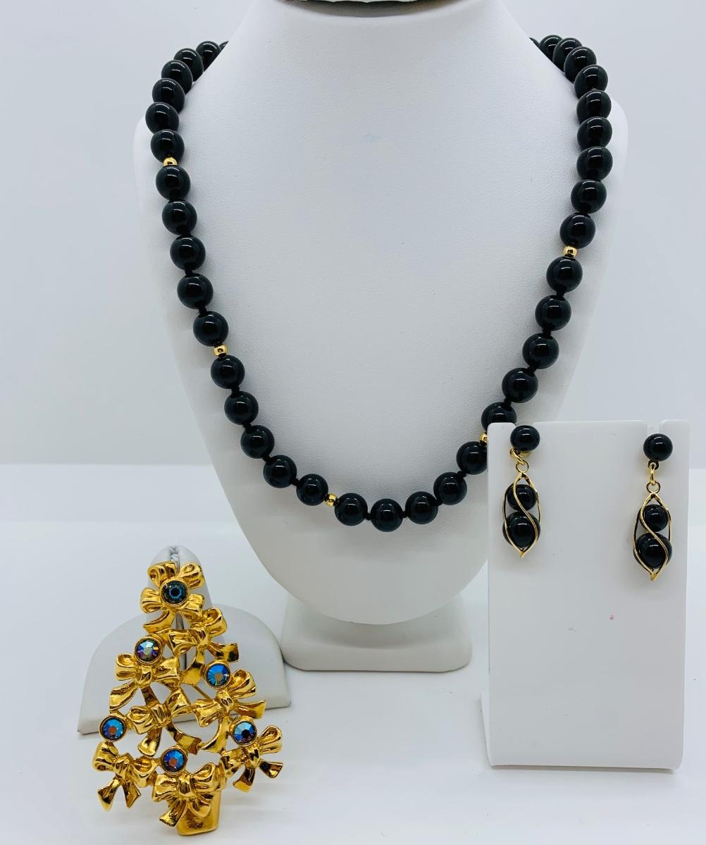 LOT 72R: Avon Christmas Brooch, Beaded Necklace & Dangle Pierced Earrings
