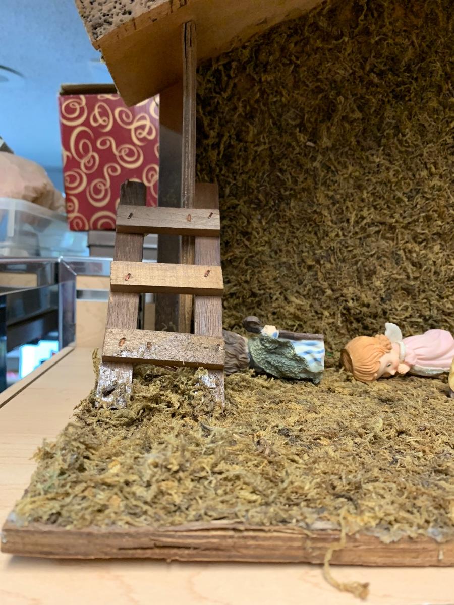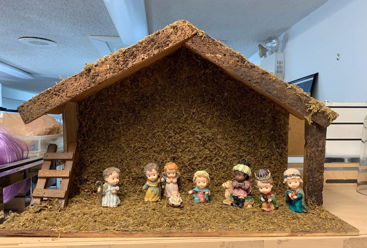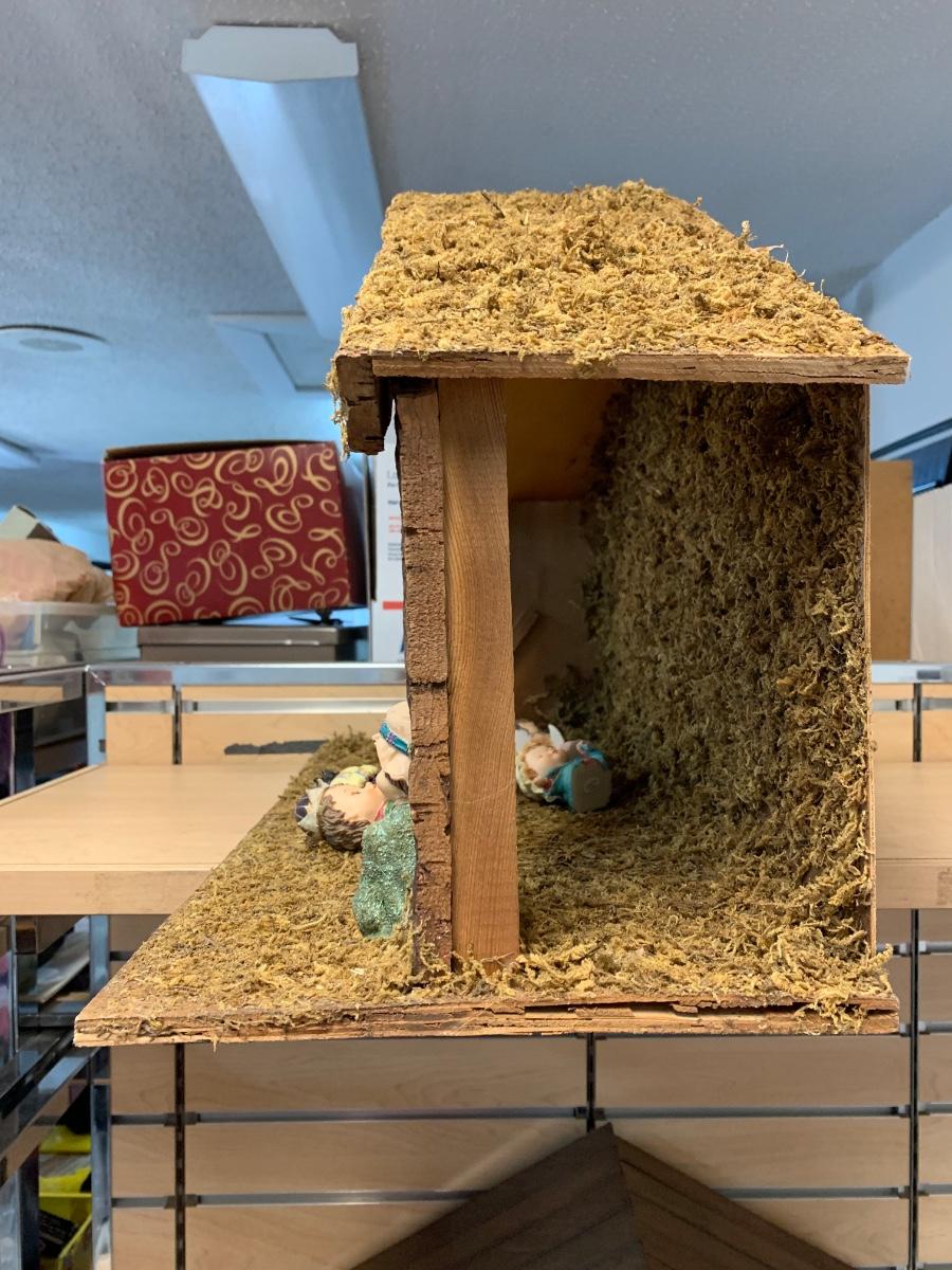 LOT 81R: Nativity Set and Large Moss Covered Stable/Manger