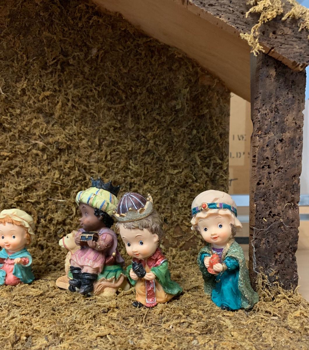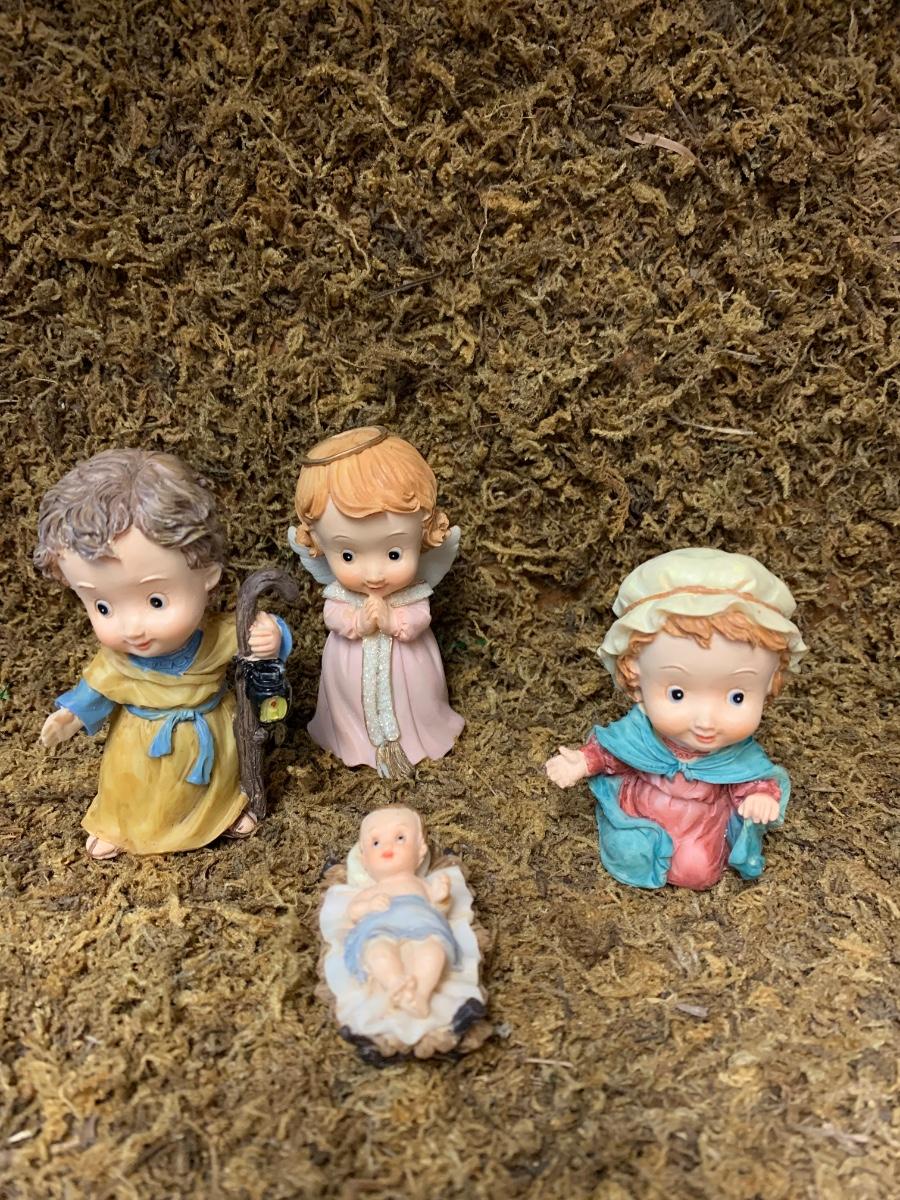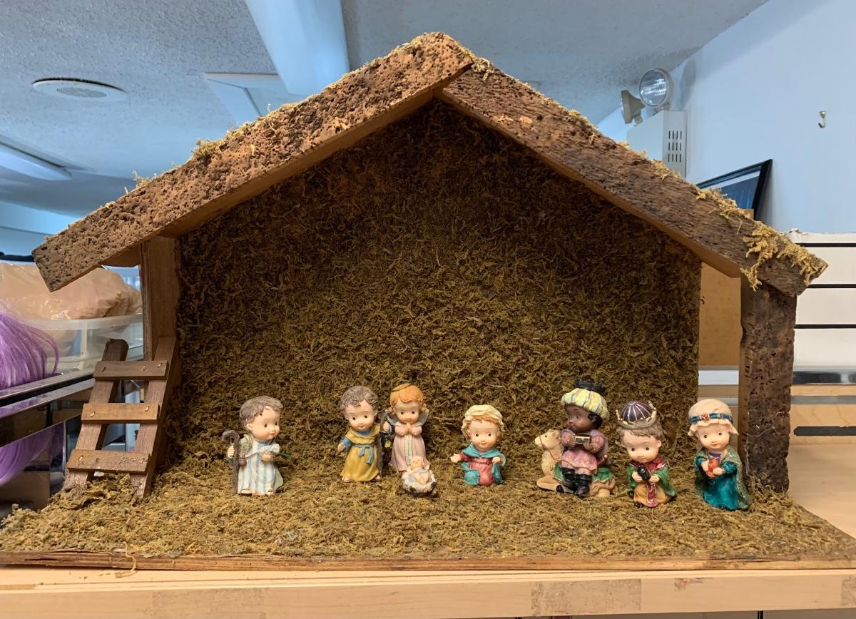 LOT 81R: Nativity Set and Large Moss Covered Stable/Manger