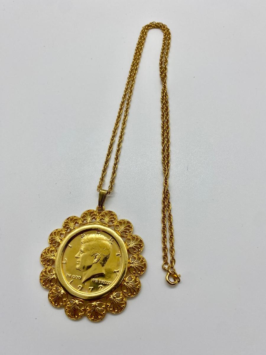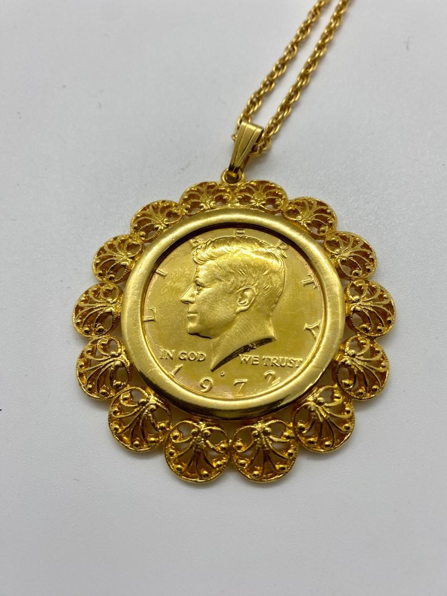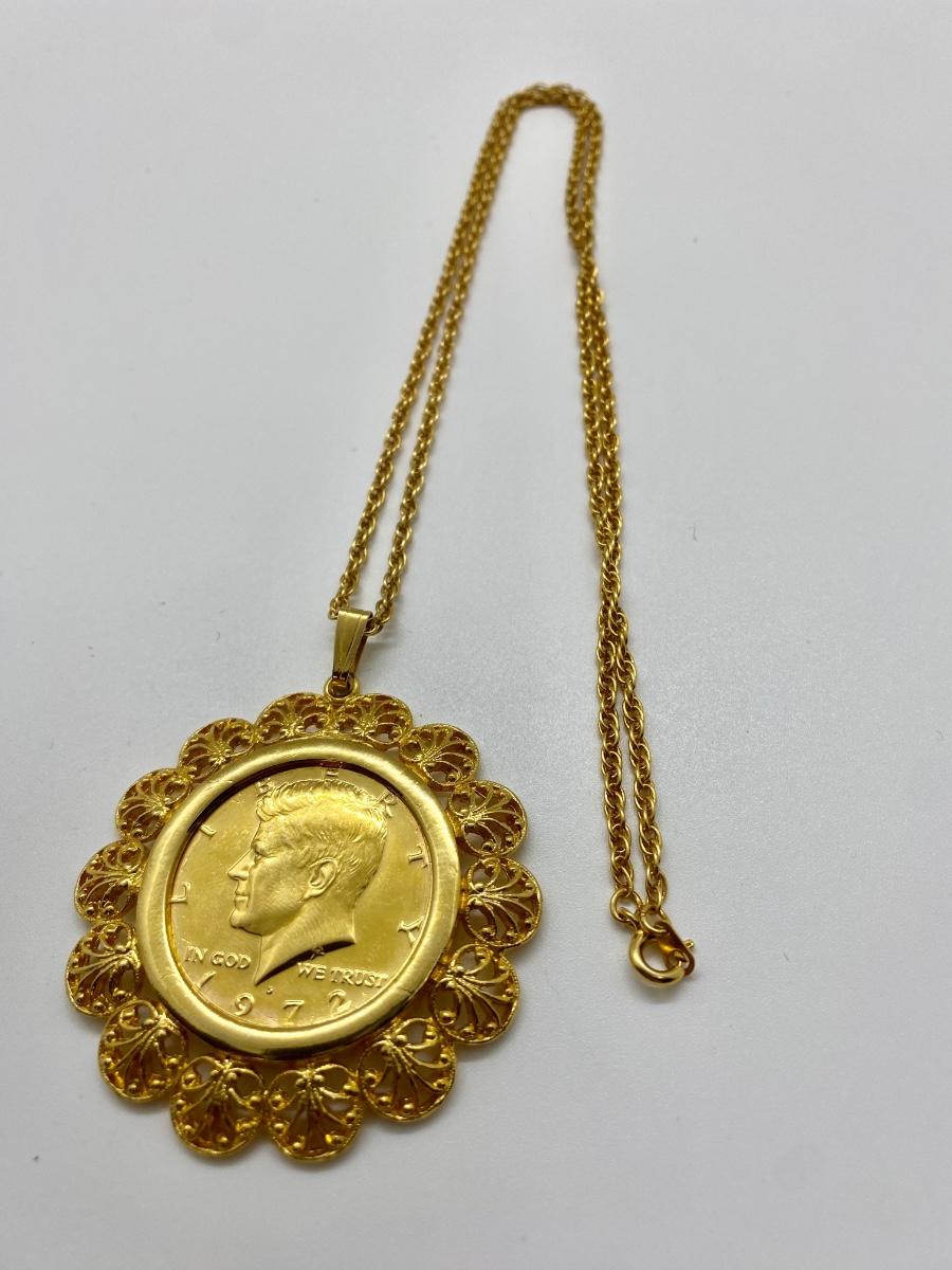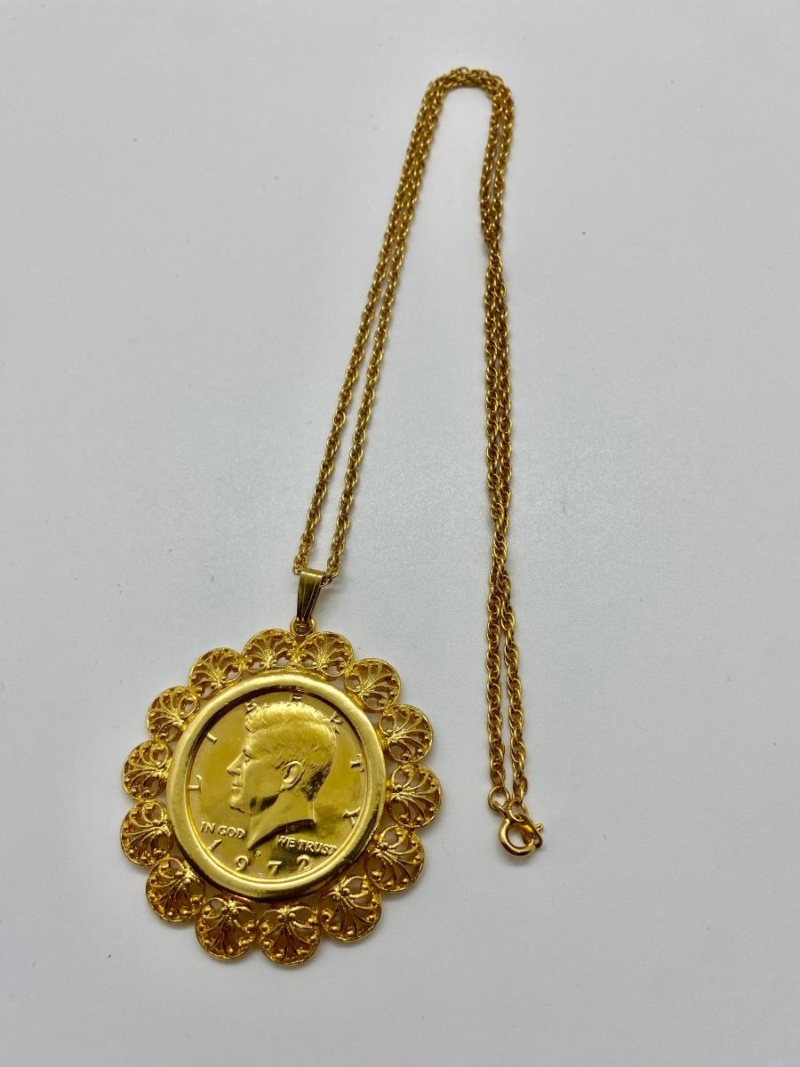 LOT 110: 1972 Gold Vermeil Silver Dollar Pendant