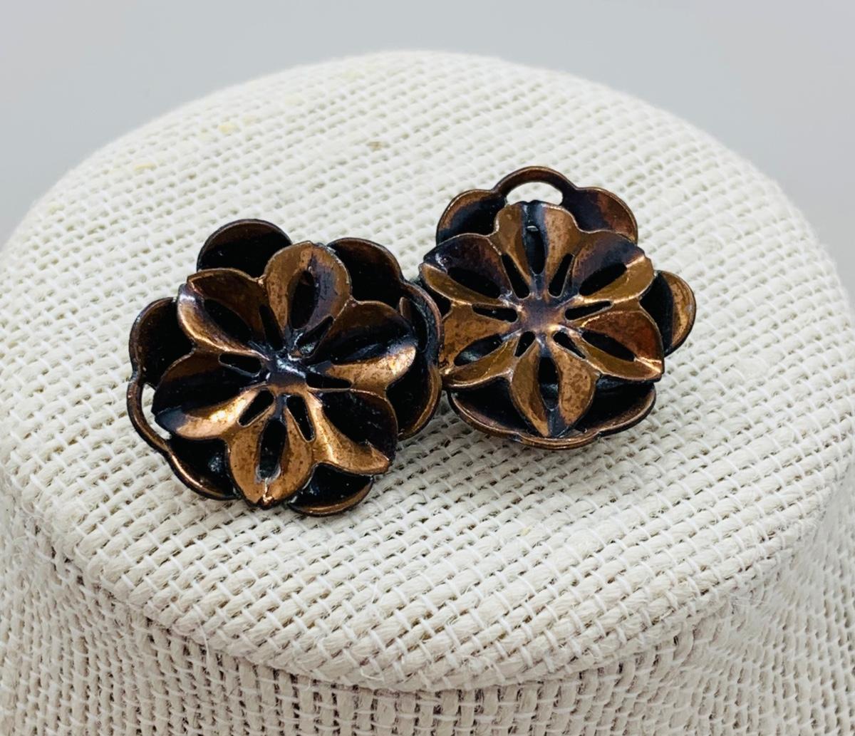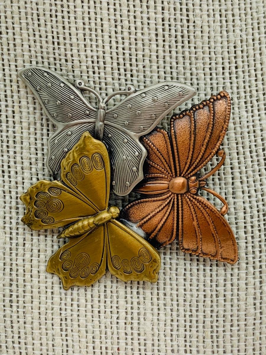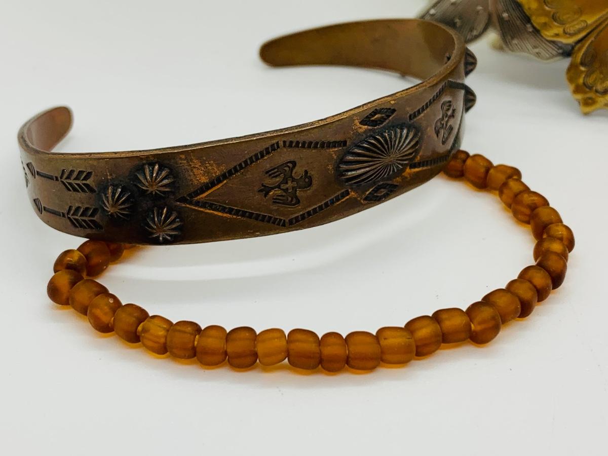 LOT 112R: Copper & Tri Color Necklace, Clip Earrings & Cuff Bracelet and Brooches
