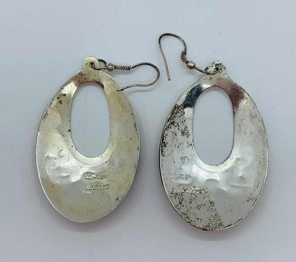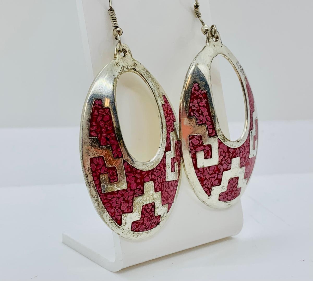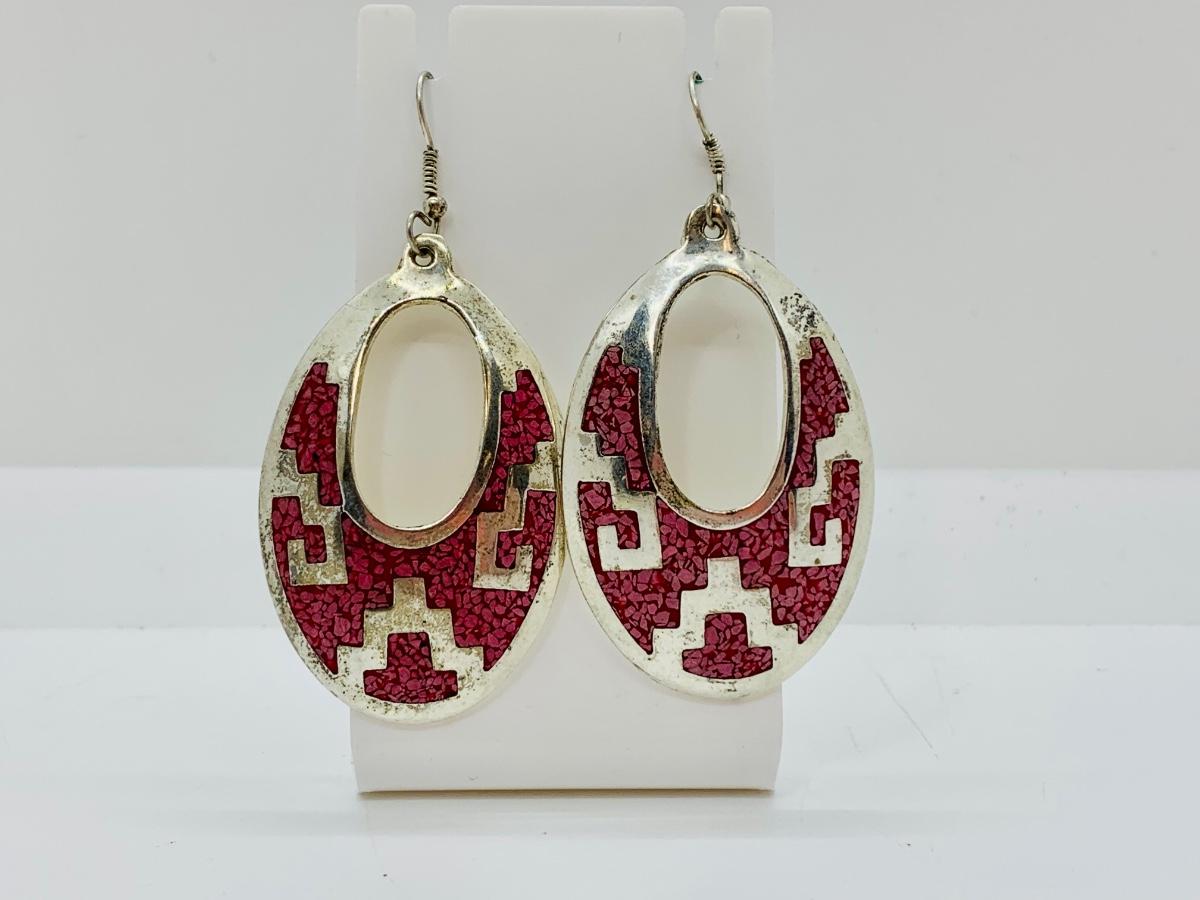 LOT 121R: Vintage 925 & Red Coral Dangle Pierced Earrings