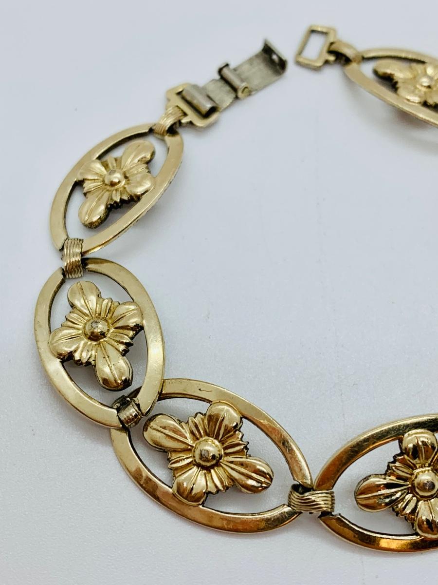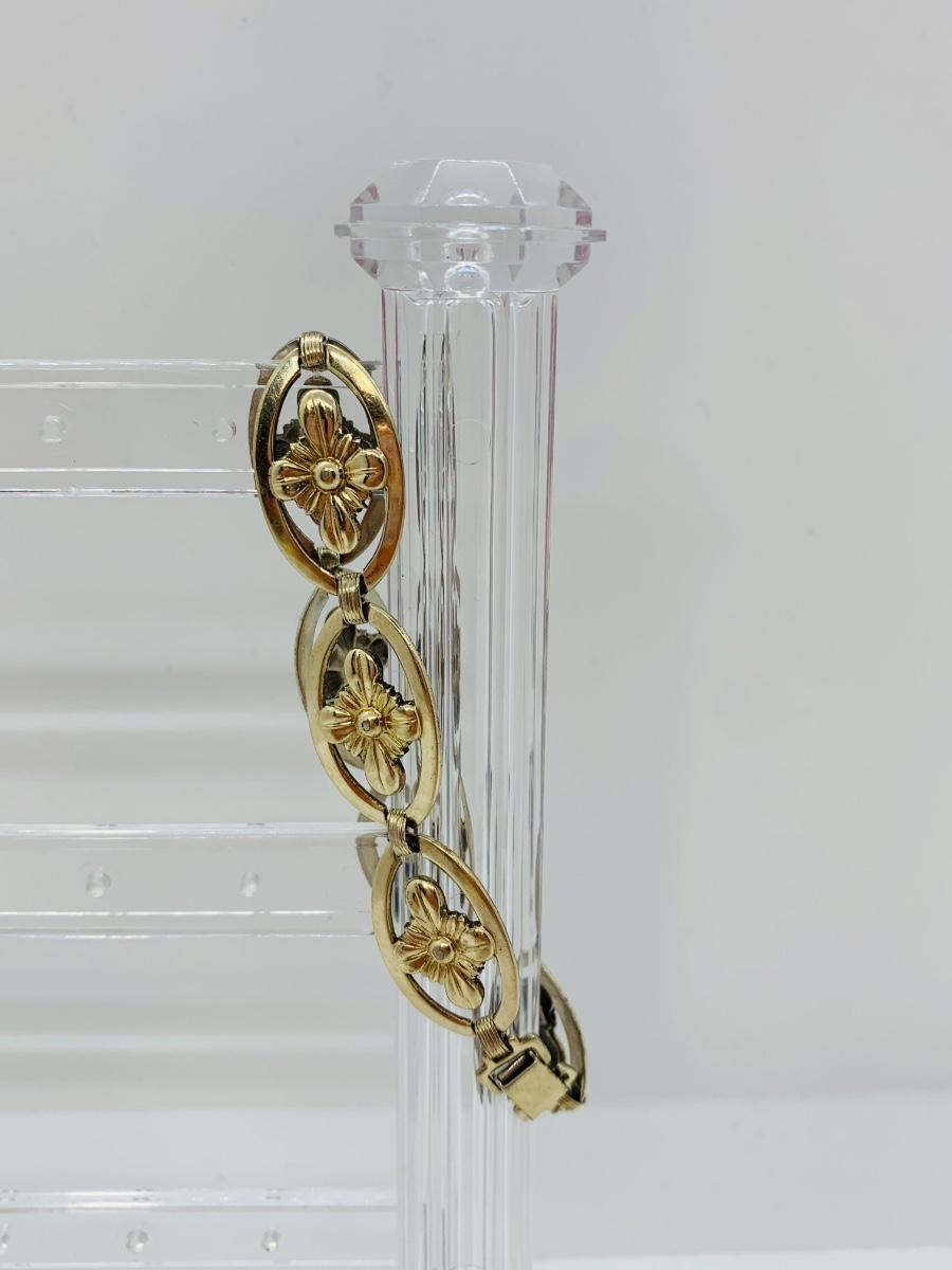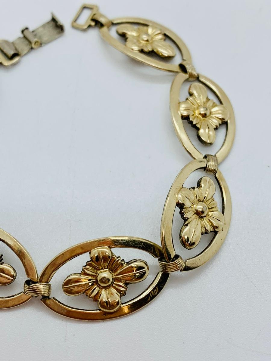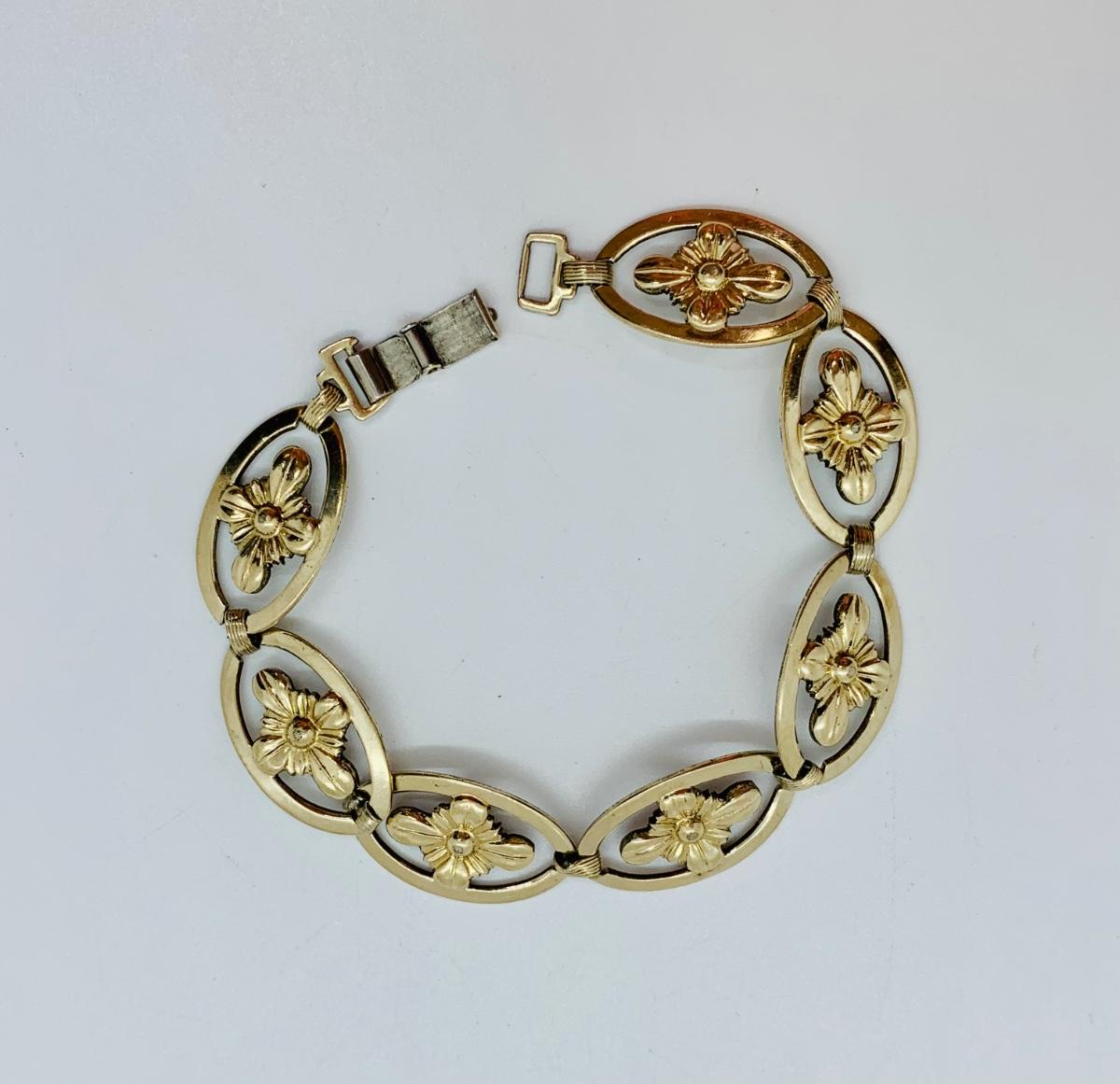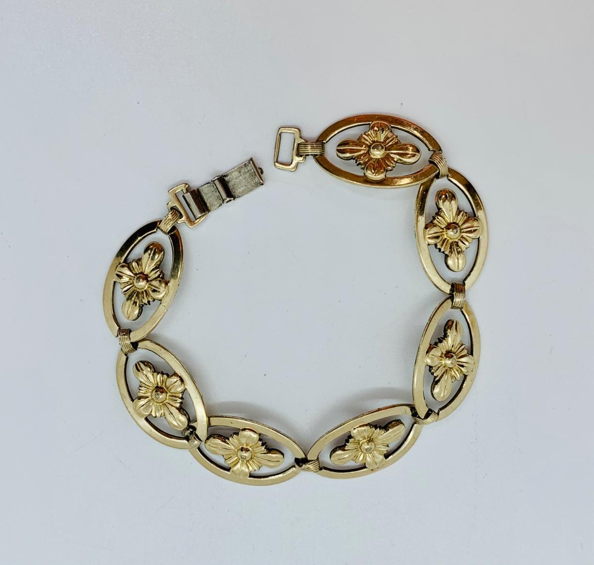 LOT 127R: Vintage Symmetalic Sterling & 14K Gold Floral Bracelet