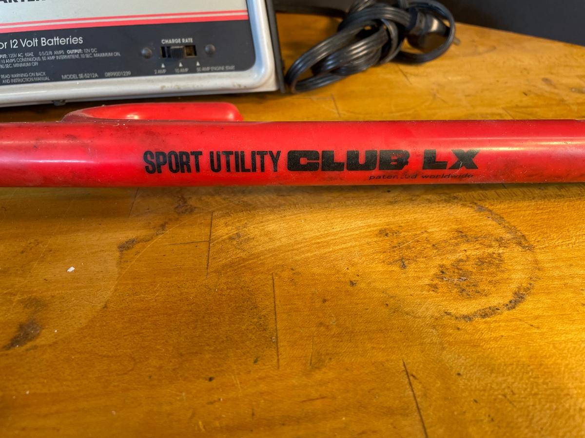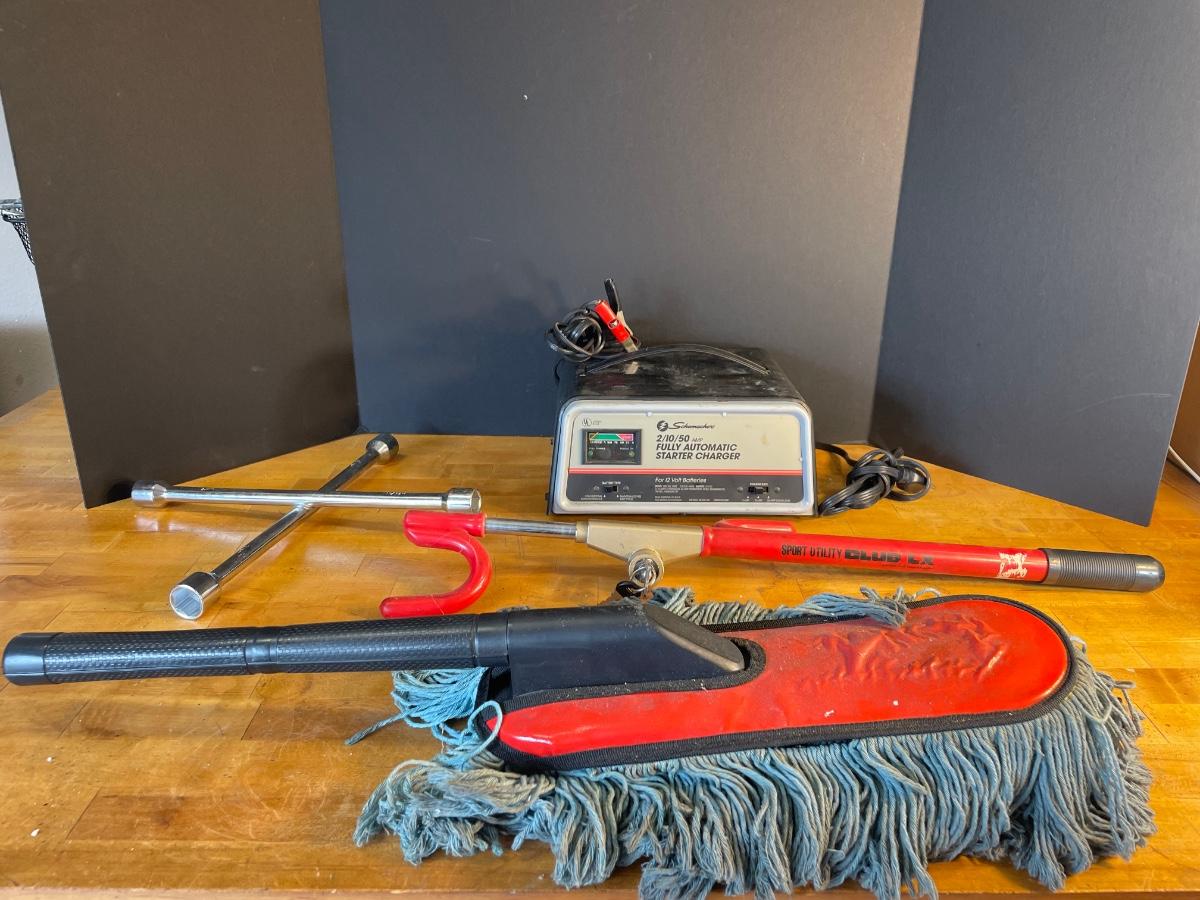 Car Starter/Charger, "CLUB LX" steering wheel lock, tire iron and car dust mop