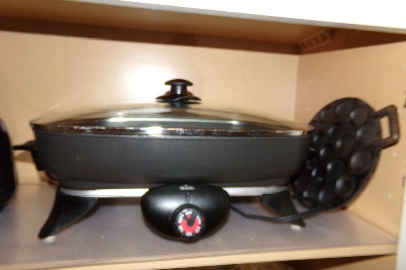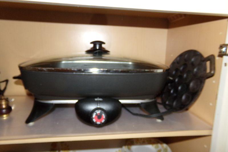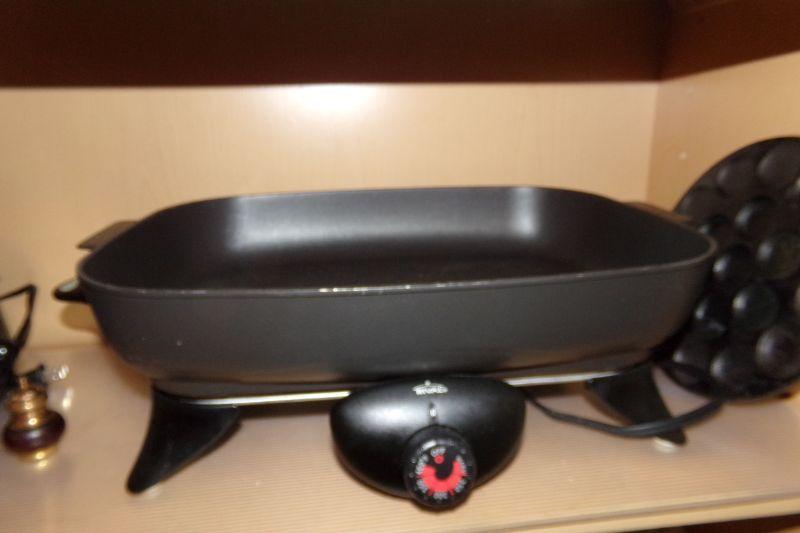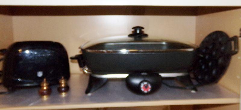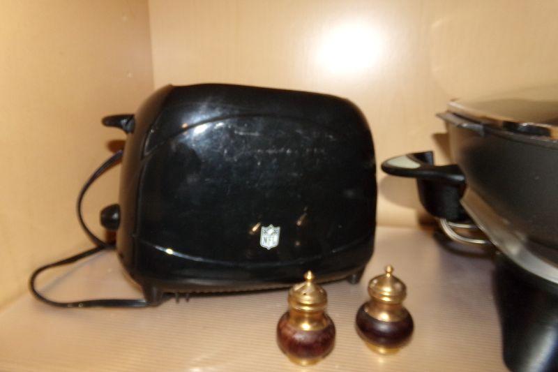 CAST IRON BAKING PAN, ELECTRIC FRYING PAN, TOASTER & SALT AND PEPPER SHAKERS
