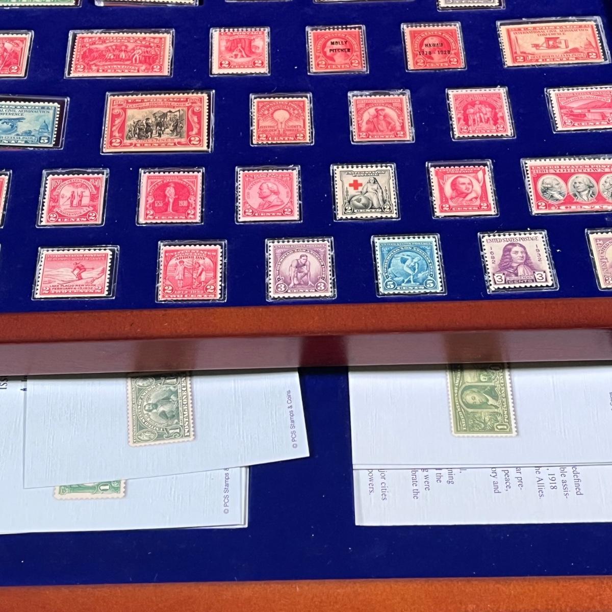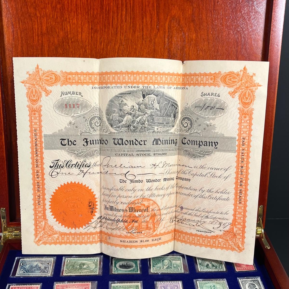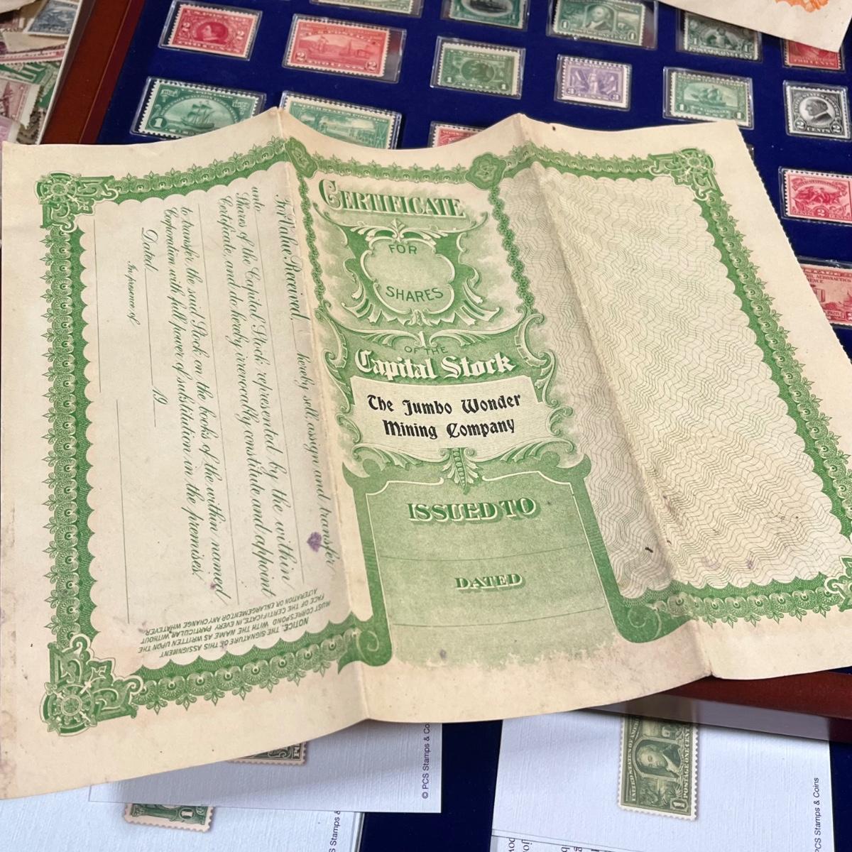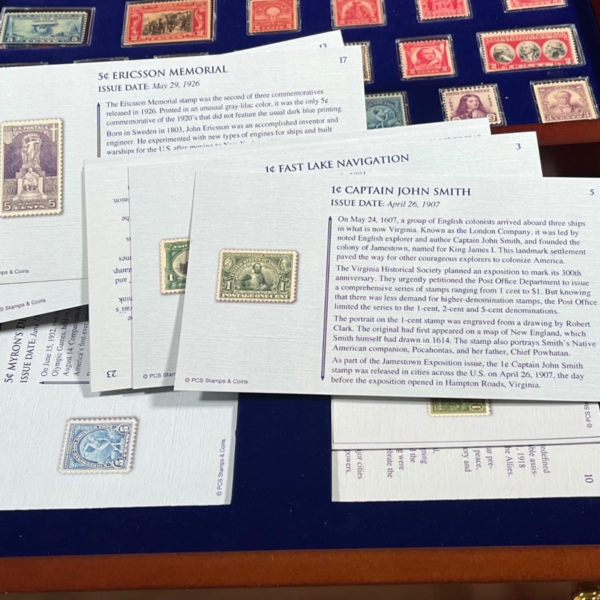 LOT 80D: The First U.S. Commemorative Stamp Issues Set in Case + More Stamps and Antique Stock Certificates