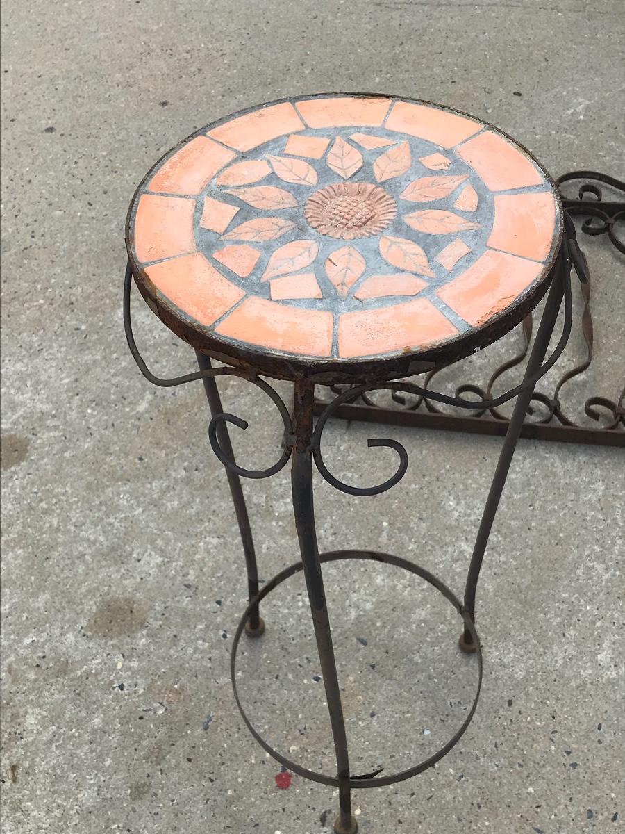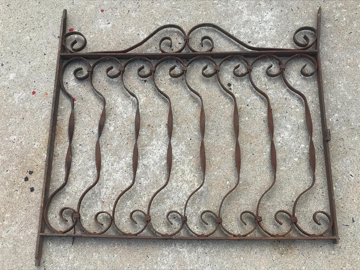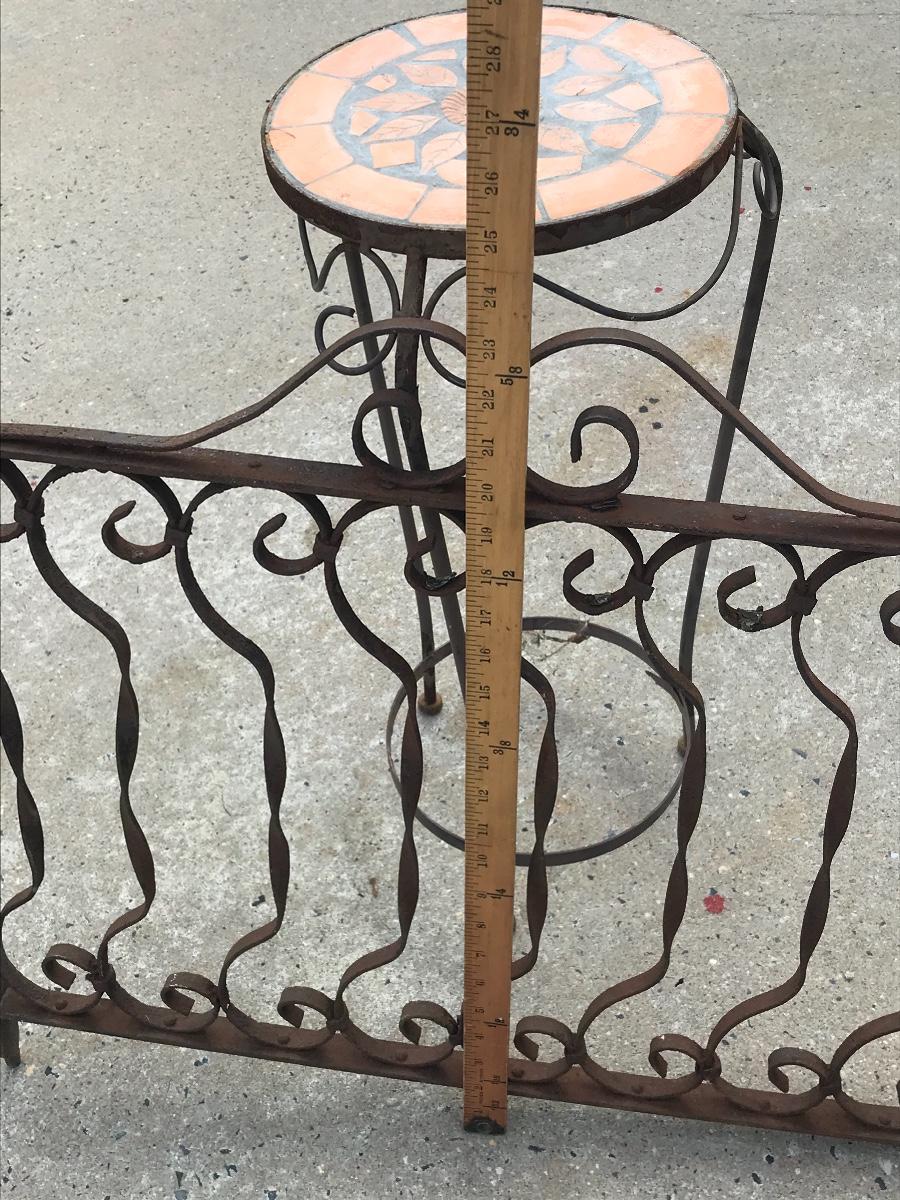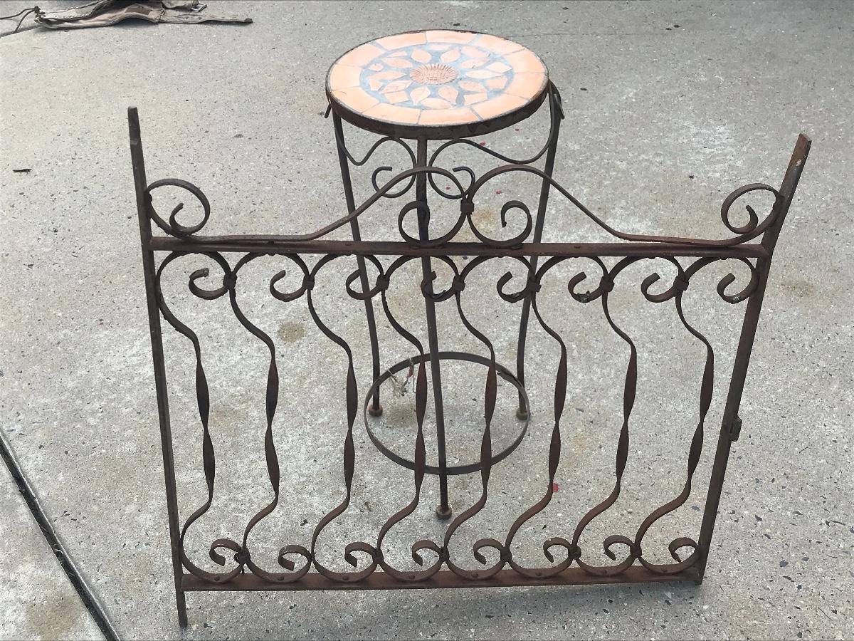 Victorian style, wrought iron, antique gate. Rusty. Also a tile top table with metal bottom. Please see all pictures for content of the lot, condition of the lot, and measurements if taken. Pictures are the best representation of the items listed and items are untested unless indicated in description. Thank you for looking and have fun bidding!