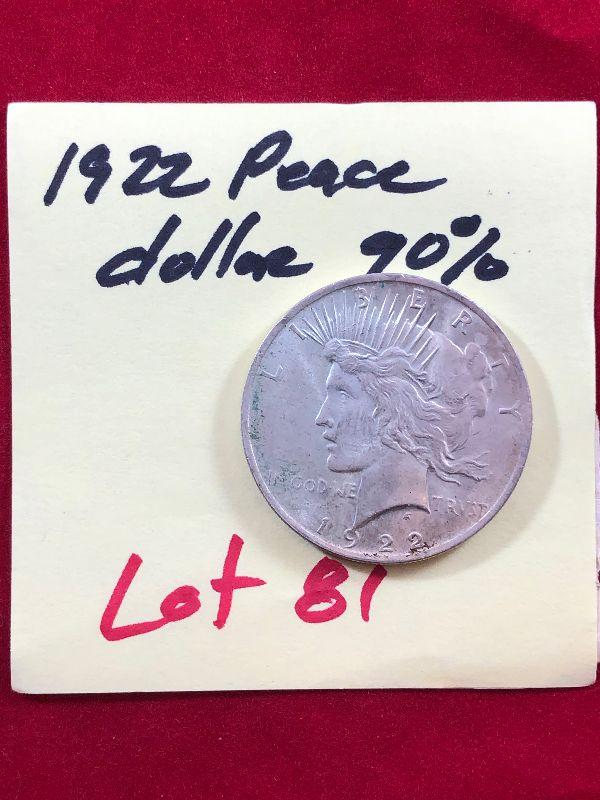 Lot #81- 1922 Peace Dollar $1 90% Silver Coin