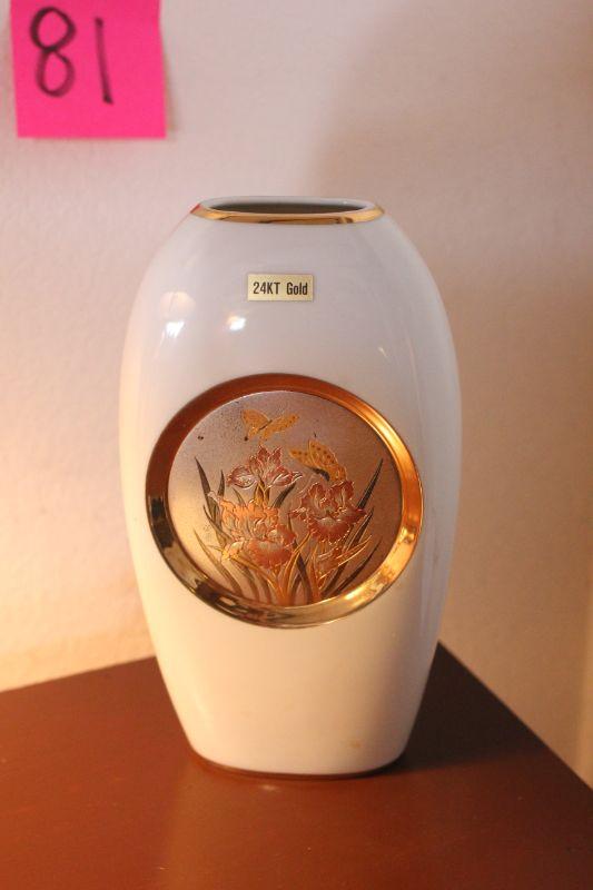 Lot 81 24K Gold Edged Art of Chokin Vase 10"
