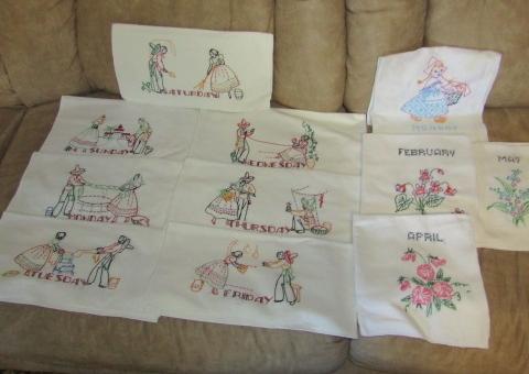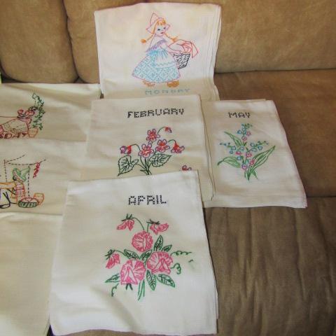 LOT 81 FLOUR SACK EMBROIDERED DISH TOWELS