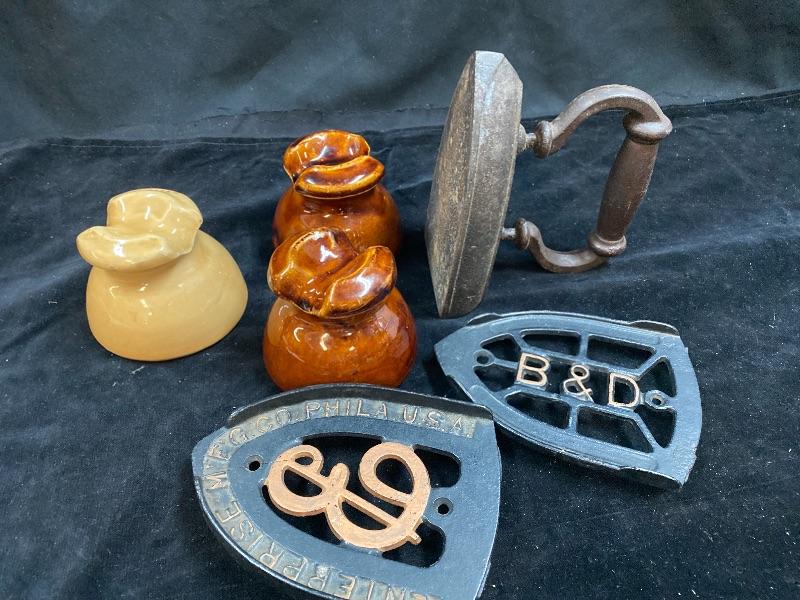 Lot #81 Ceramic Insulators and Cast Iron Iron Parts