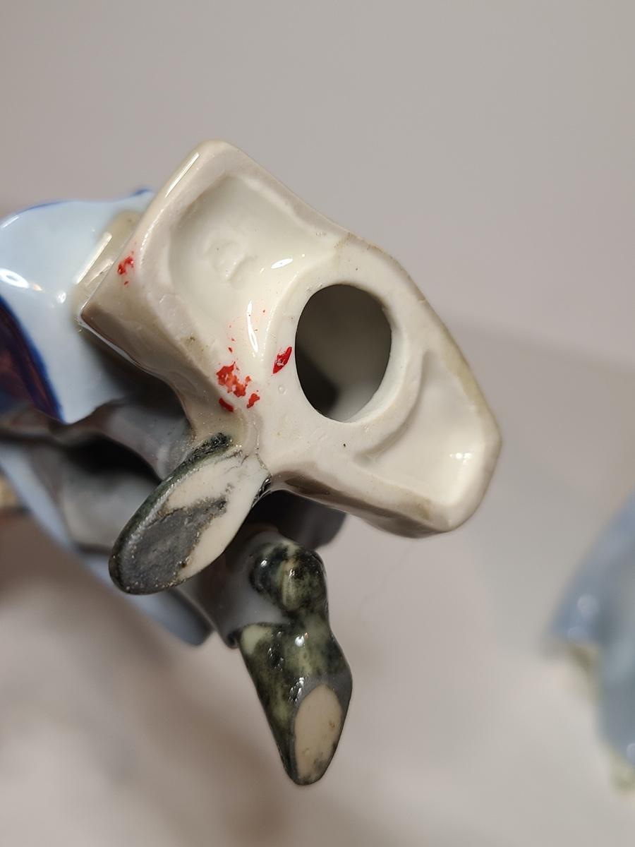Lovely figurines. Both marked, but by different makers. Gorgeous blues. These are small in size. Please see all pictures. The pictures show condition, measurements if taken, and what is included in the lot. Due to the large amount that we photograph and the time frame, we are not always able to take measurements. All items unless noted, are pre-owned and have been used. If you purchased furniture, you must bring help. We do not allow one person to carry large furniture out on their own. Bring help, tools and a truck for the safety of our client’s homes, and your personal safety. Company policy. Thank you