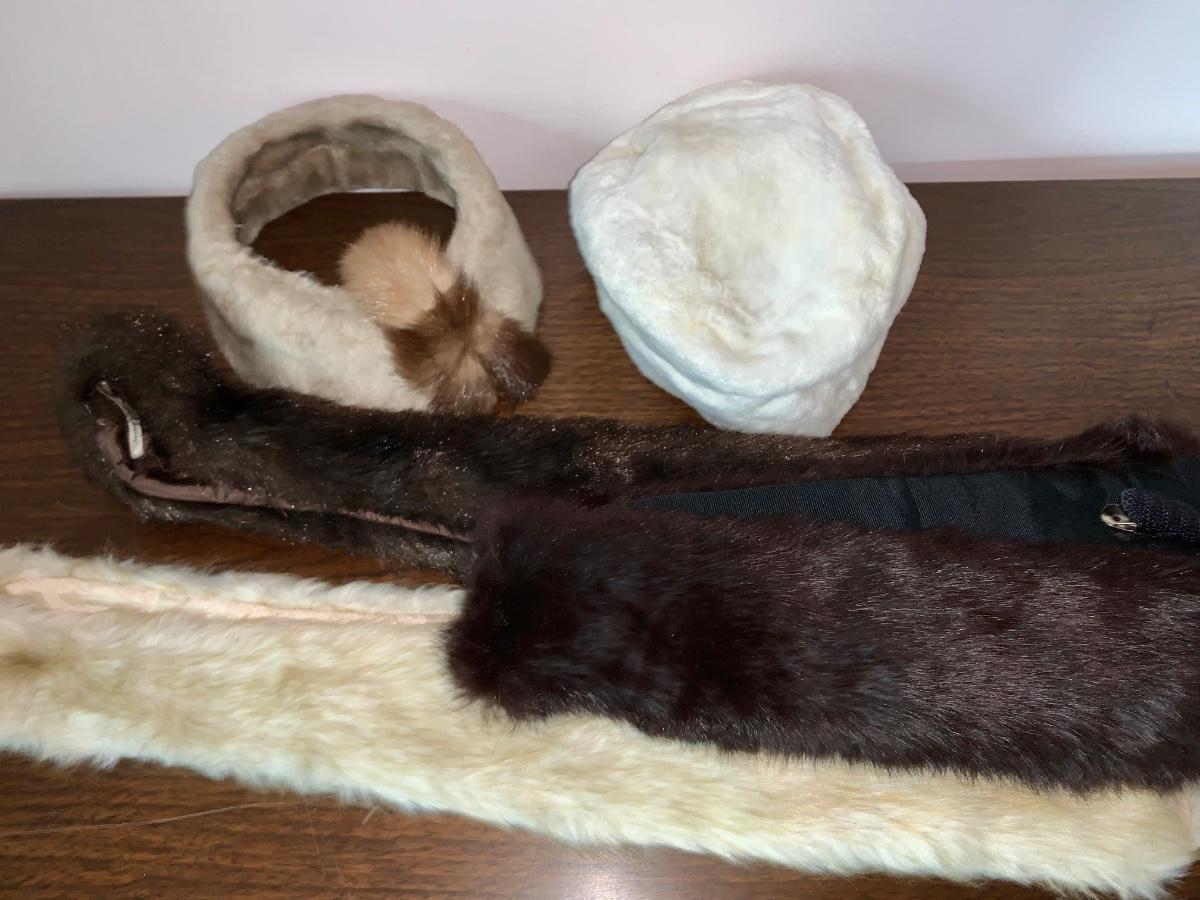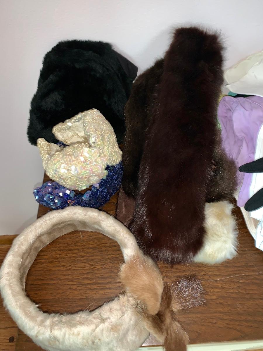 Lot 81: Vintage Fur Hats, Glove & Sequins Head Piece. (Large lot)