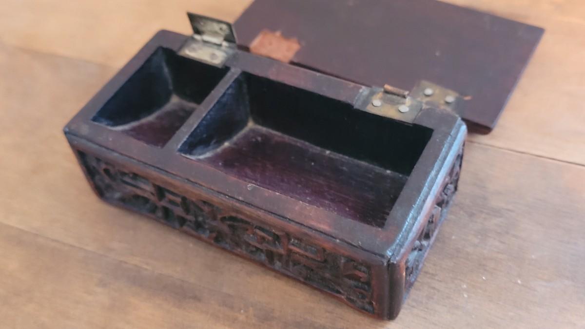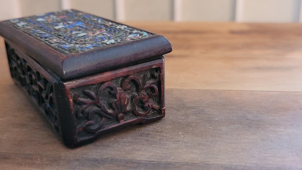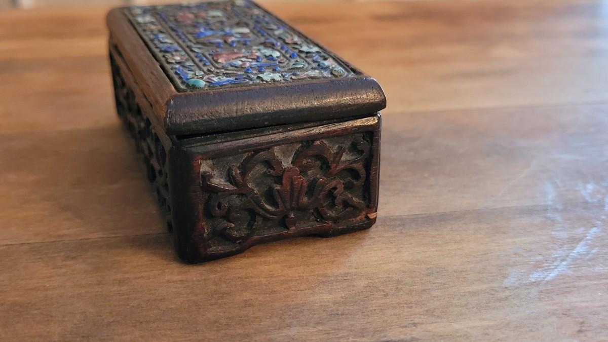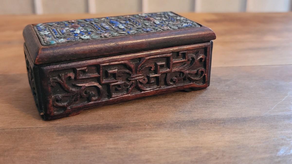 Lot 81: Antique Chinese Carved Wood & Enamel Box