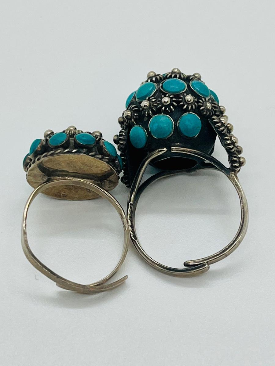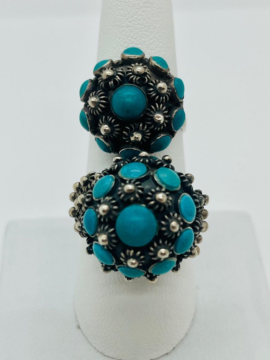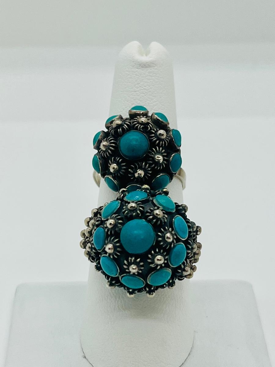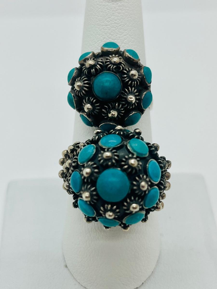 Lot 81: Art/Vintage Sterling w/ Turquoise Beads Adjustable Empress Rings
