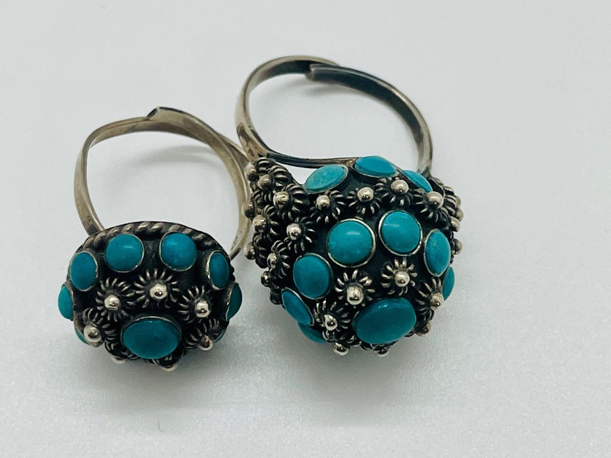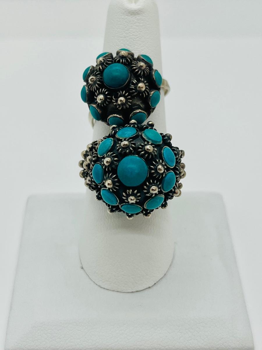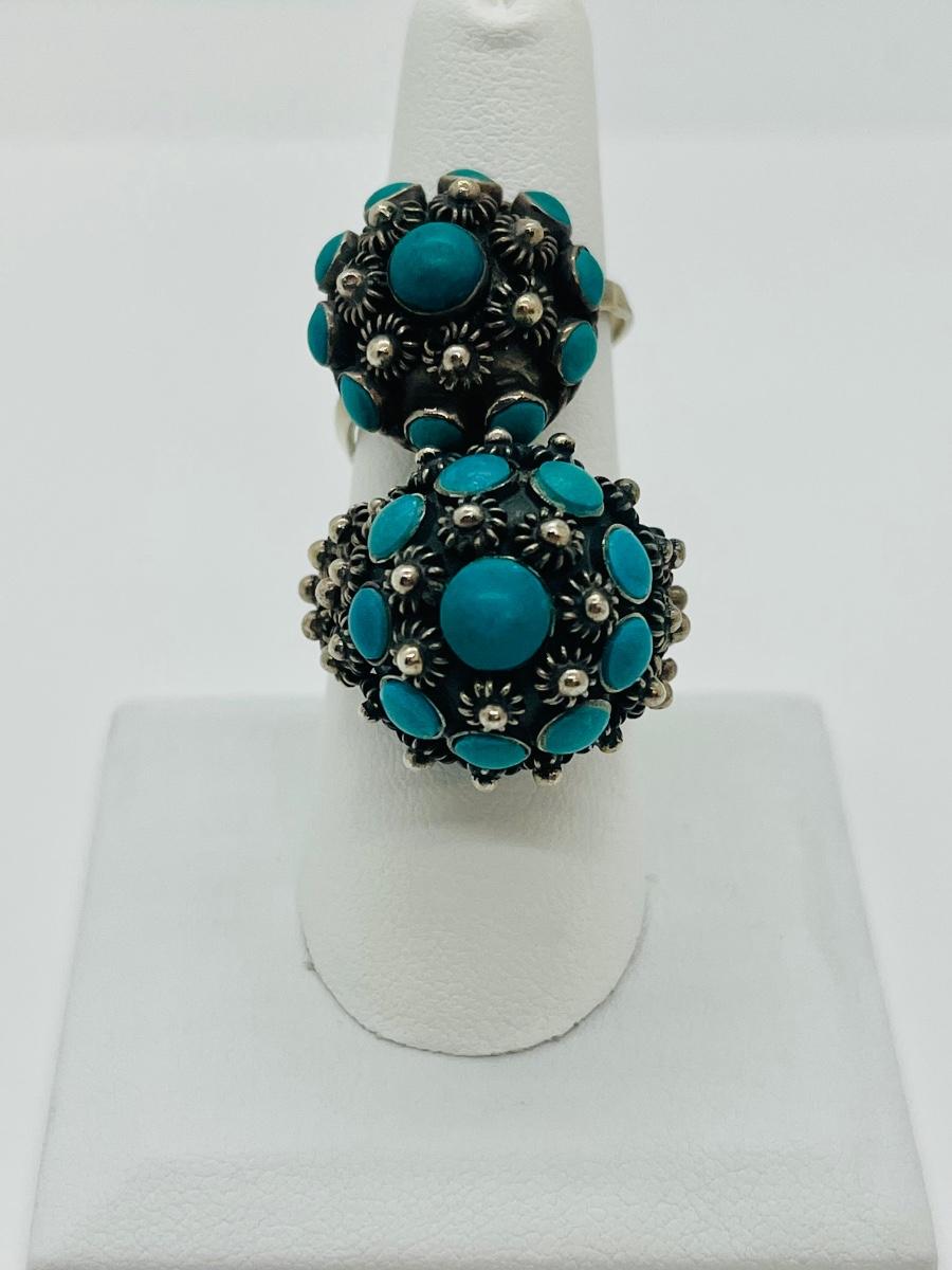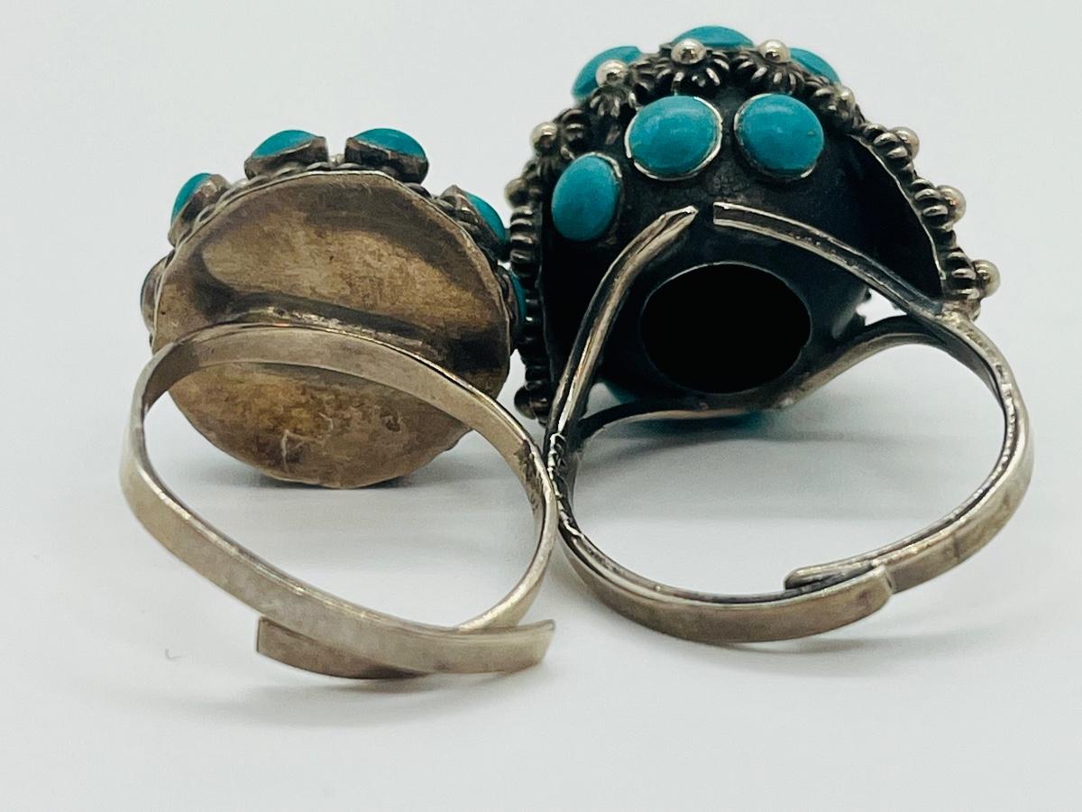 Lot 81: Art/Vintage Sterling w/ Turquoise Beads Adjustable Empress Rings