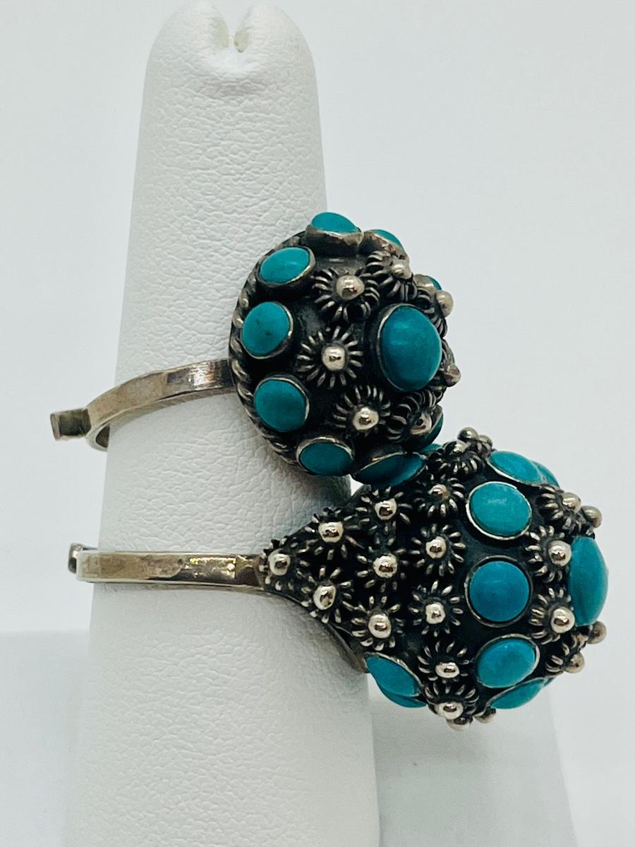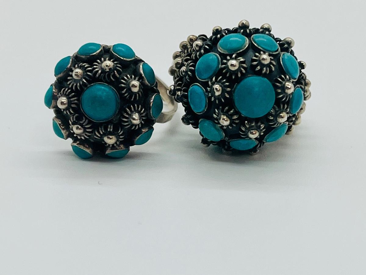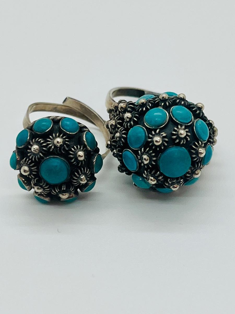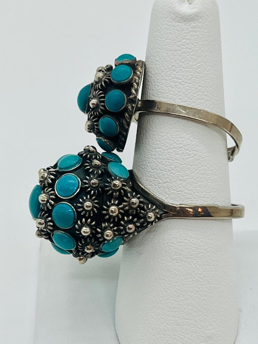 Lot 81: Art/Vintage Sterling w/ Turquoise Beads Adjustable Empress Rings