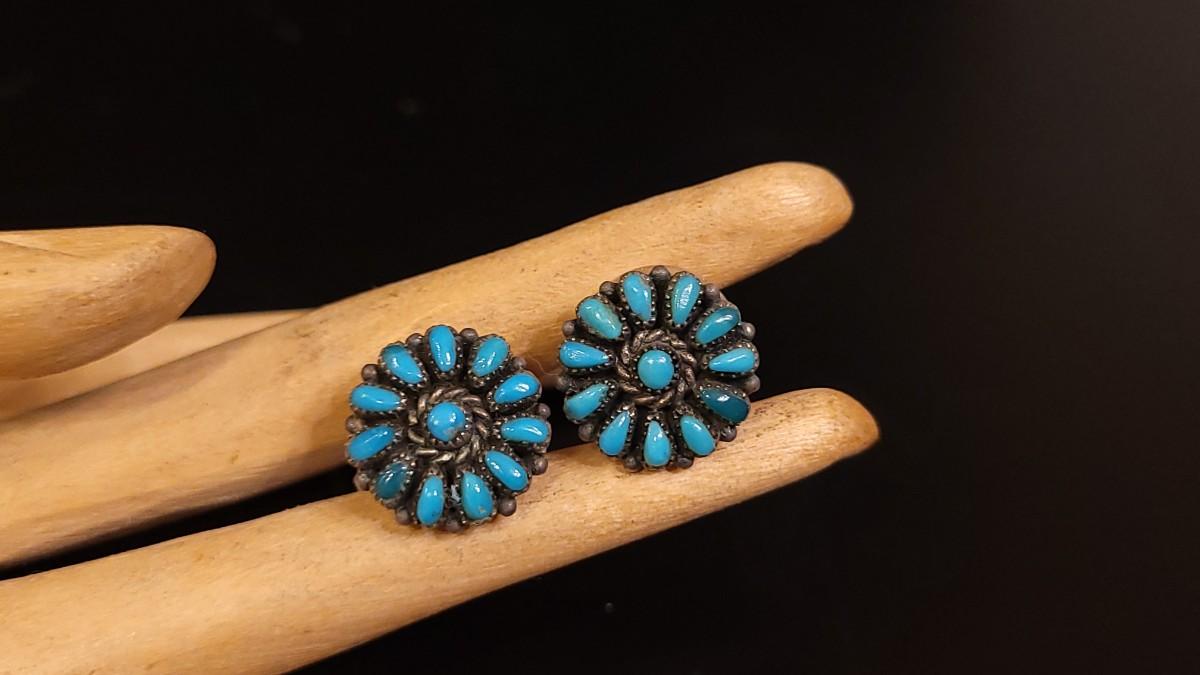 Lot 81: Vintage Native American Turquoise Flower Earrings