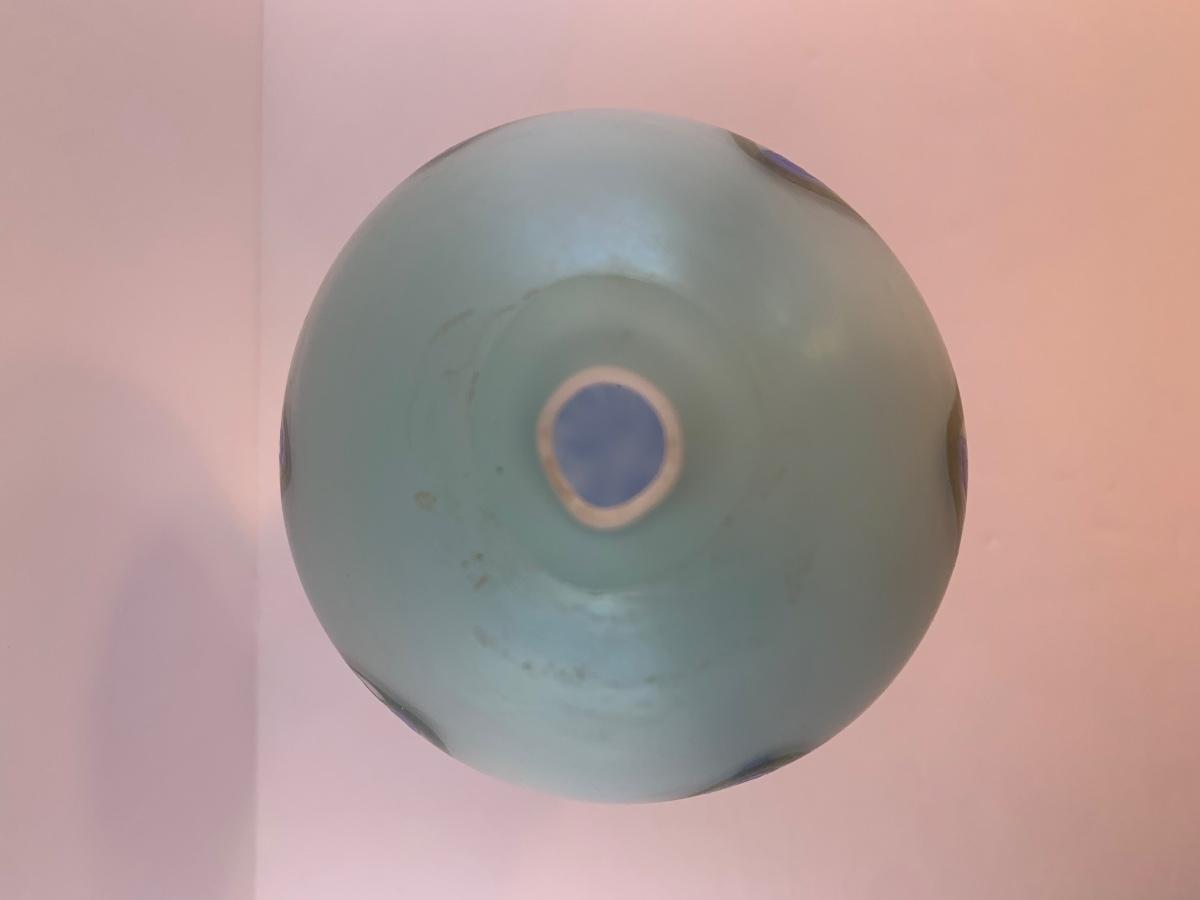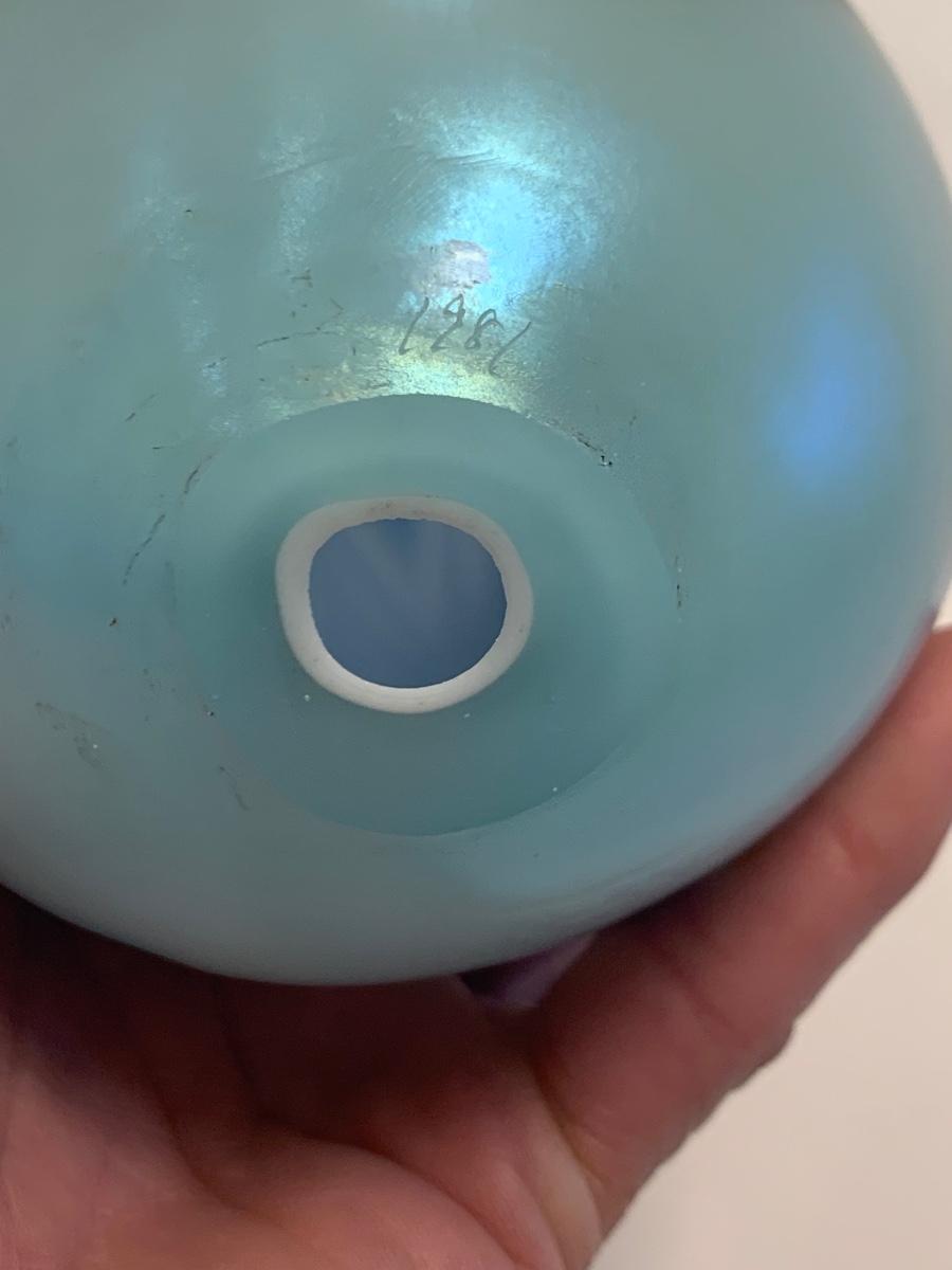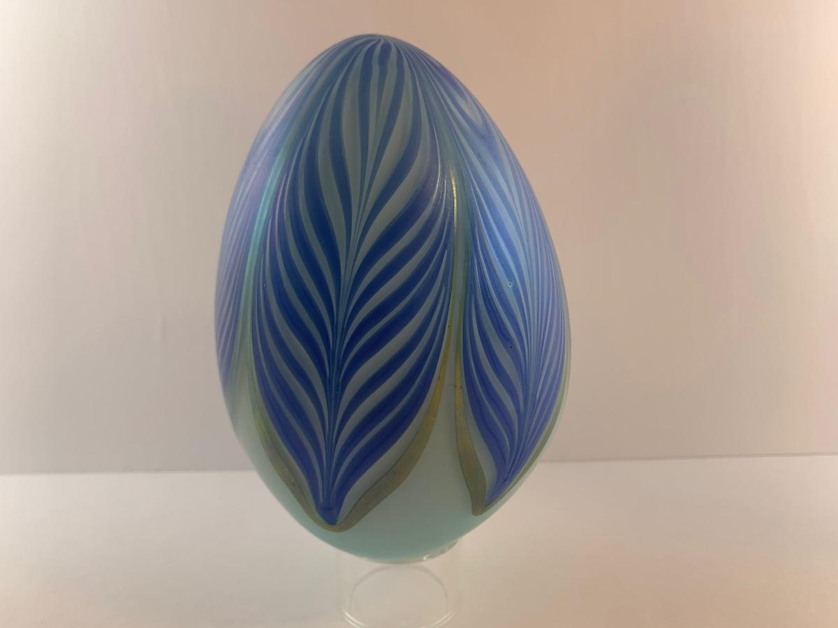 Vandermark signed feather pulled blue and gold on light blue base. Signed on bottom "Vandermark 1981" 3 1/2" x 5"