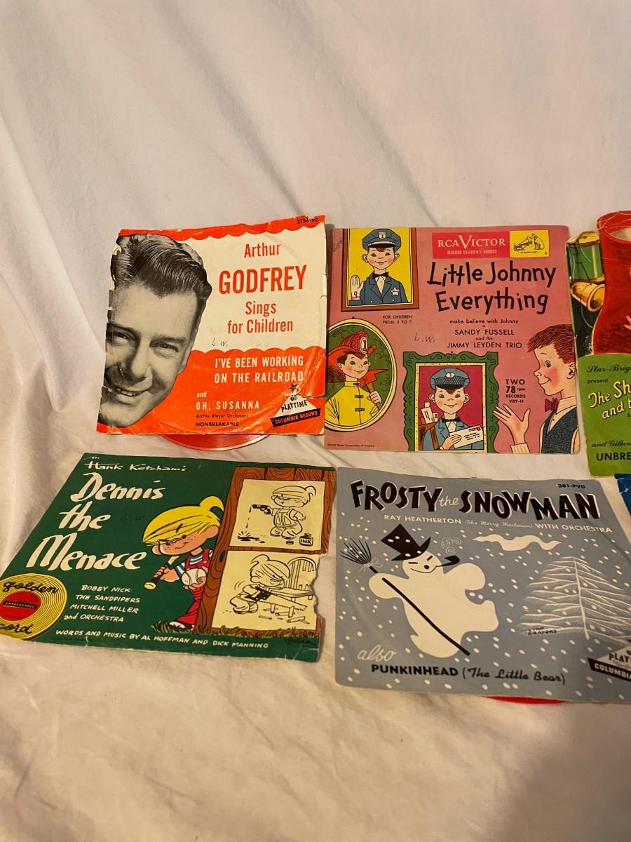 DENNIS THE MENACE, FROSTY THE SNOWMAN, LITTLE JOHNNY EVERYTHING , DADDY WOULDNT BUY ME A BOW-WOW AND MORE ALL VINTAGE COLLECTABLE CHILDRENS RECORDS